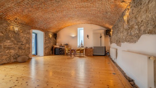 Die Restaurationsräume können auch in den zweiten Flügel des Gebäudes erweitert werden – ein 70 m² großer Raum mit einem gewölbten Ziegelsteindecke.