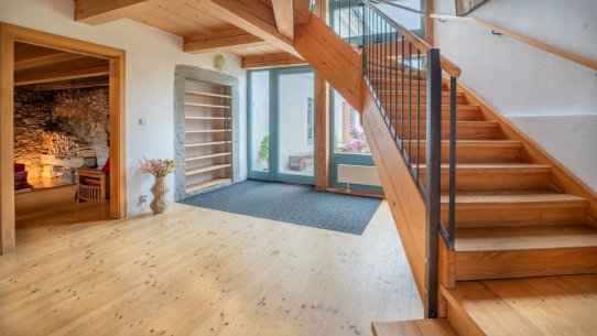 Im Hauptgebäude gibt es ein Maisonette-Studio mit einer 2+kk-Aufteilung, einer eigenen ausgestatteten Küchenzeile und einem Badezimmer mit WC. Dies dient perfekt als Unterkunft für den Eigentümer oder Verwalter des Objekts. Hinter der Küche befinden sich zwei Zimmer, in denen das Personal untergebracht werden kann.