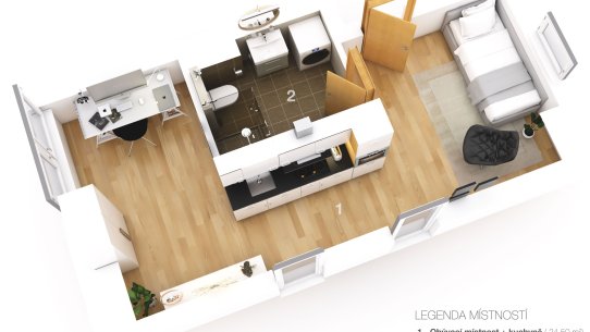 Apartmán má dispozici 1+kk a výměru 33 m². Nachází se v podkroví moderního resortu Malé Lipno v oblíbené lokalitě Černá v Pošumaví. Všechno je tu navržené tak, aby se vám tu dobře bydlelo, odpočívalo i trávili víkendy s rodinou nebo přáteli.