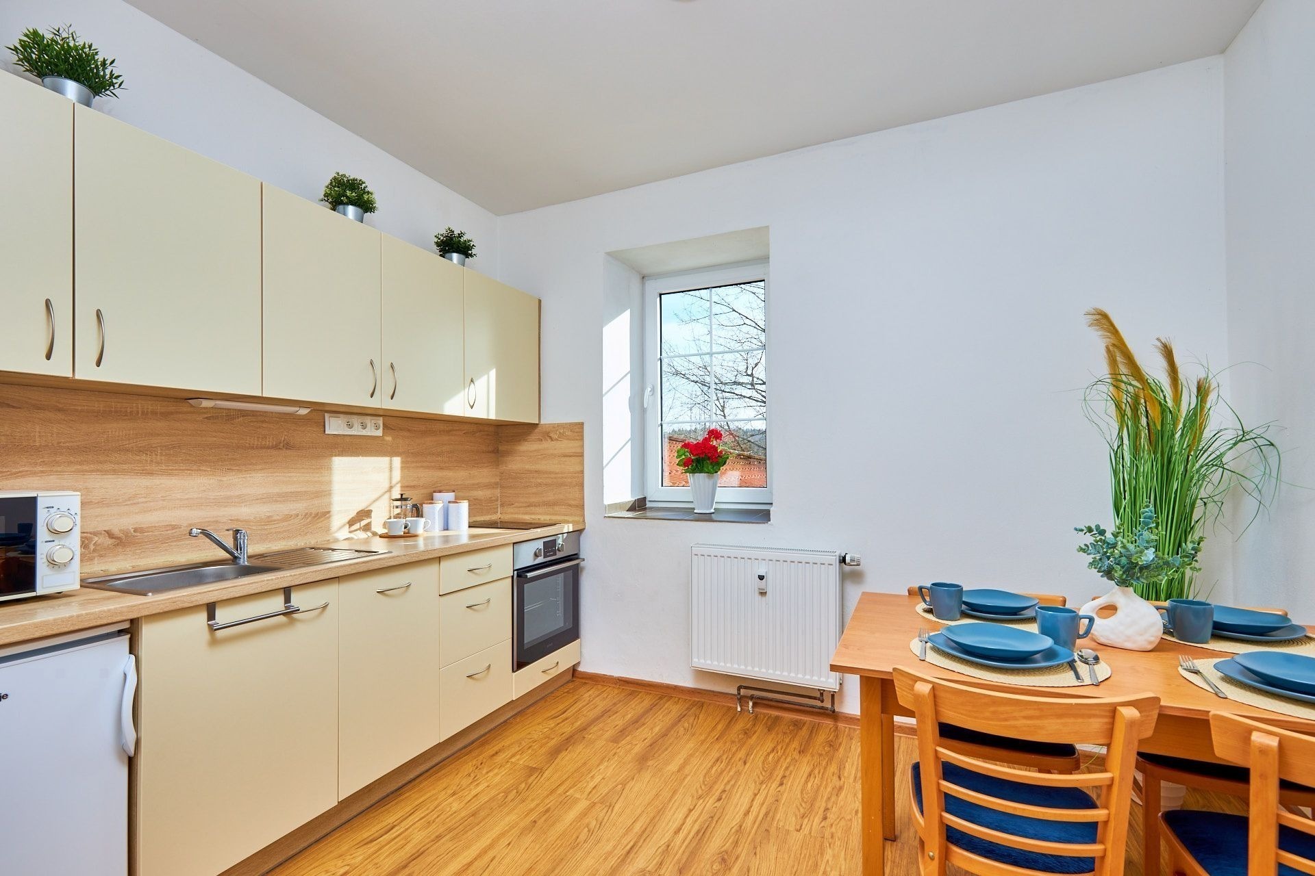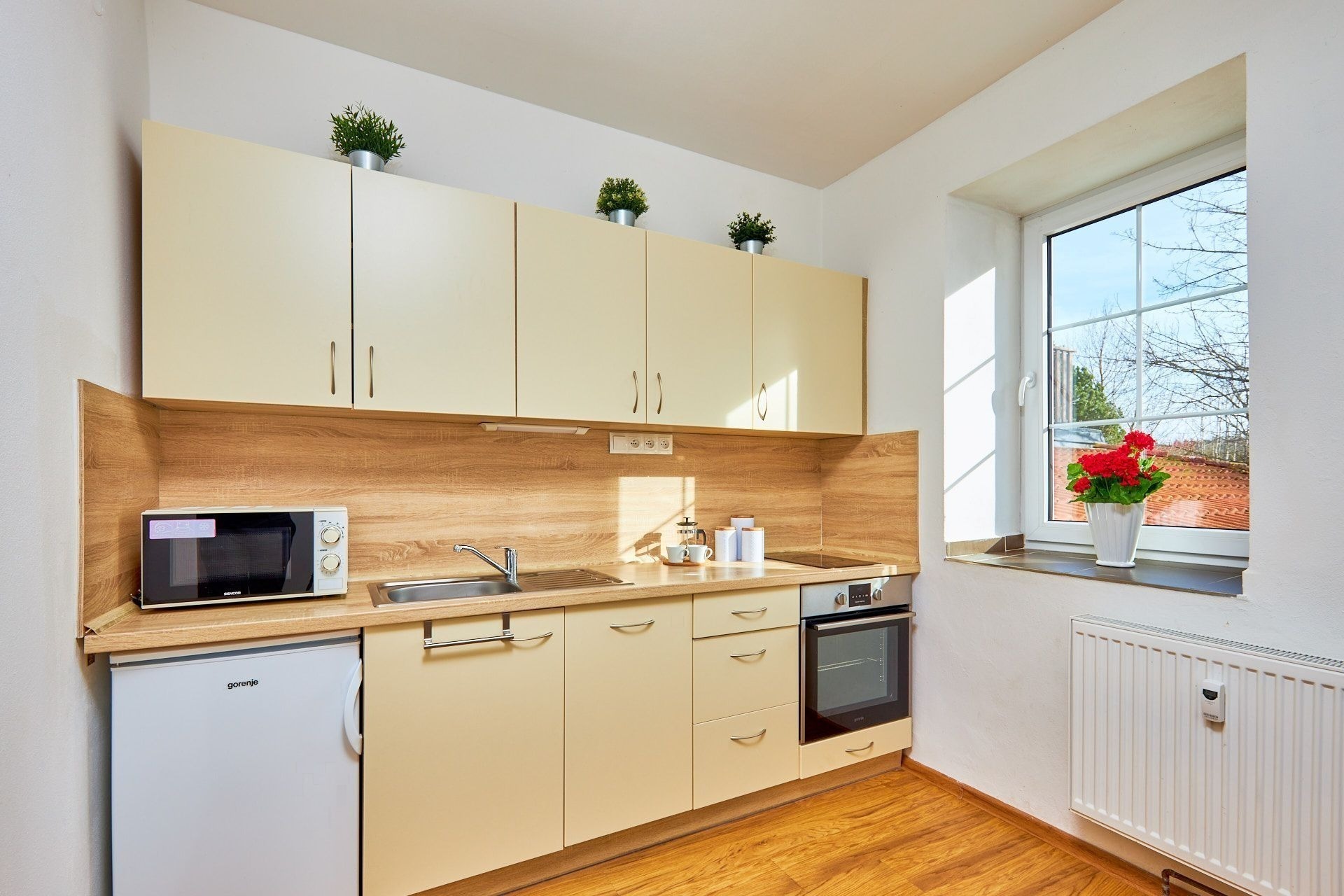 Byt je kompletně vybavený, takže stačí sbalit kufry a vyrazit za nekonečnou pohodou. V kuchyni je linka se všemi spotřebiči, kde si bez problémů nachystáte rychlou svačinu i pořádnou večeři. A když budete chtít, jídlo si vychutnáte na vzduchu a s výhledem – v patře je společná terasa s posezením a grilem.