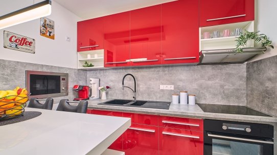 Proč se trápit s rekonstrukcí, když můžete bydlet v novém. Byt byl dokončený v roce 2018 a vše je tu v ťip ťop stavu. Čeká tu na vás moderní kuchyňská linka s prakticky zabudovanými spotřebiči, předokenní rolety pro perfektní teplotu v horkém létě a velká garáž, kam se vejde auto a ještě zbyde místo na uložení věcí.