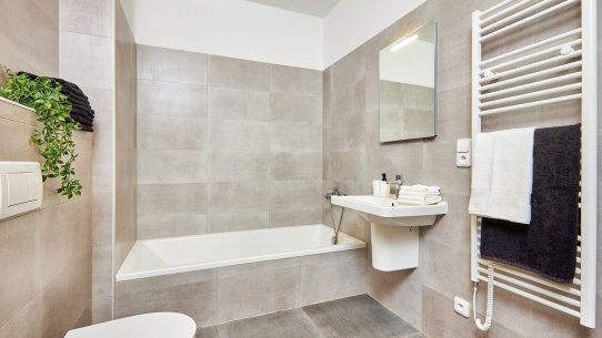 Byt je nízkoenergetický, má vlastní elektroměr a vodoměr. Ohřev vody zajišťuje bojler, v domě je centrální autonomně řízená rekuperace a topí se podlahovým topením napojeným na tepelné čerpadlo. Teplotu a ohřev vody můžete ovládat dálkově z mobilu. Vodovod a kanalizace jsou obecní.