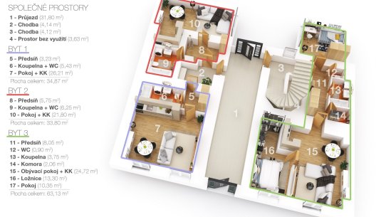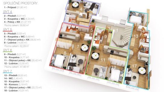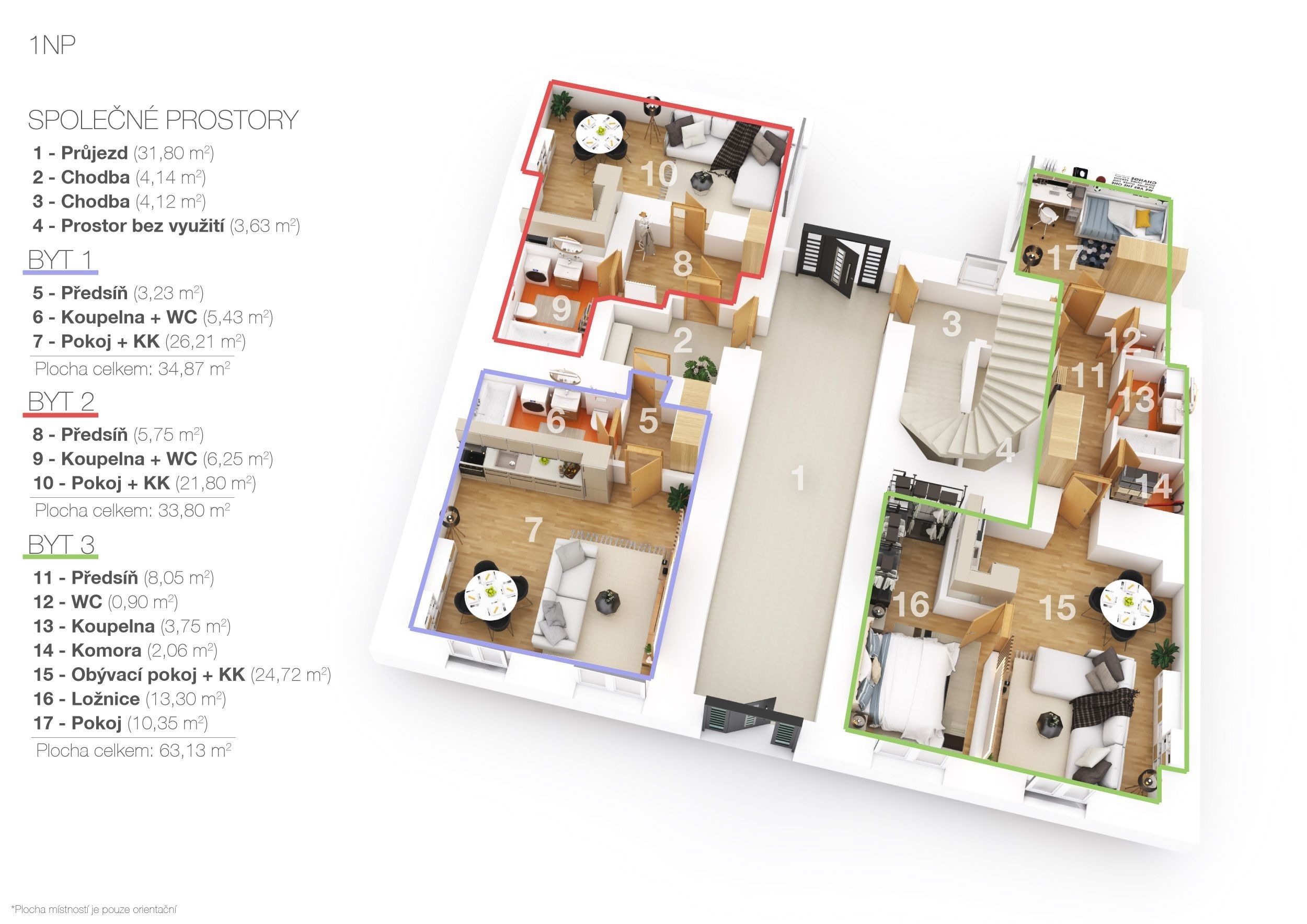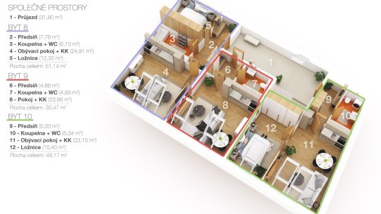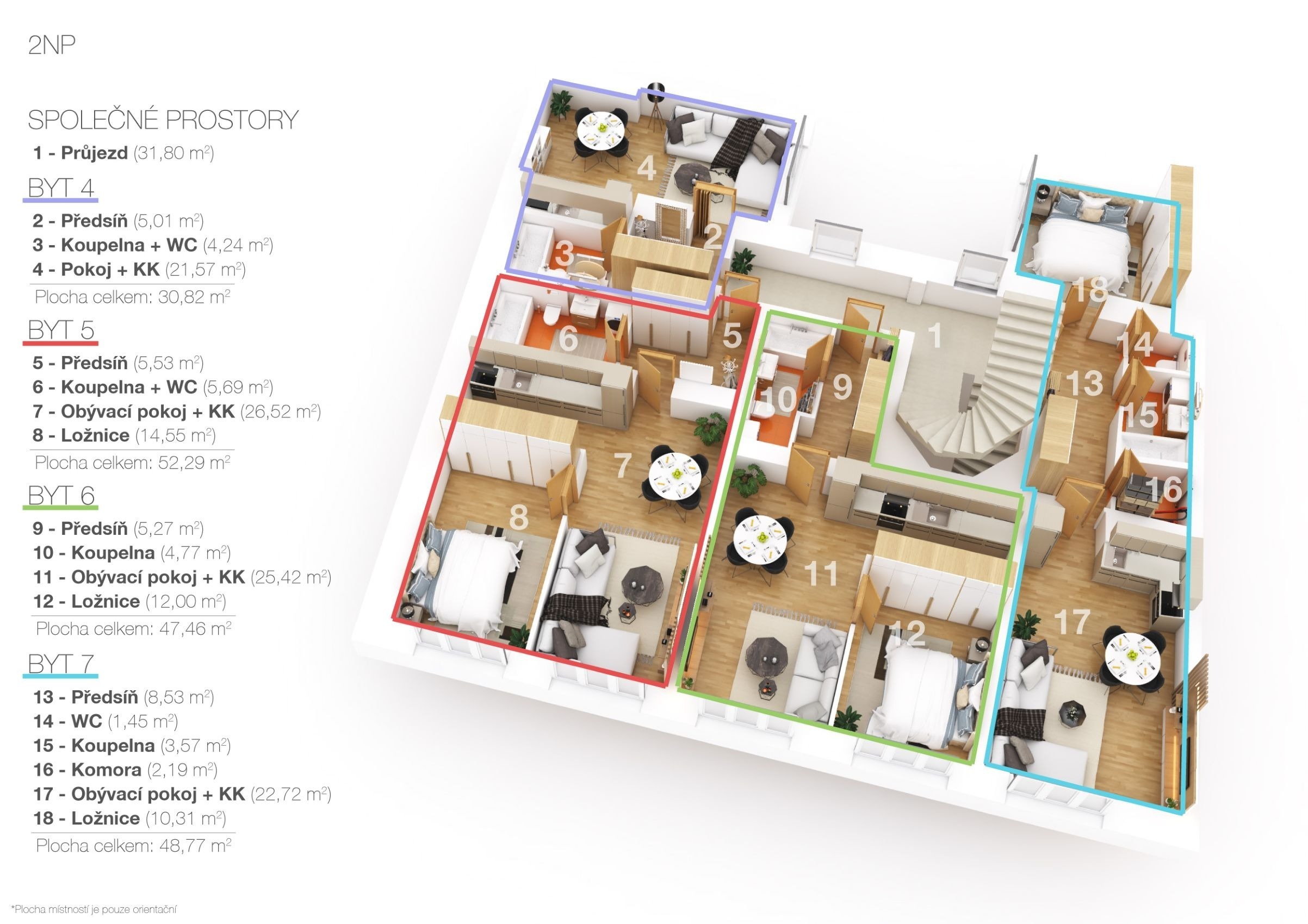 Bytový dům má celkovou užitnou plochu 650 m² a skládá se z deseti bytových jednotek – čtyř útulných bytů 1+kk, pěti bytů 2+kk a jednoho prostorného bytu 3+kk.