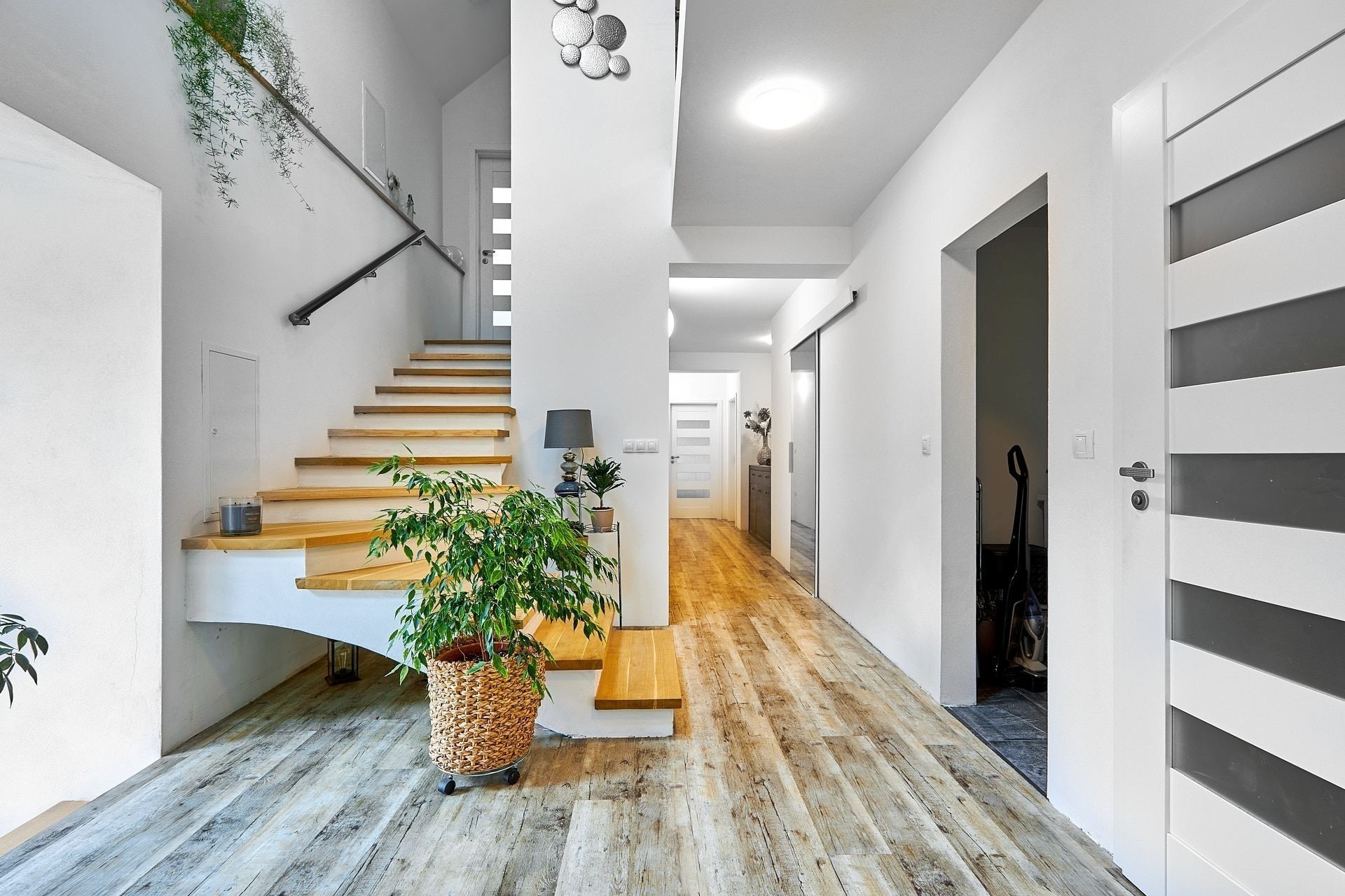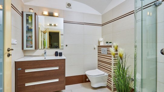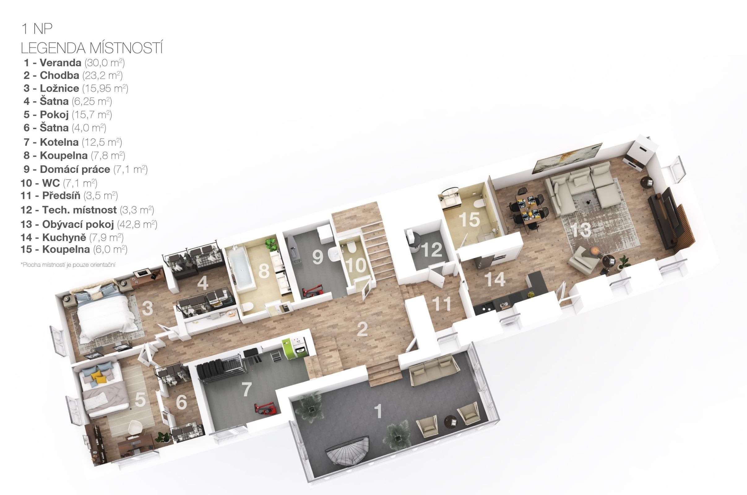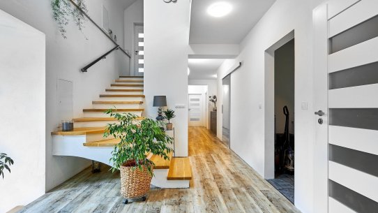 Jestli vám něco rozhodně nebude scházet, jsou to úložné prostory. Kromě dvou šaten je v přízemí ještě prádelna, úklidová komora a technická místnost vedle kuchyně, která poslouží jako spíž. Vánoční ozdoby i sportovní vybavení uklidíte do kotelny se vstupem ze zahrady.