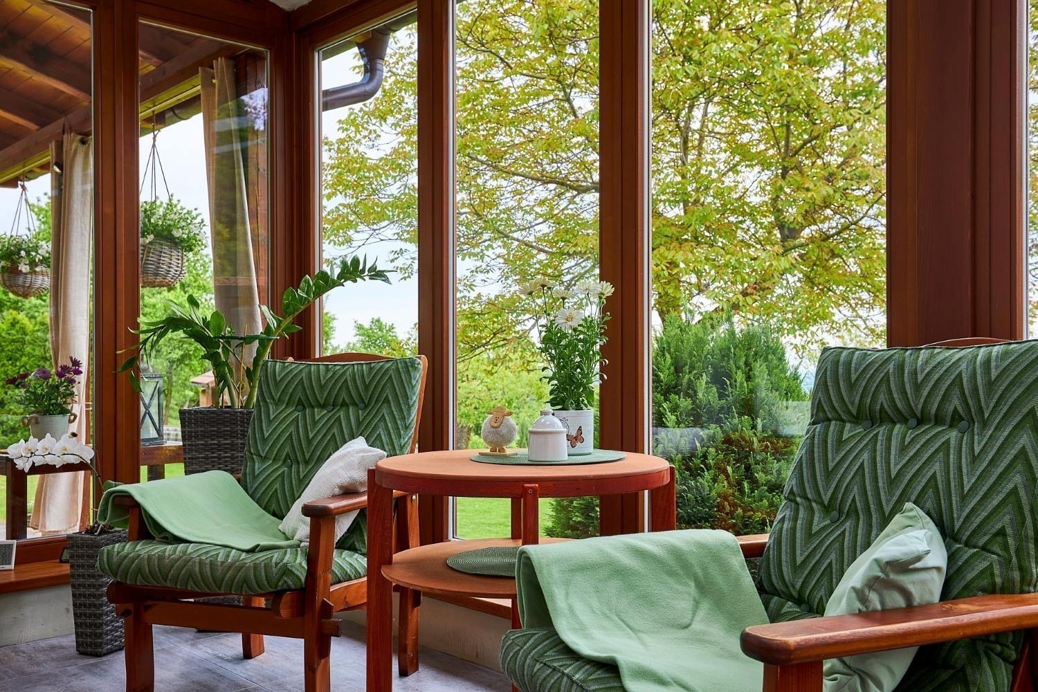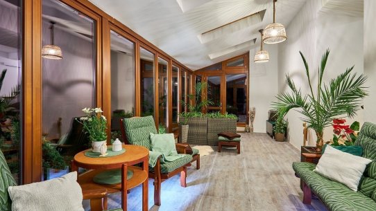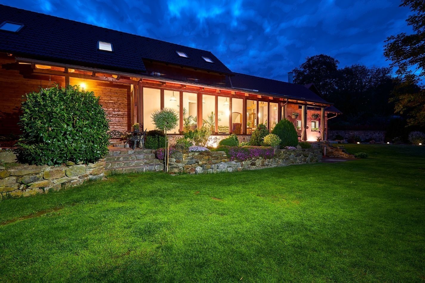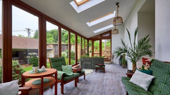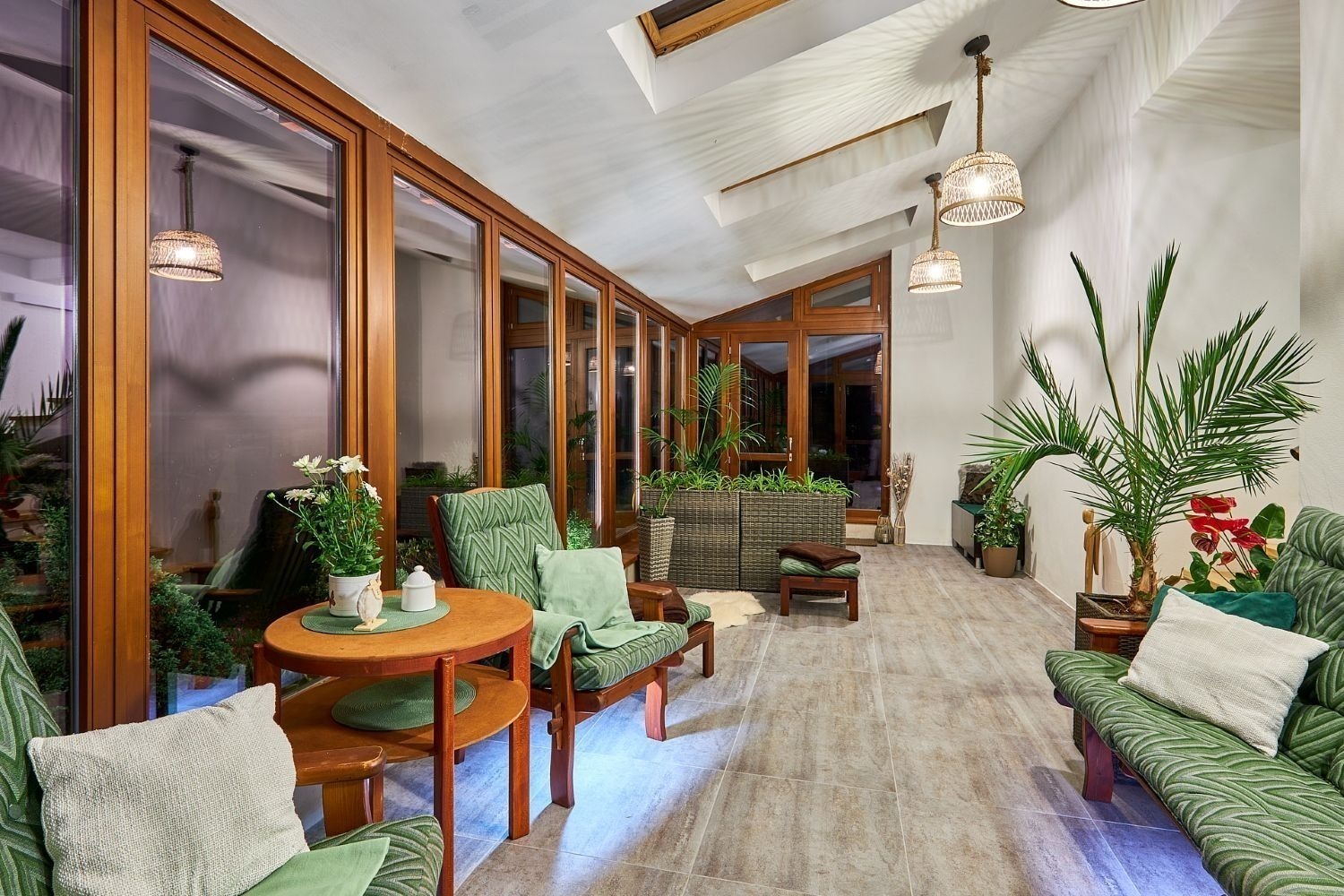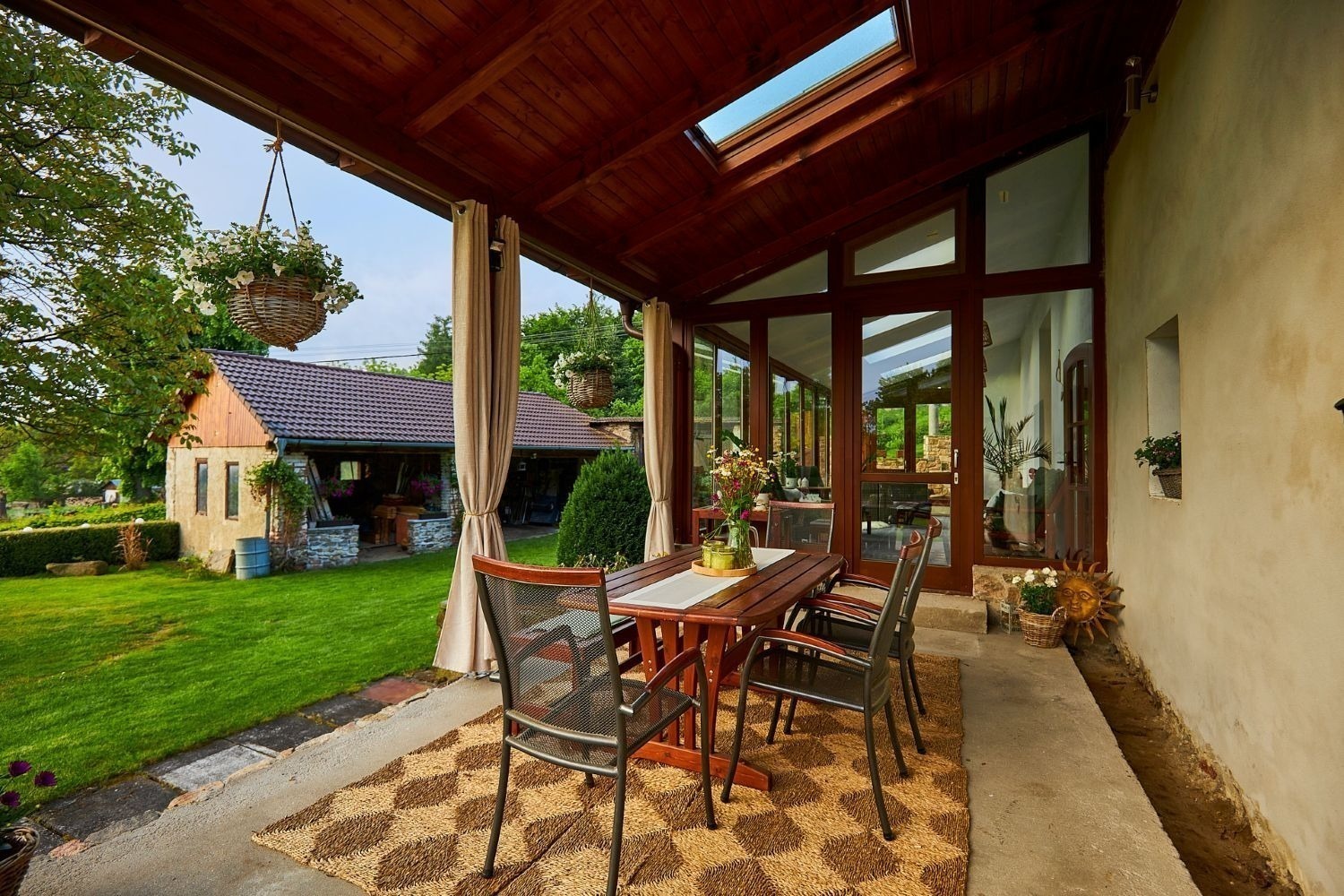 A kdyby náhodou nevyšlo počasí, můžete si ranní kávu nebo večerní skleničku vypít v zimní zahradě plné světla. Ta vás propojí s přírodou i když zůstanete uvnitř. A venku na vás čeká 1 600 m² pozemku s pečlivě udržovanou zahradou, kde si vždy najdete svůj zelený koutek pro odpočinek a rozjímání.