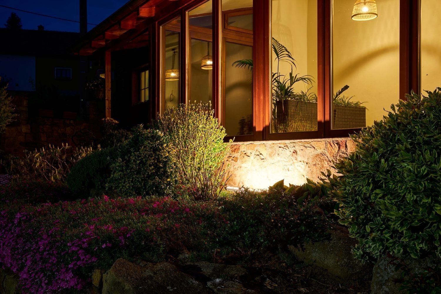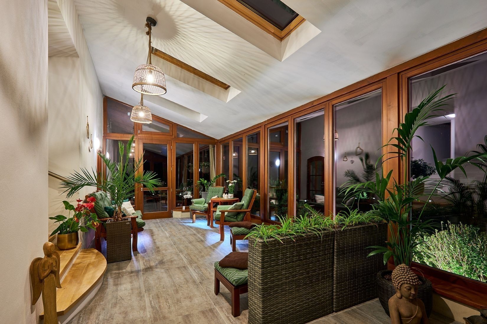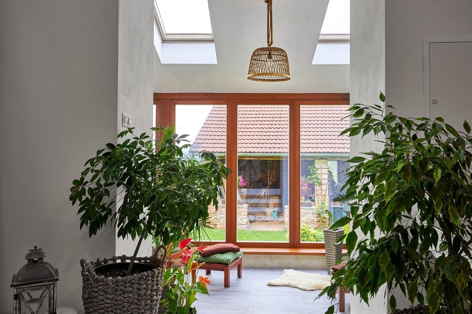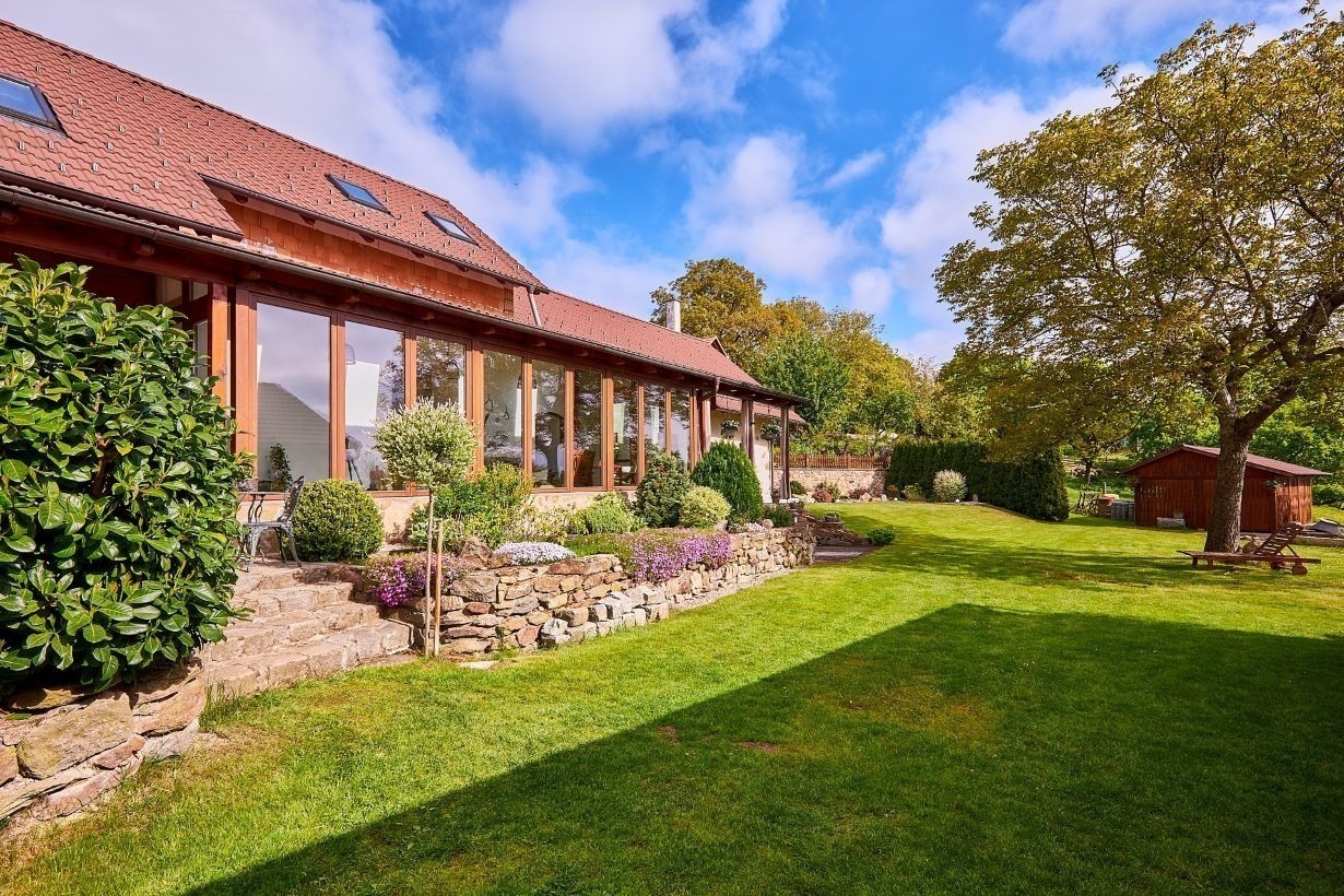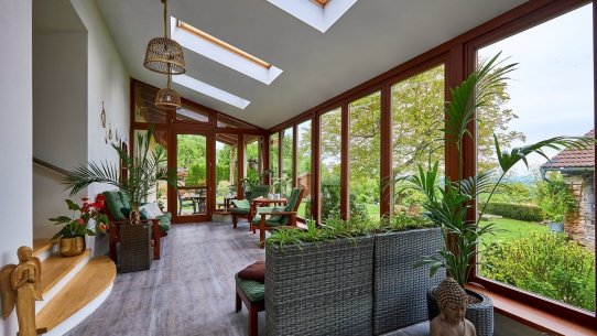 A kdyby náhodou nevyšlo počasí, můžete si ranní kávu nebo večerní skleničku vypít v zimní zahradě plné světla. Ta vás propojí s přírodou i když zůstanete uvnitř. A venku na vás čeká 1 600 m² pozemku s pečlivě udržovanou zahradou, kde si vždy najdete svůj zelený koutek pro odpočinek a rozjímání.