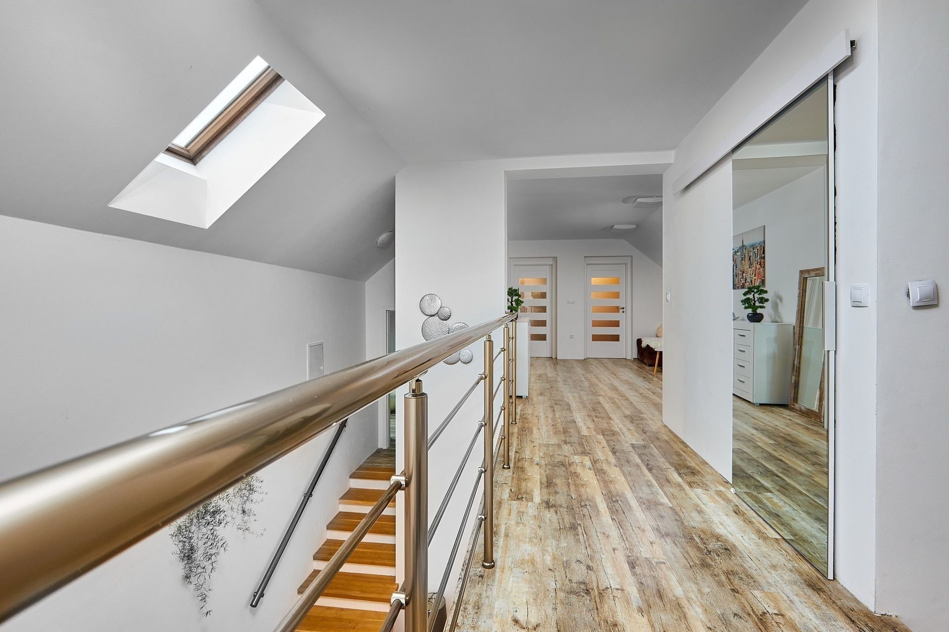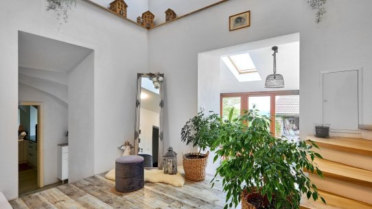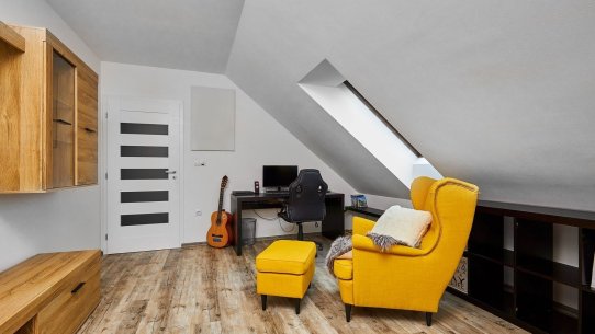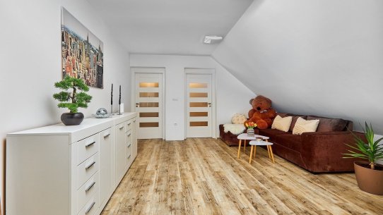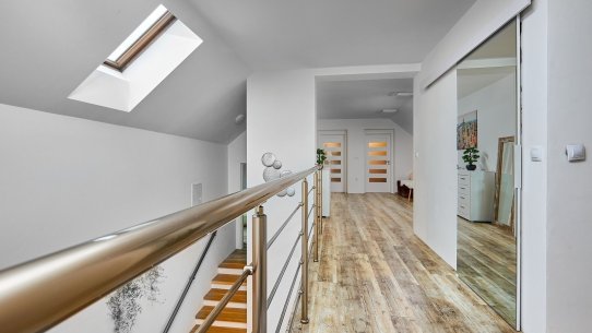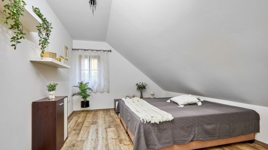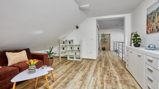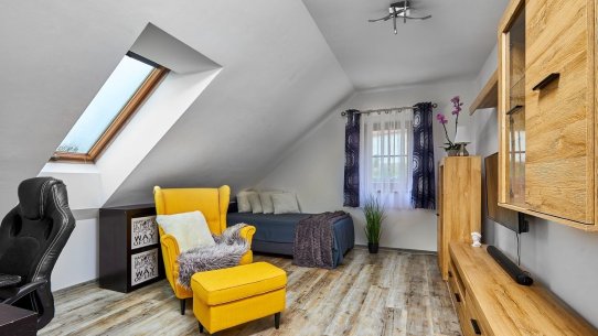 Navíc je tu celá půda. Tu můžete využít na uložení věcí nebo i pro bydlení. Pokud byste zvažovali vícegenerační bydlení, na chodbě v patře je dost místa i druhou na kuchyň.