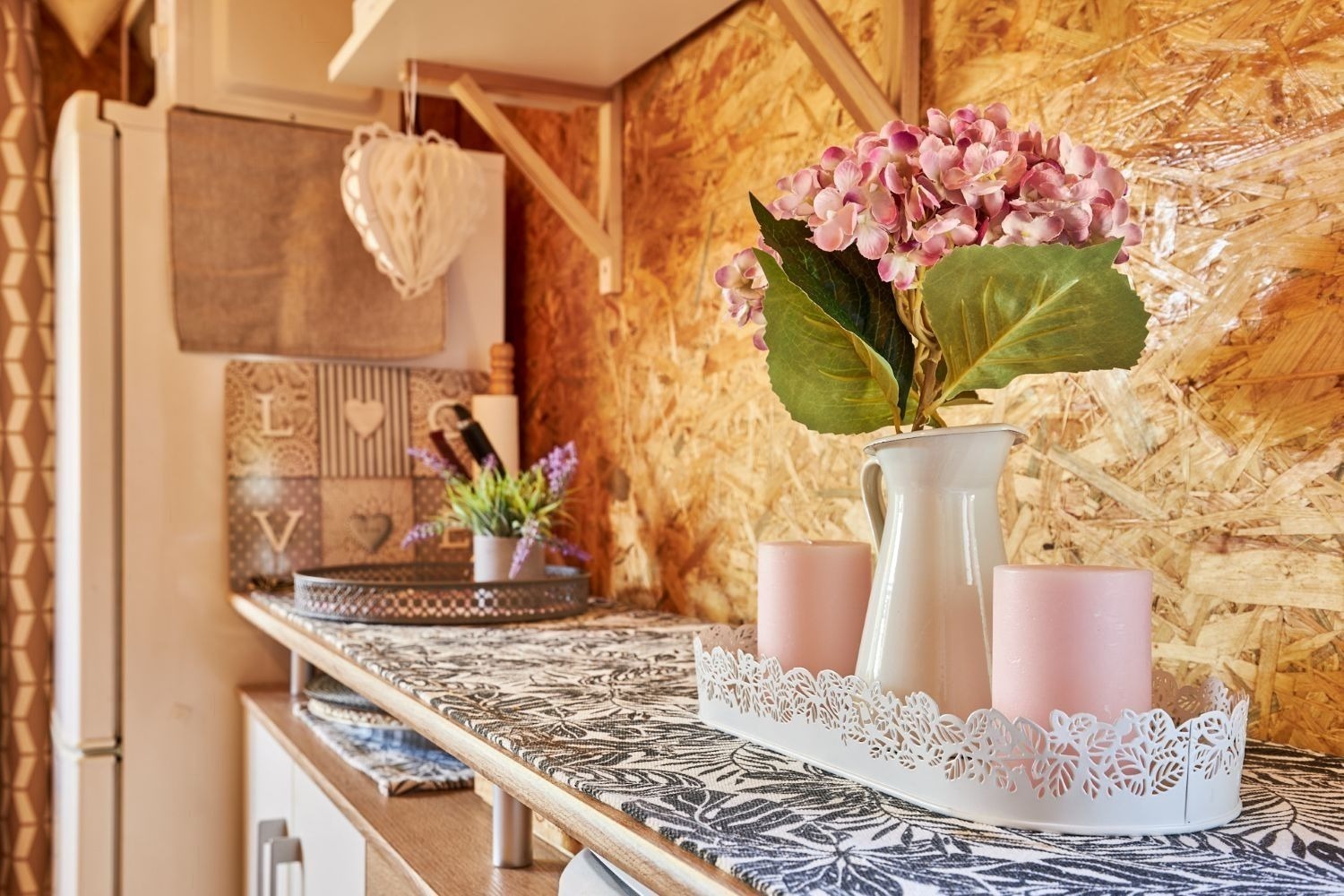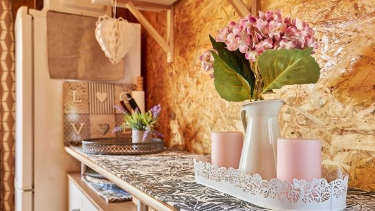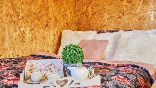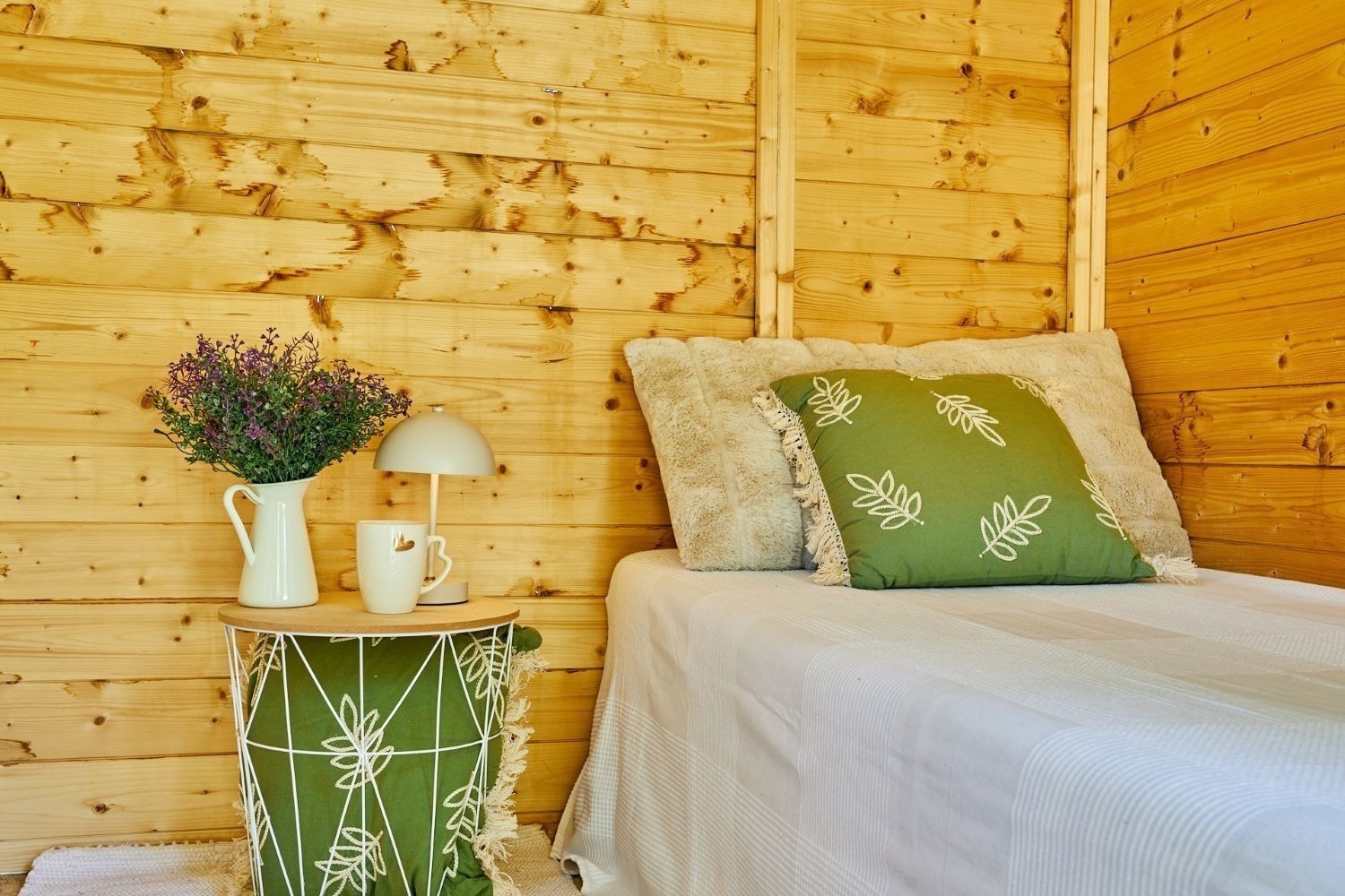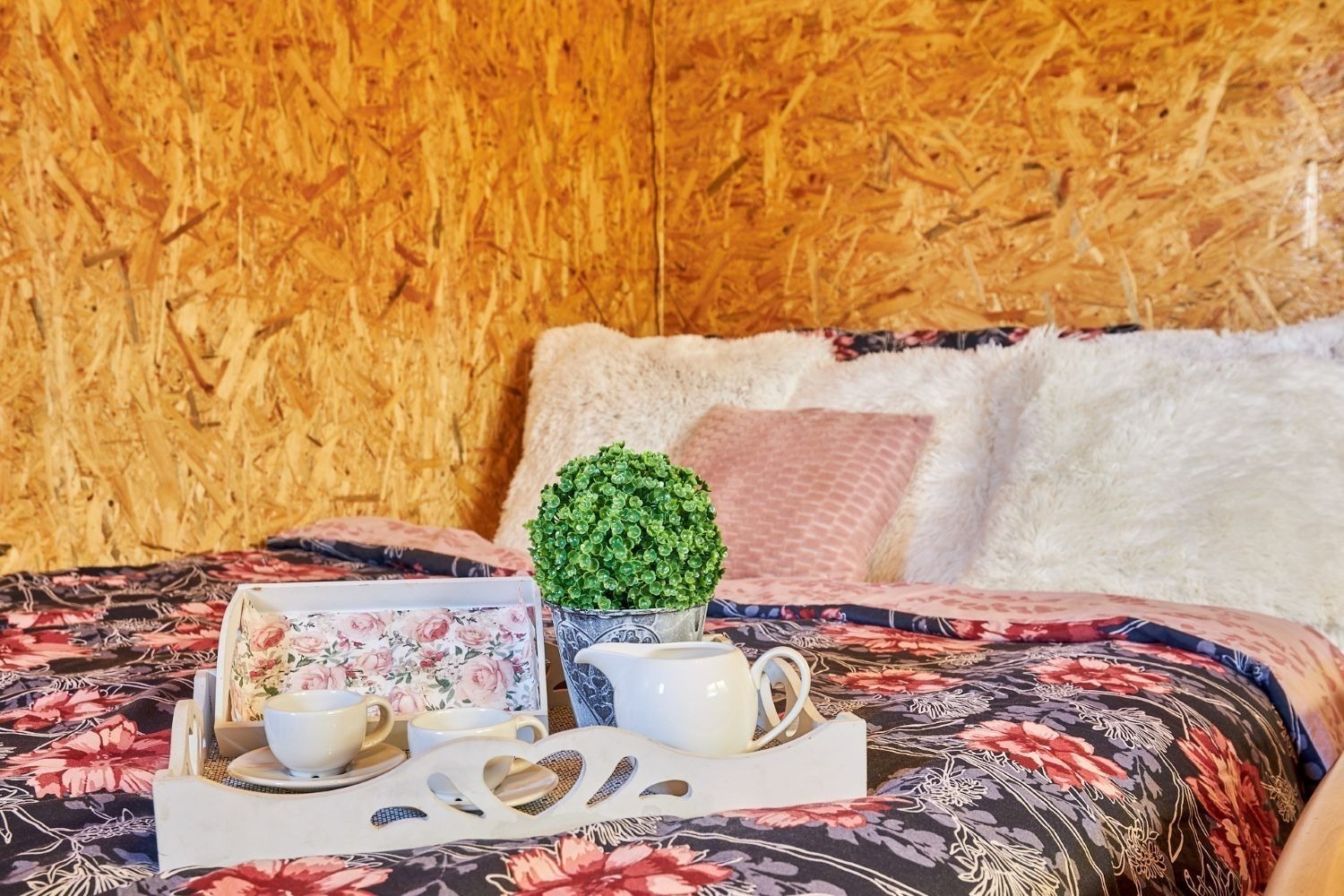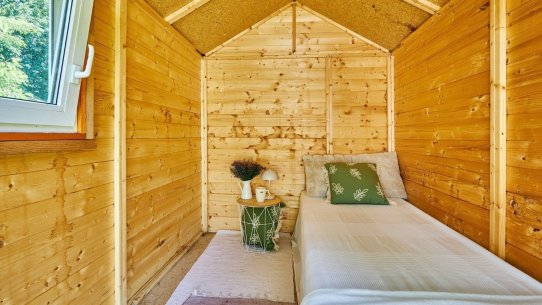 Srdcem celého místa je útulná dřevěná chatka. Uvnitř najdete praktickou kuchyňku a rozkládací gauč, na kterém si parádně odpočinete.