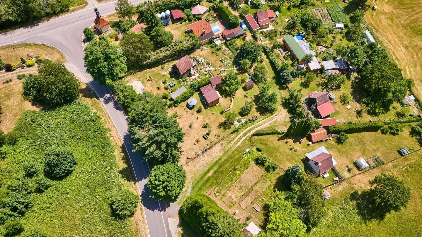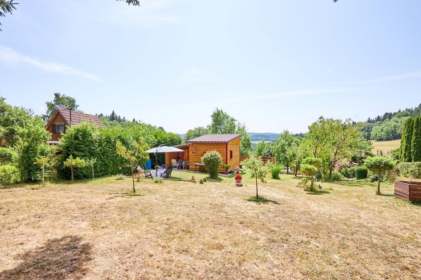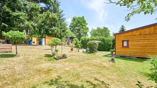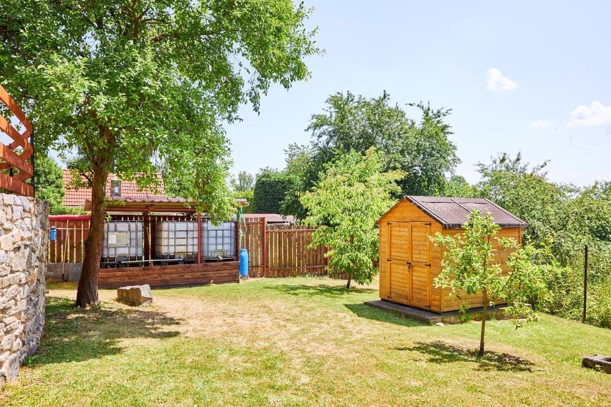 Zahrada na pozemku je krásně udržovaná. O bohatou úrodu se vám postarají vzrostlé ovocné stromy a keře, mezi kvetoucími záhonky vypnete hlavu jako nikde jinde. Zahradní náčiní a nářadí uskladníte do dřevěného domku.
