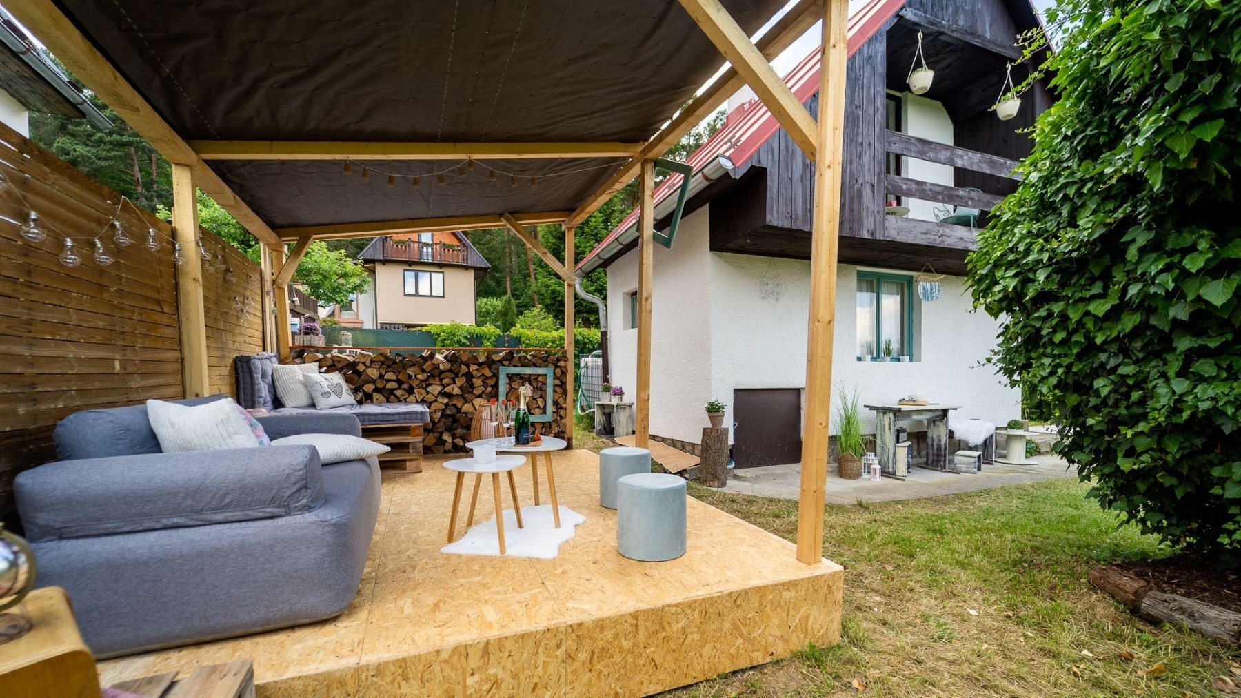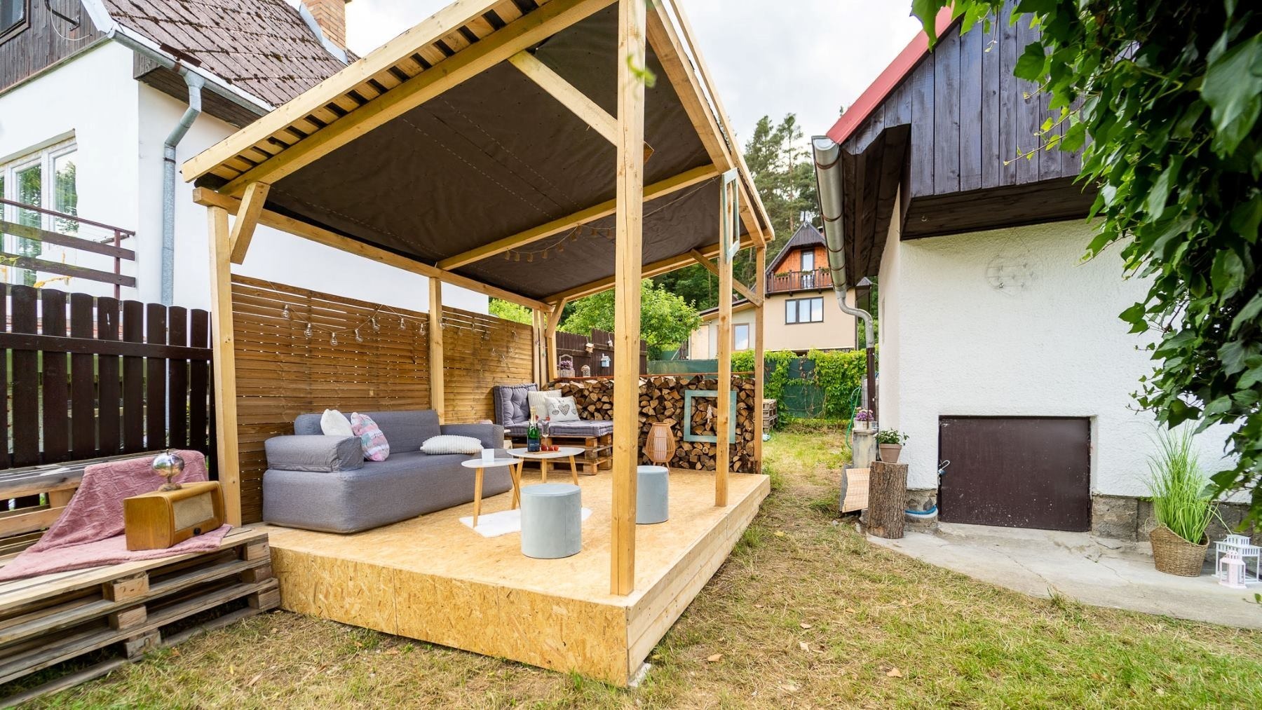 Jestli máte rádi venkovskou atmosféru, ale záleží vám taky na pohodlí, určitě vás potěší, že tahle chata prošla stylovou rekonstrukcí. Interiér je velmi světlý a vkusně zařízený a pobyt vám tu ještě víc zpříjemní tekoucí voda a splachovací záchod. Příjemné posezení si pak užijete na udržované zahradě s pergolou, která přímo vybízí ke grilovačce.