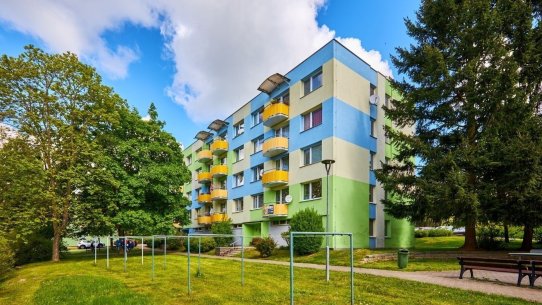 Panelový dům prošel kompletní revitalizací – má novou fasádu, je zateplený, okna jsou plastová a v domě je nový výtah. Společné prostory jsou udržované a celkové prostředí působí příjemně a klidně.