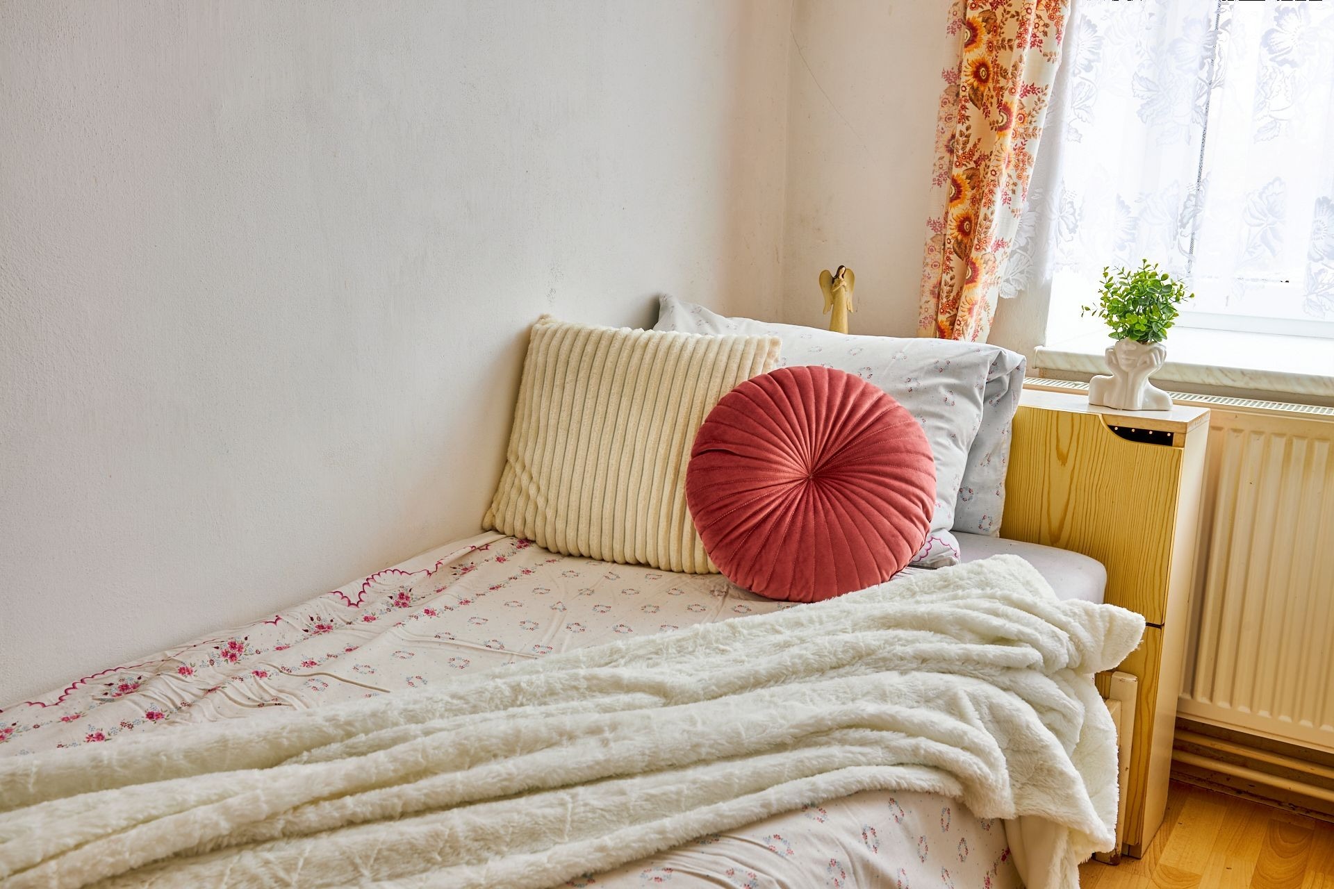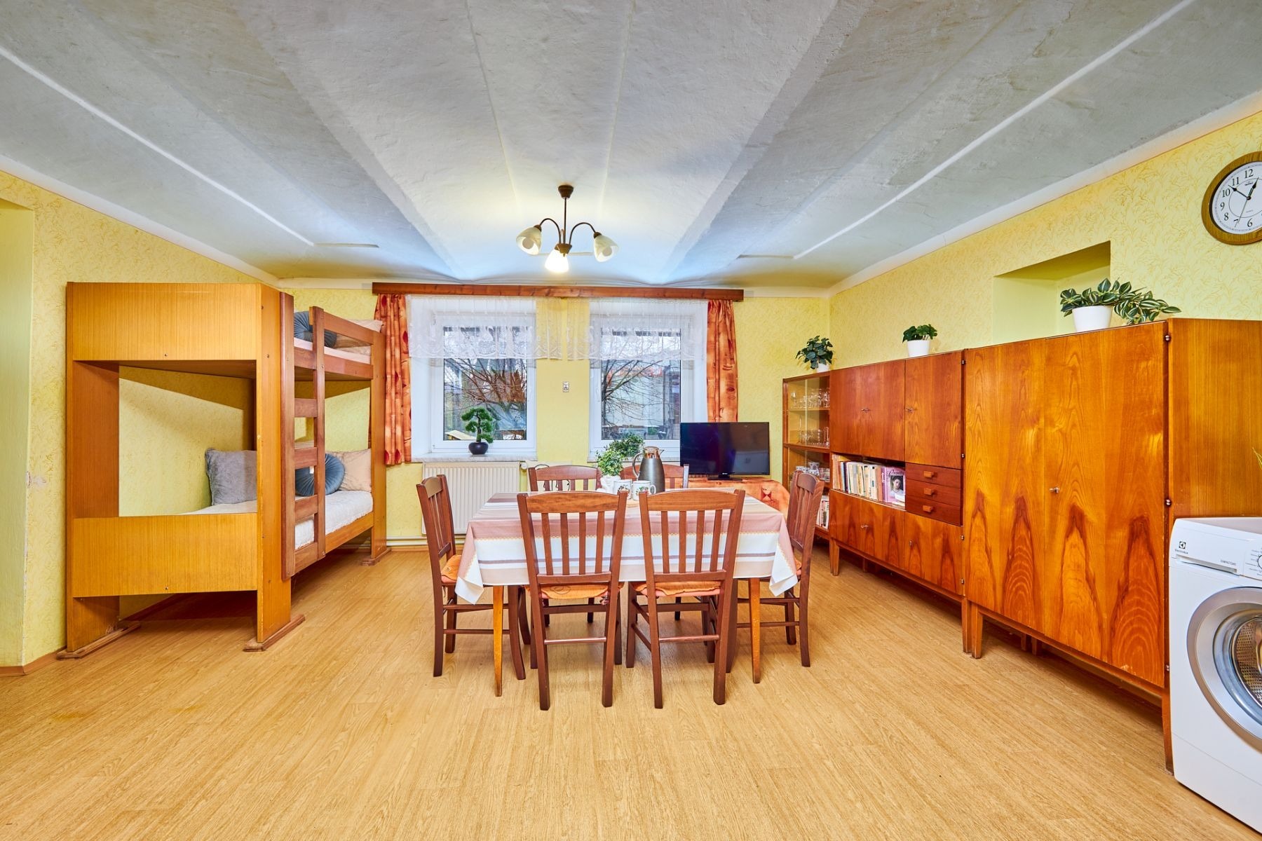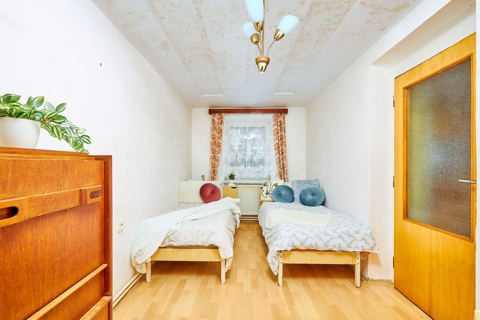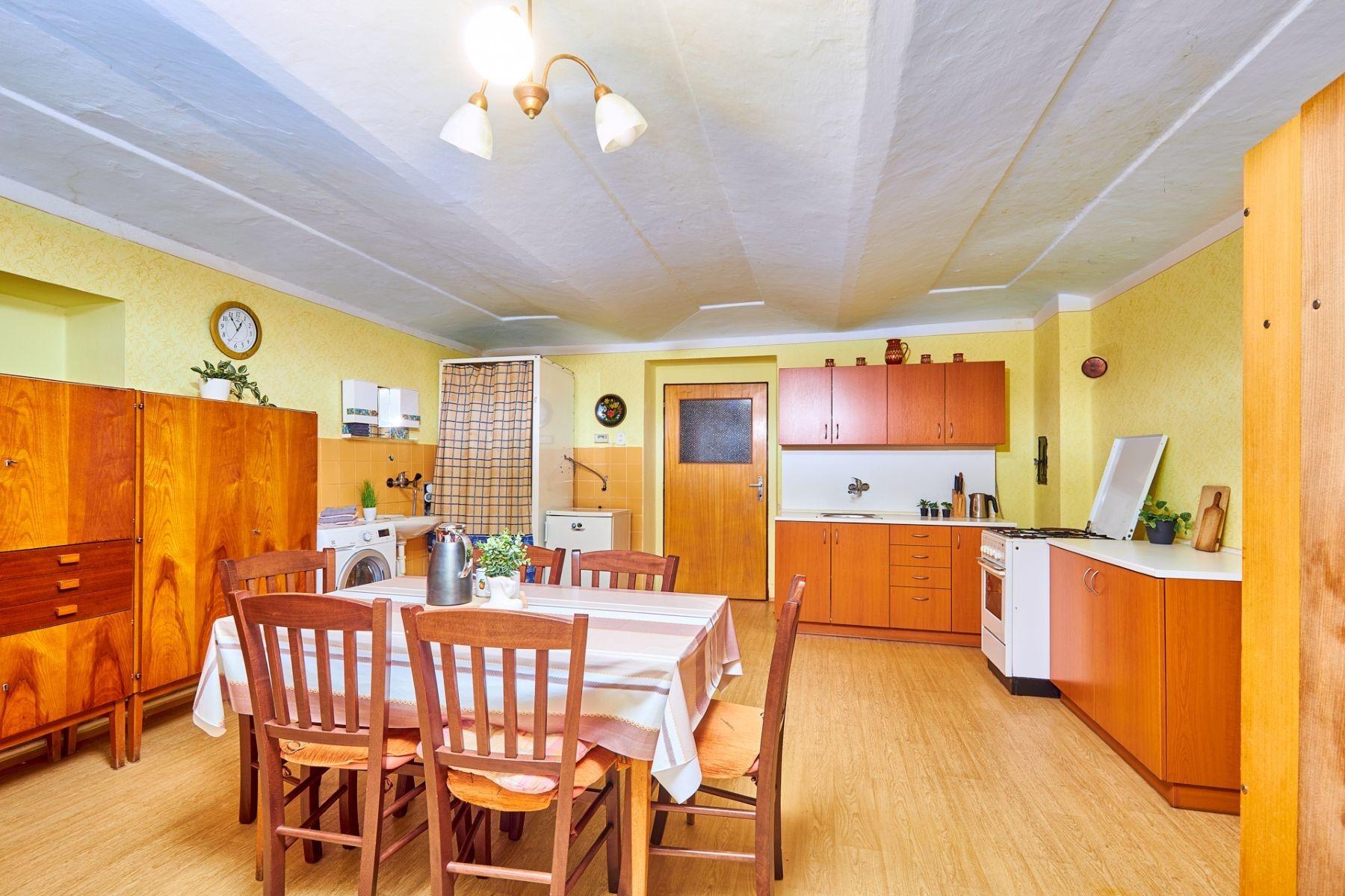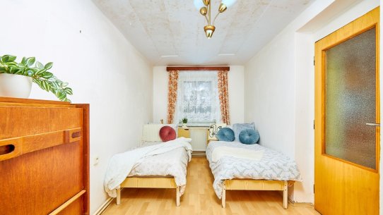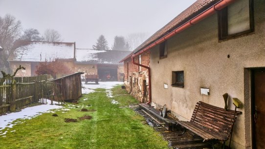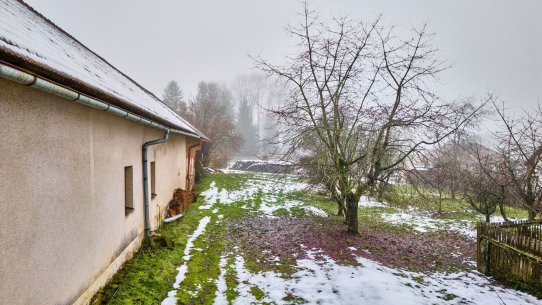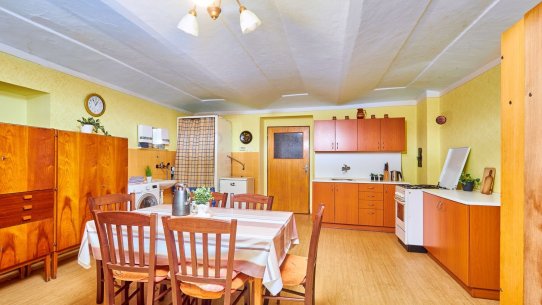 Obytná část domu je určená k rekonstrukci, ale stačí pár oprav a můžete se klidně nastěhovat a další zásahy provádět postupně, jak vám to rozpočet a čas dovolí.