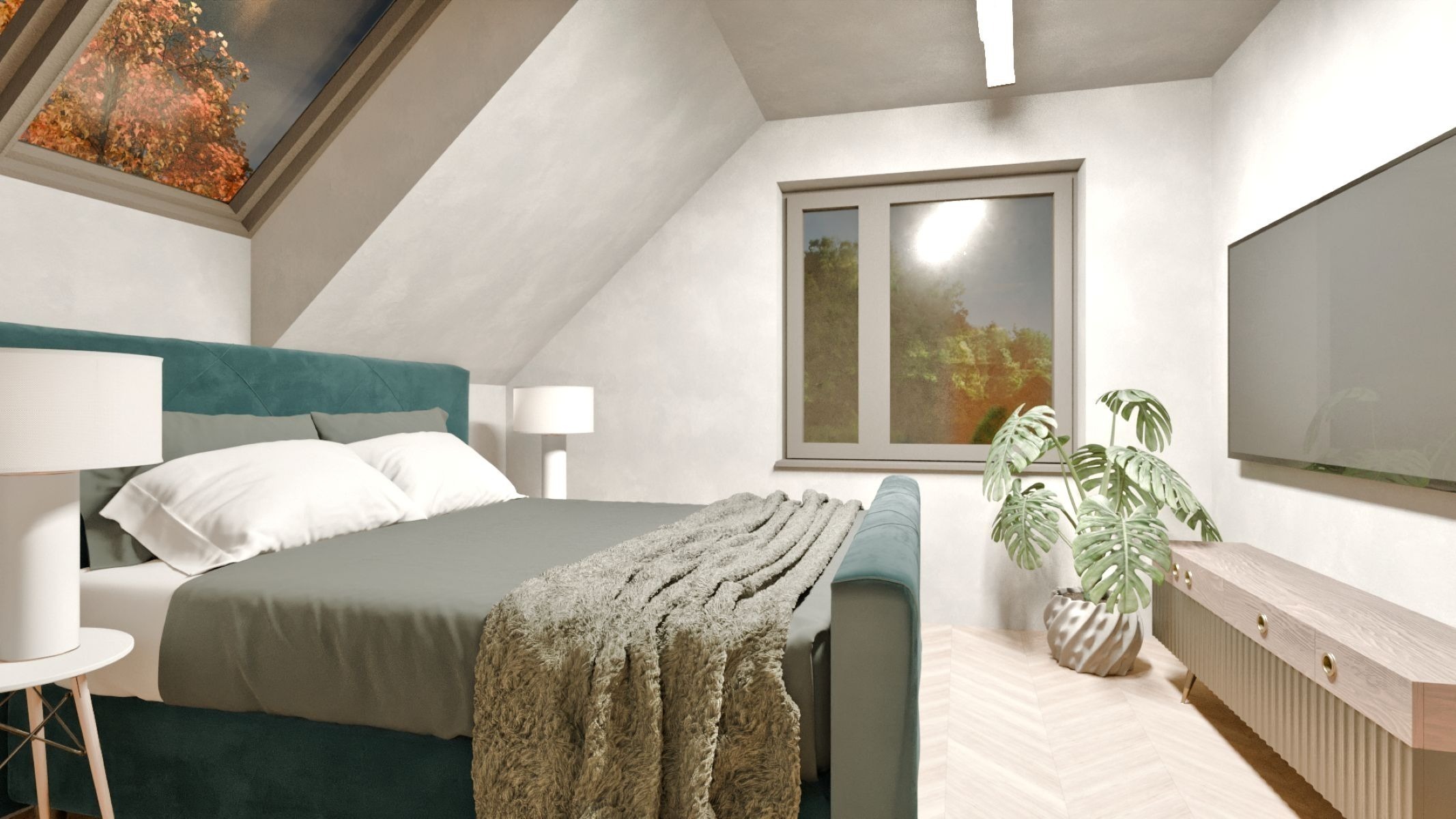 V přízemí je ložnice s další terasou, ze které můžete mít praktickou pracovnu nebo ložnici pro hosty.