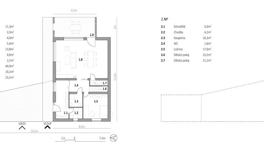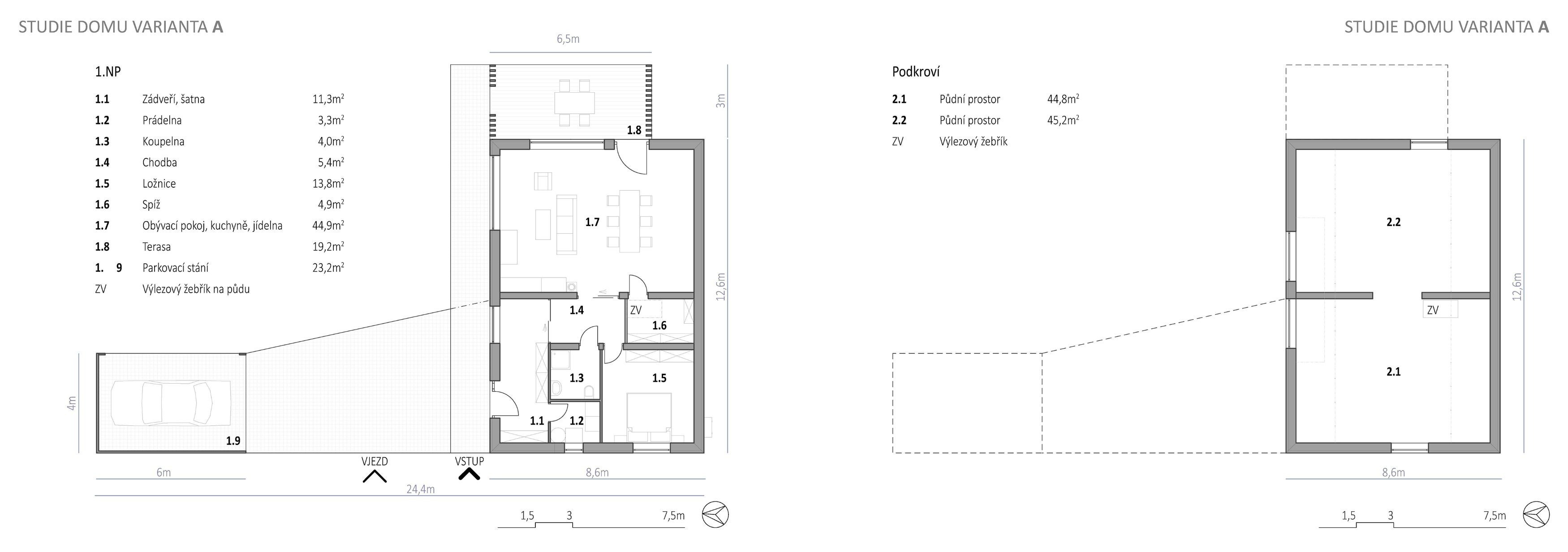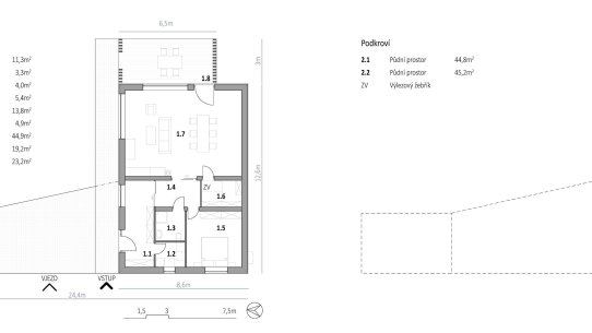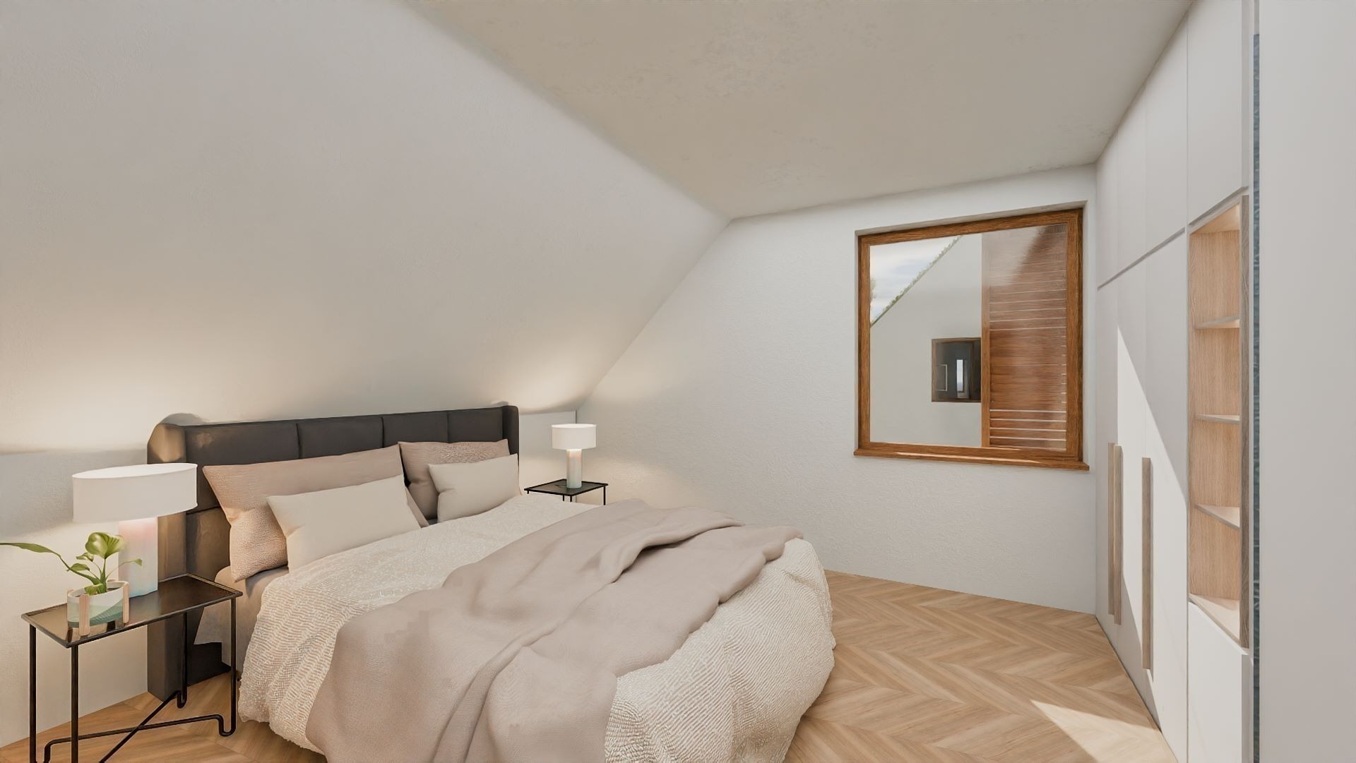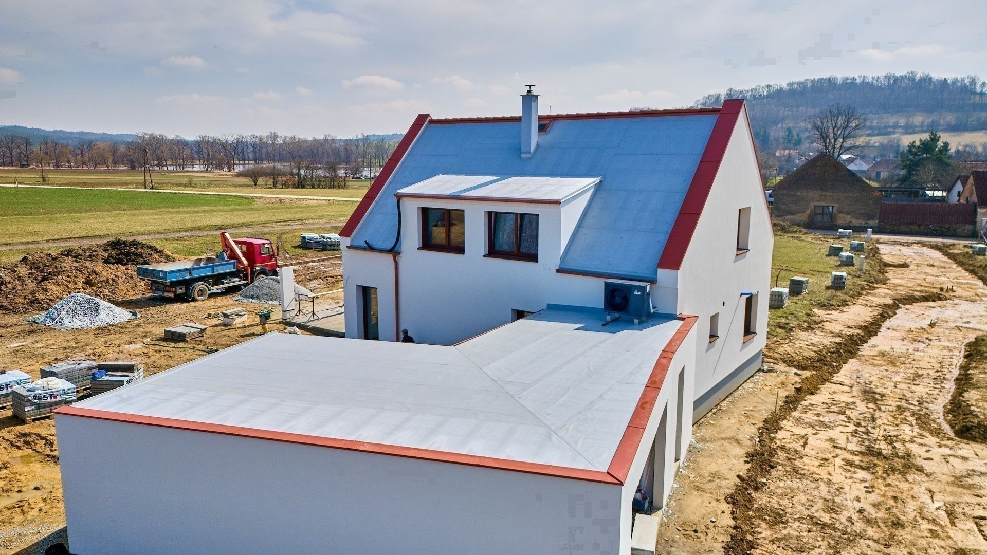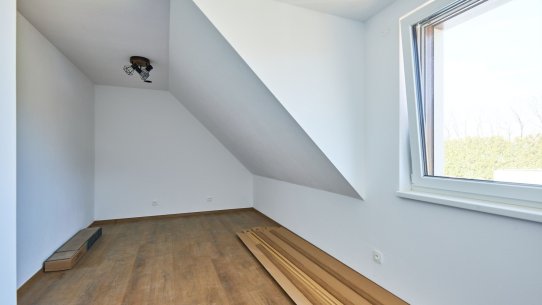 Pokud ale chcete být ještě chvíli jen ve dvou, dům jde dokončit jako 2+kk s půdním prostorem připraveným na dostavbu dalších ložnic.