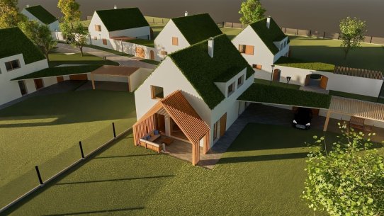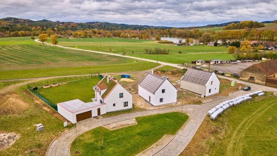 Koncept domů je zvolen tak, aby perfektně zapadl do lokality. Spojuje v sobě to nejlepší z jihočeské lidové architektury a nejmodernějších úsporných technologií – od rekuperace po zelenou střechu. Dokonce se podle zvolených technologií na dům dají čerpat dotace.