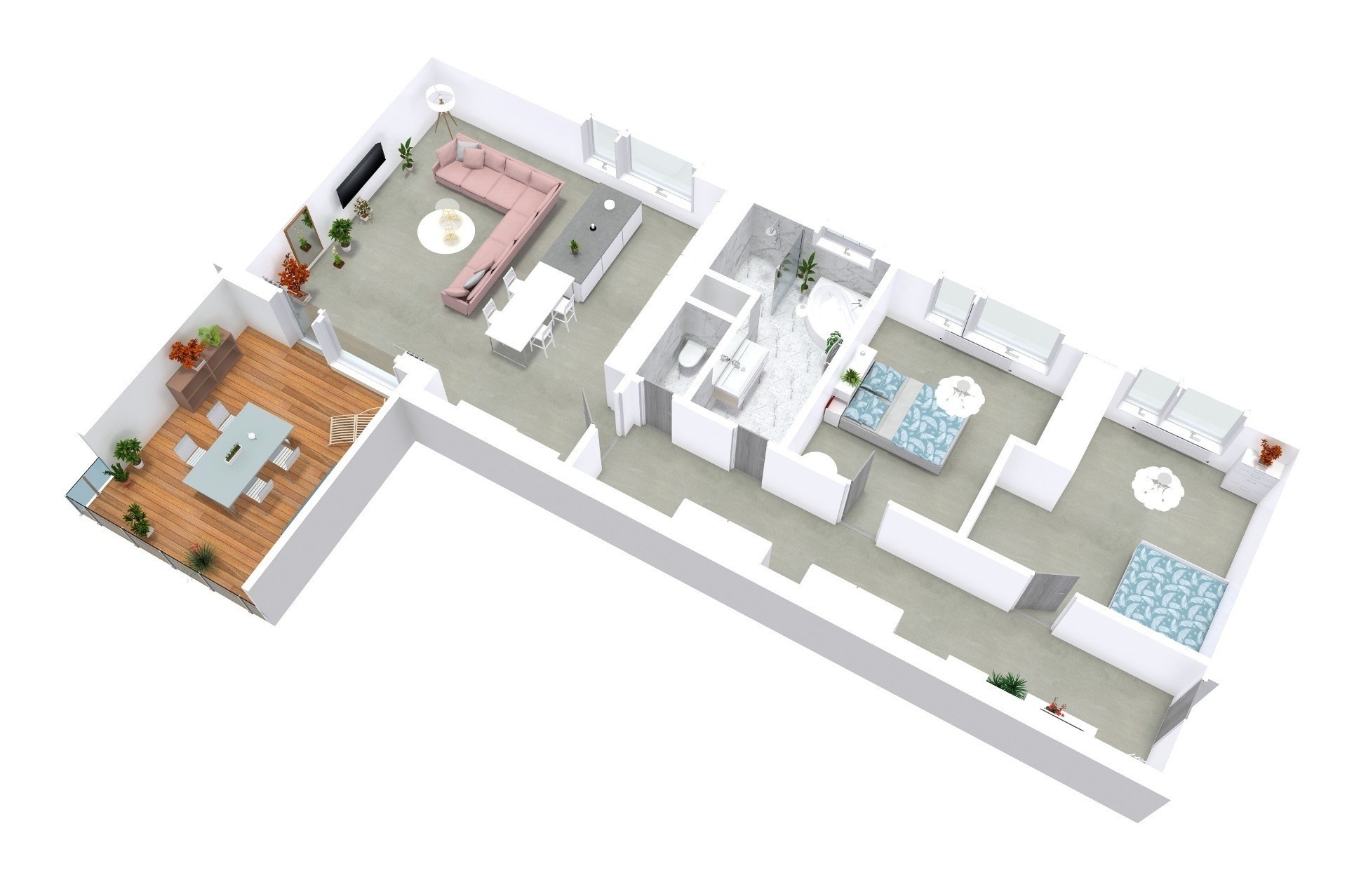 Mám pro vás exkluzivní byt 3kk o velikosti 101 m2, s terasou 16,5 m2, včetně krytého parkovacího stání pro jeden automobil. Tento byt je zařízený ve vysokém standardu – např. jenom koupelna má zlacené baterie, vířivou vanu, ale i sprchový kout. V bytě vás dále rozhodně nadchne, stejně jako mě, velkorysý obývací pokoj s kuchyňským koutem.