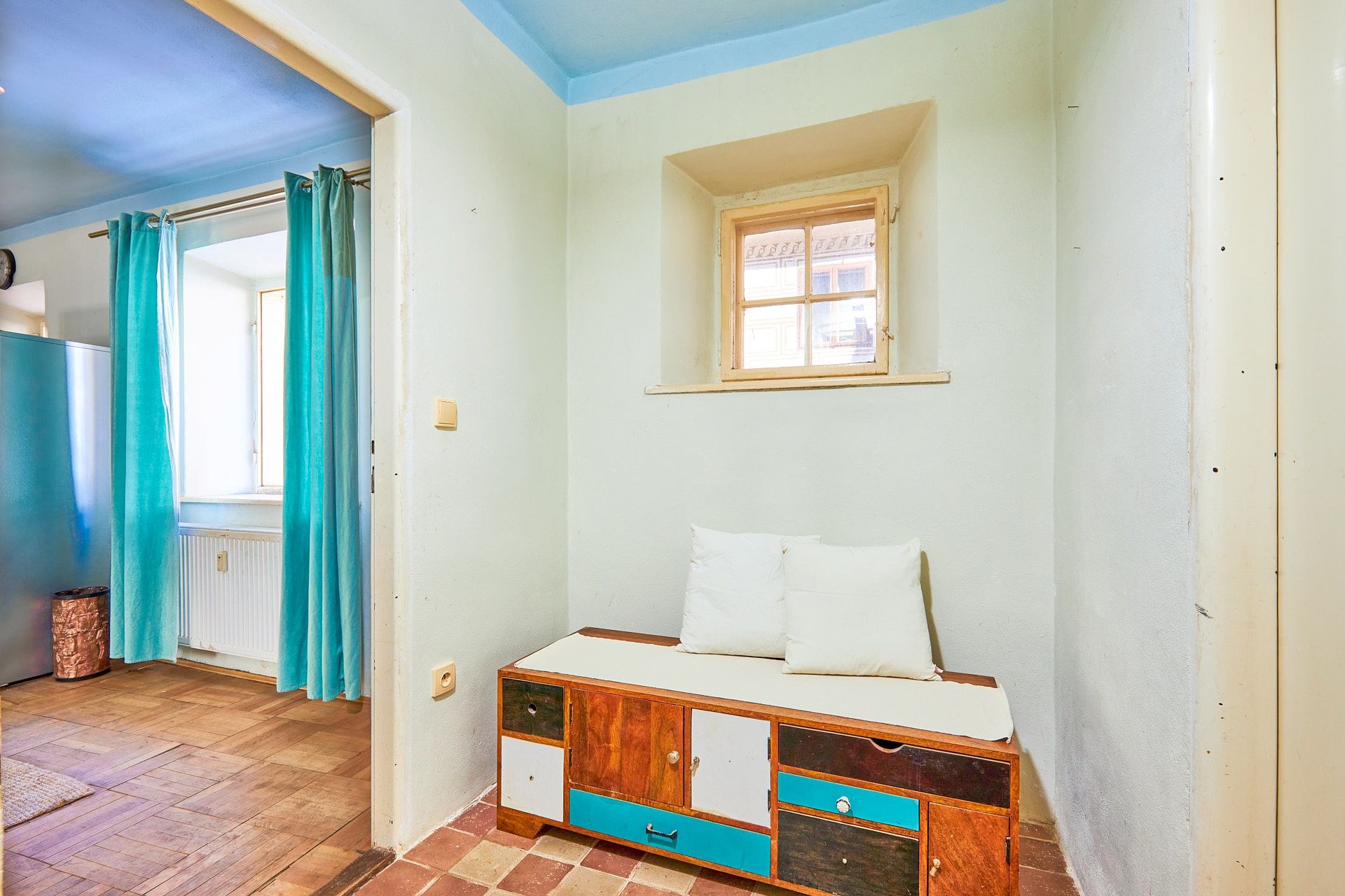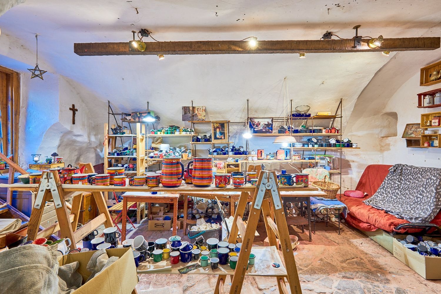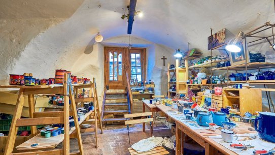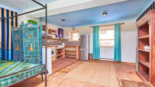 Ve sníženém přízemí s klenbami je komerční prostor, který se přímo nabízí pro kouzelnou kavárnu, cukrárnu nebo prodejnu. A pokud vlastní záměr nemáte, můžete ho pronajímat – aktuálně je v něm keramická dílna.
