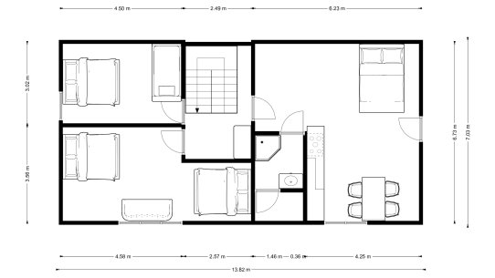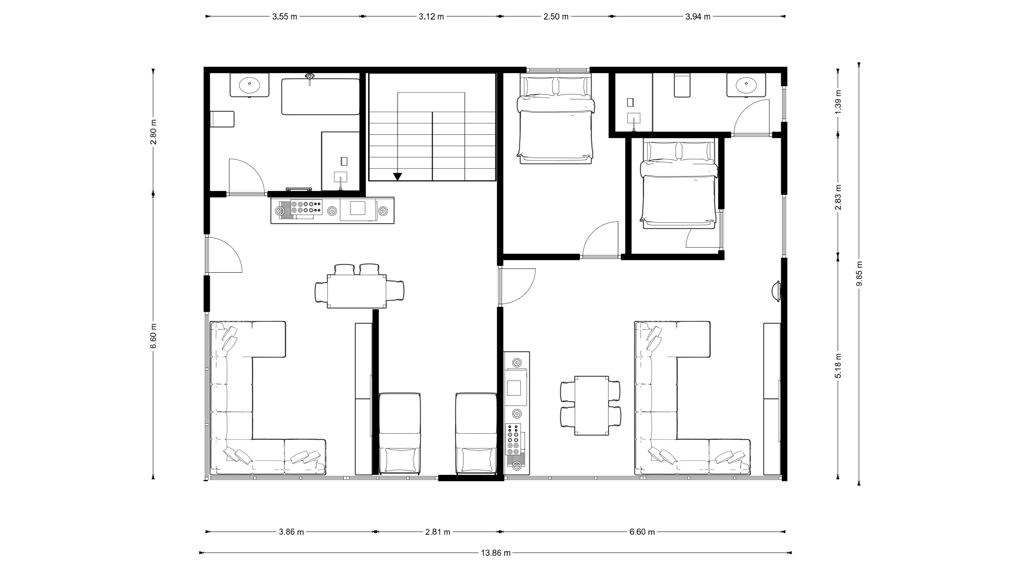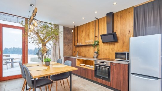V domě jsou tři apartmány s dispozicemi 3+kk, 2+kk a 1+kk. Všechny jsou kompletně vybavené – od pohodlných postelí a stylových sedaček přes jídelní stoly až po nádobí v kuchyni.