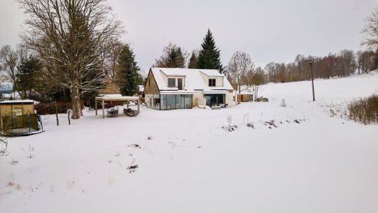 Voda je z řadu, odpad řeší jímka o objemu 15 m³. O vytápění se starají krbová kamna, podlahové vytápění je kompletně rozvedeno i rozvody pro radiátory a připraveno pro osazení kotle. V domě je klimatizace a je vybavený zabezpečovacím systémem Satelb. Zkolaudované jsou dva apartmány.