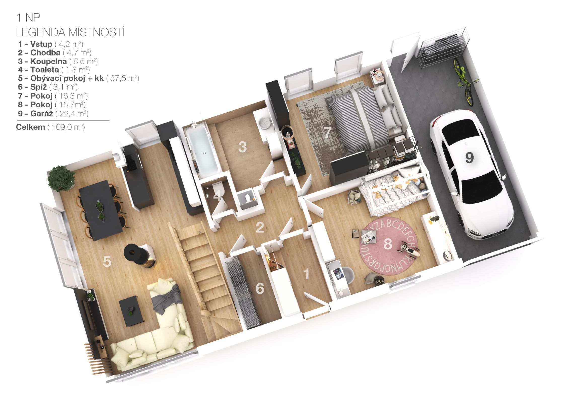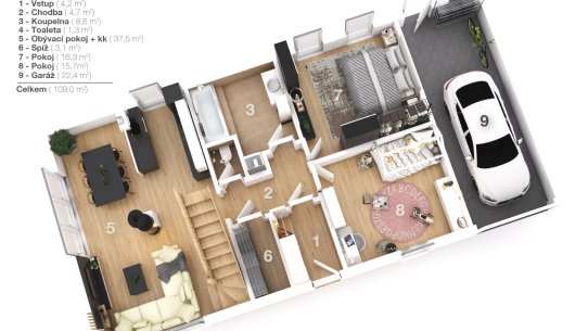 Toužíte po moderním domě 4+kk s galerií a garáží?