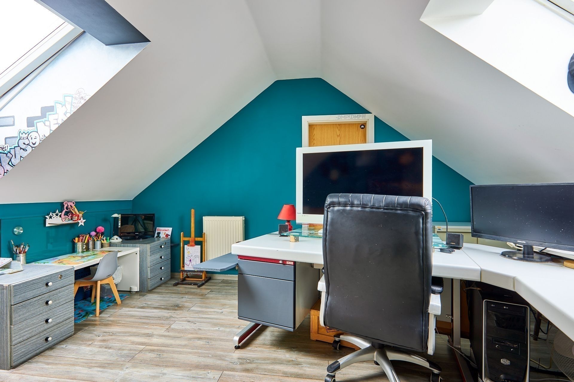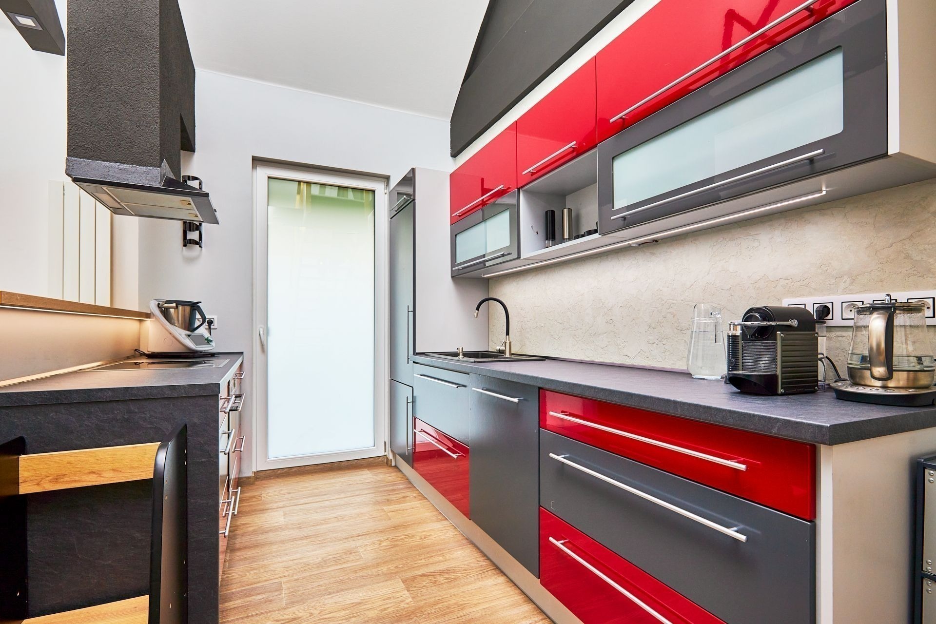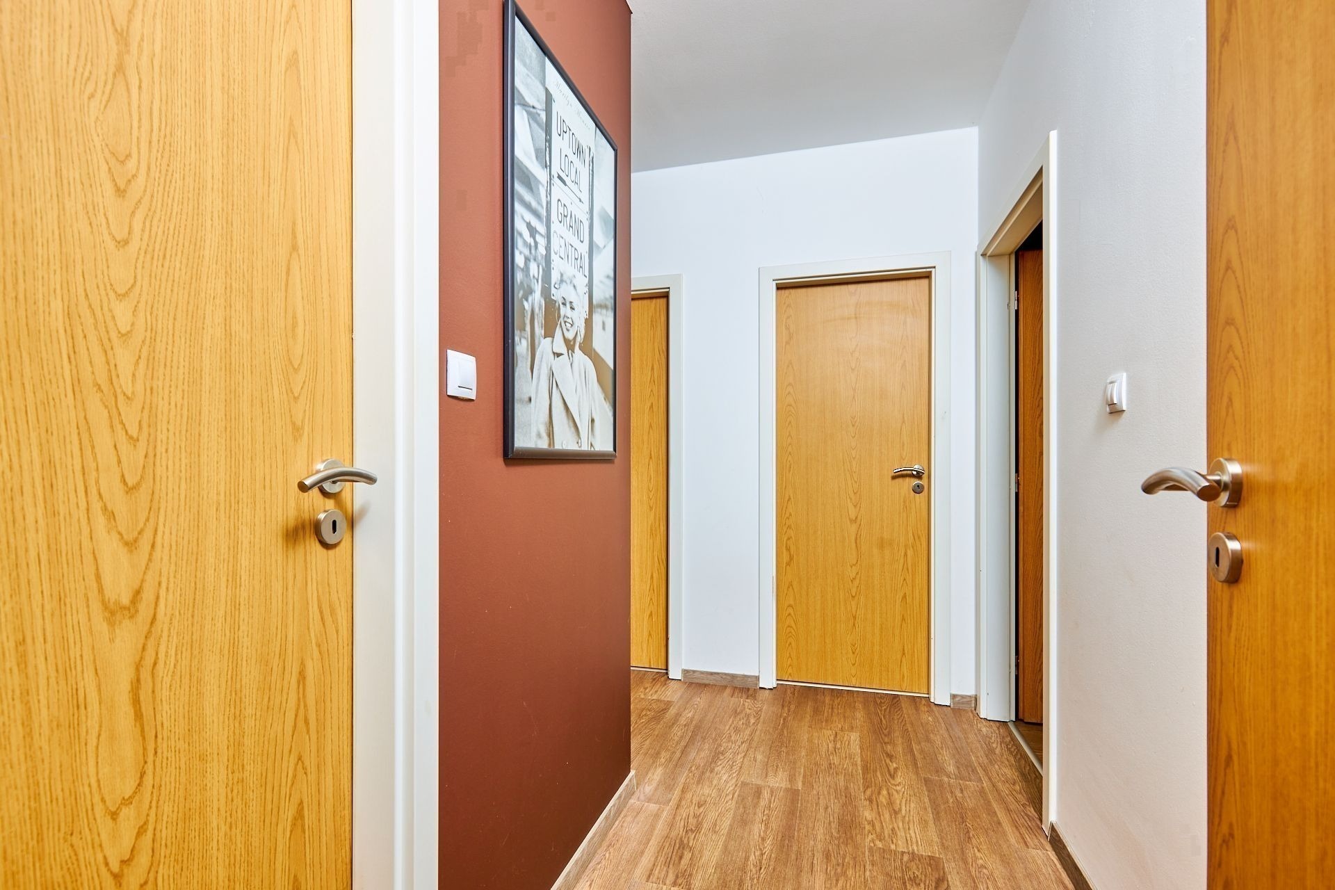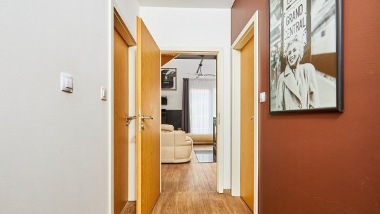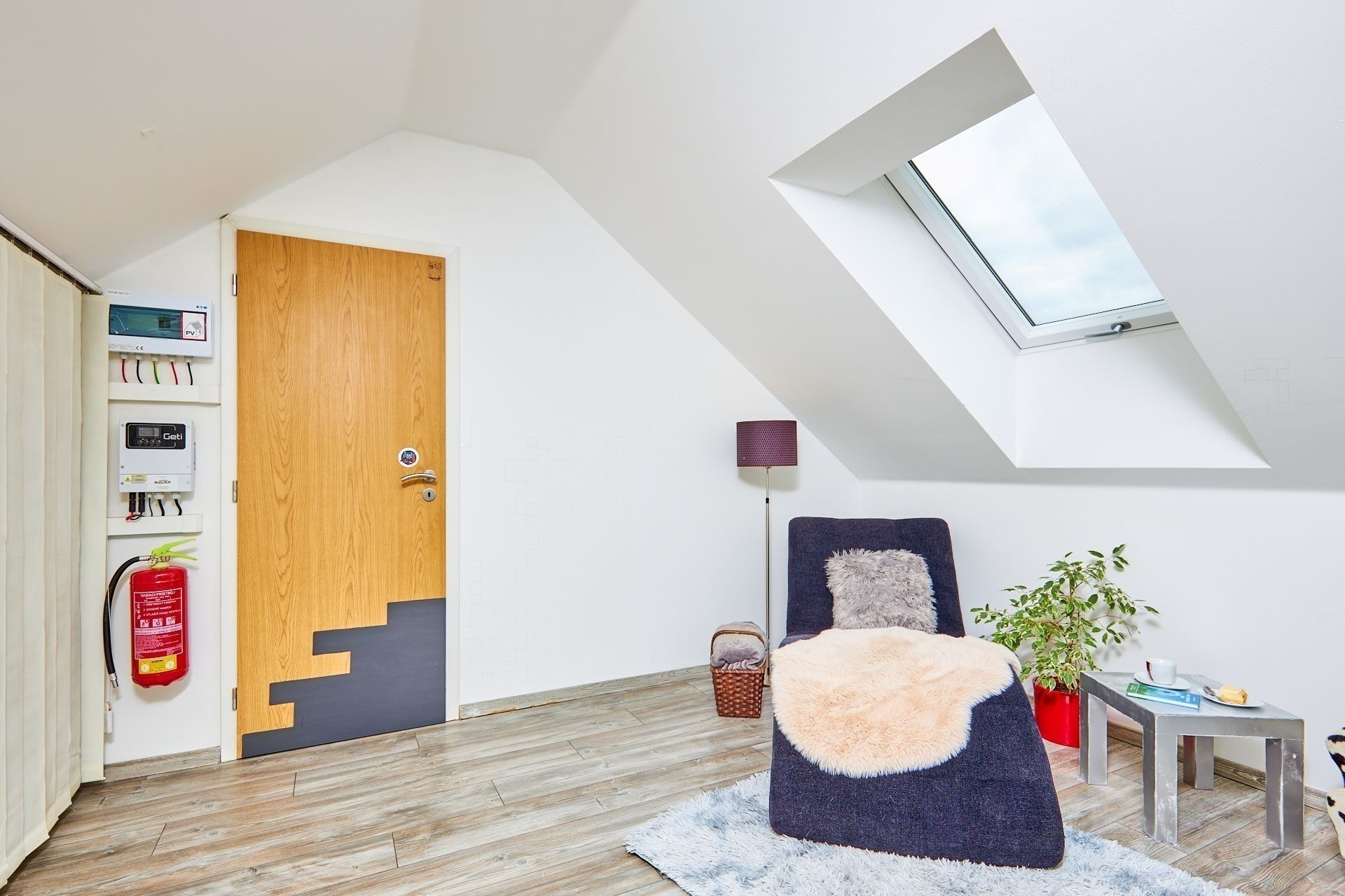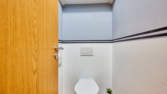 V přízemí najdete ložnici a dětský pokoj, oba s přímým vstupem na zahradu. Ranní káva na trávě? Děti běžící rovnou ven? Tady je to realita. K tomu nechybí ani koupelna a praktická spíž u kuchyně.