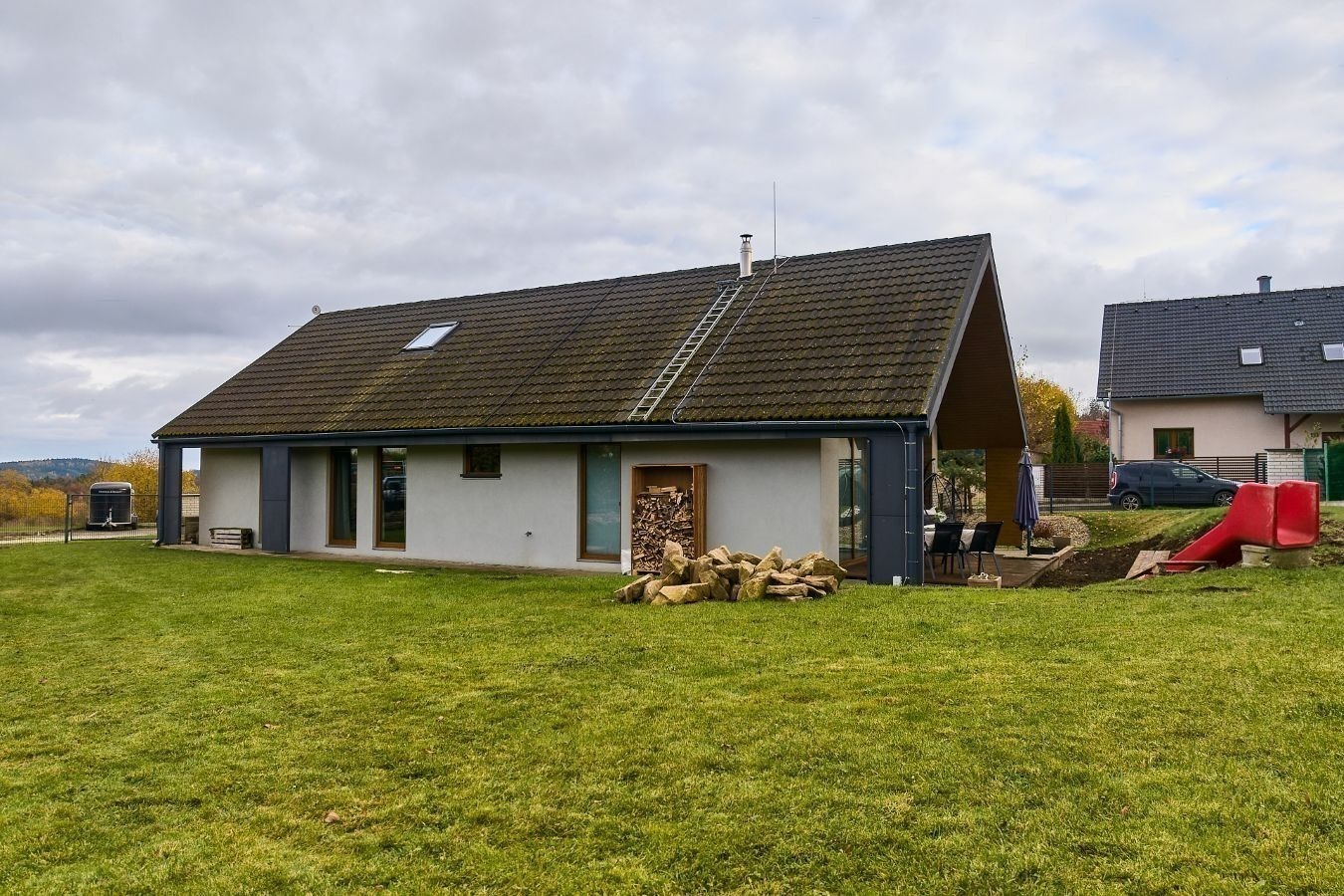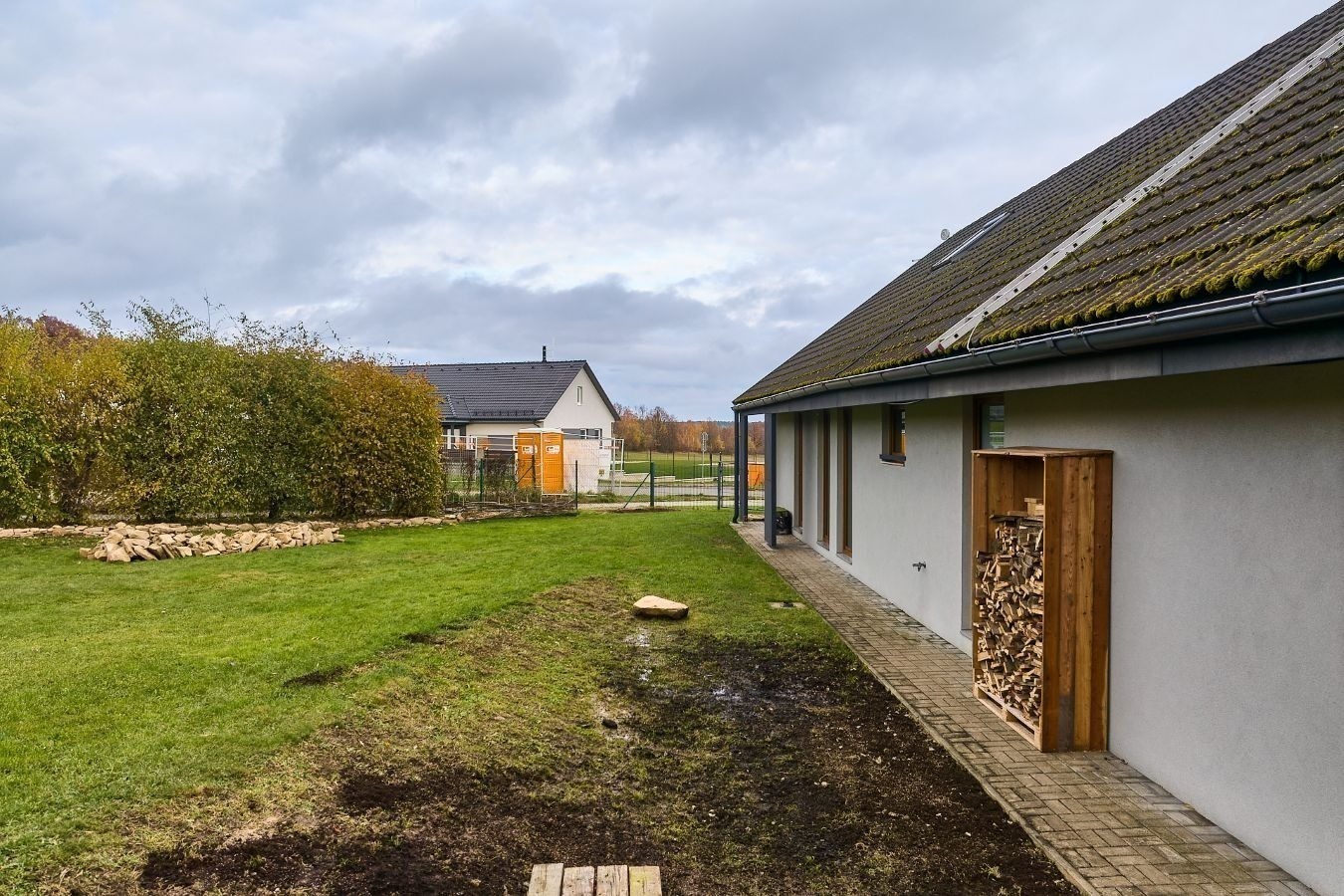 V Nebahovech na vás čeká kompletně dokončená dřevostavba s ocelovou konstrukcí, která propojuje současný styl, promyšlenou dispozici a klidné rodinné bydlení. Dům je zkolaudovaný v roce 2011 a připravený k okamžitému nastěhování. Vy se tak můžete rovnou nastěhovat a začít si ho přizpůsobovat podle svého – bez starostí, bez odkladů.