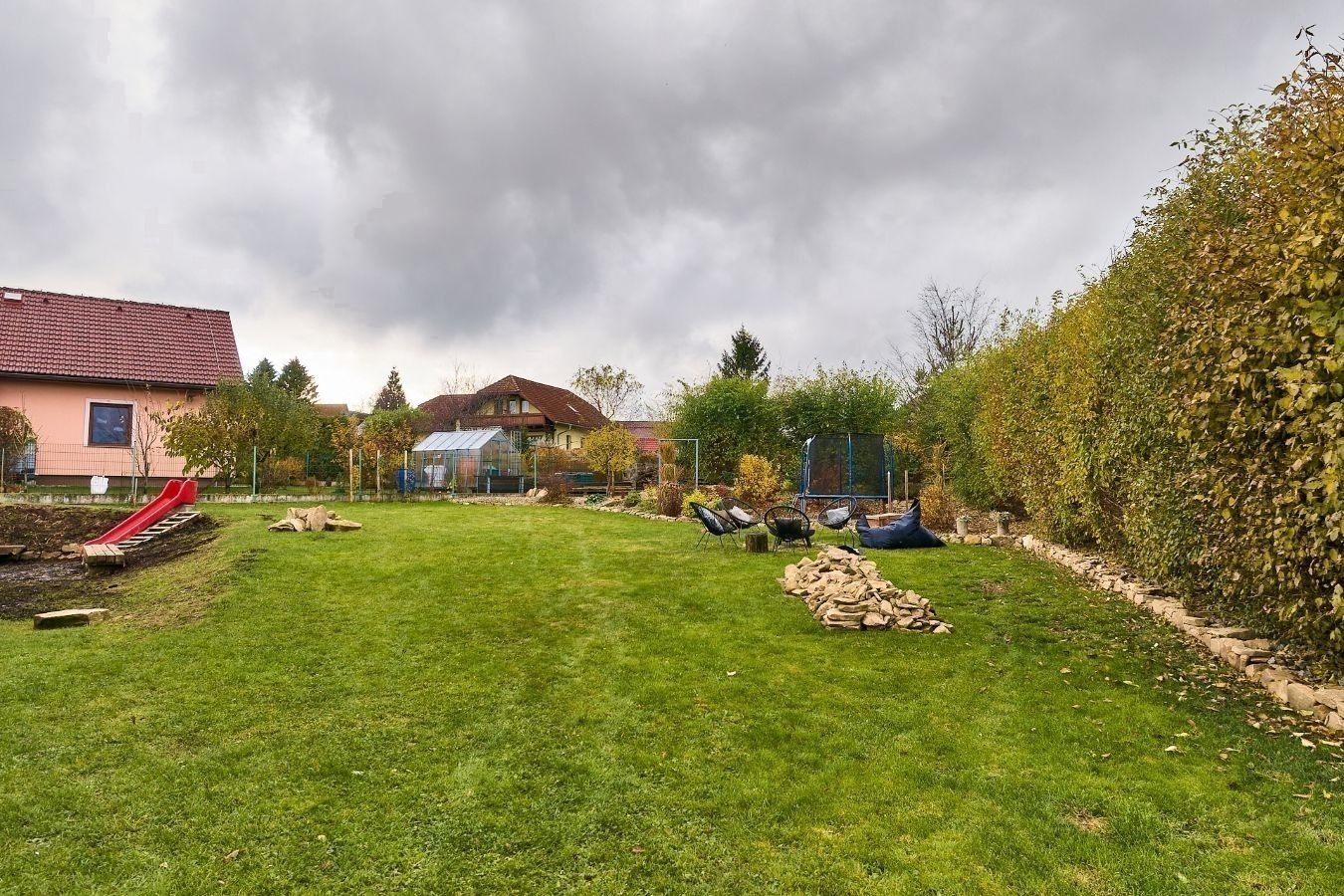 Můžete založit ovocný sad, moderní terasu, bazén, dětské hřiště nebo okrasnou zahradu s posezením. Možností je tu skutečně dost.