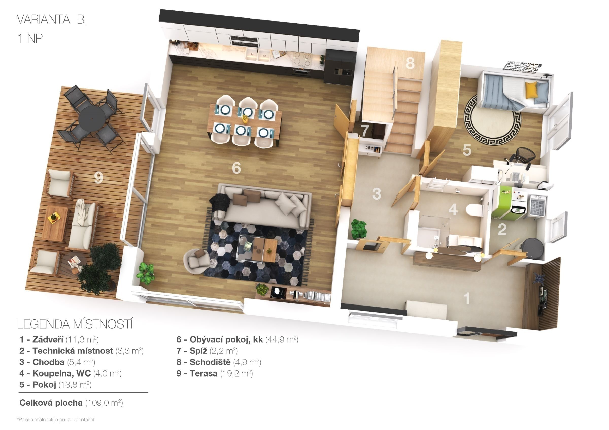 varianta B - s dokončeným druhým nadzemním podlažím