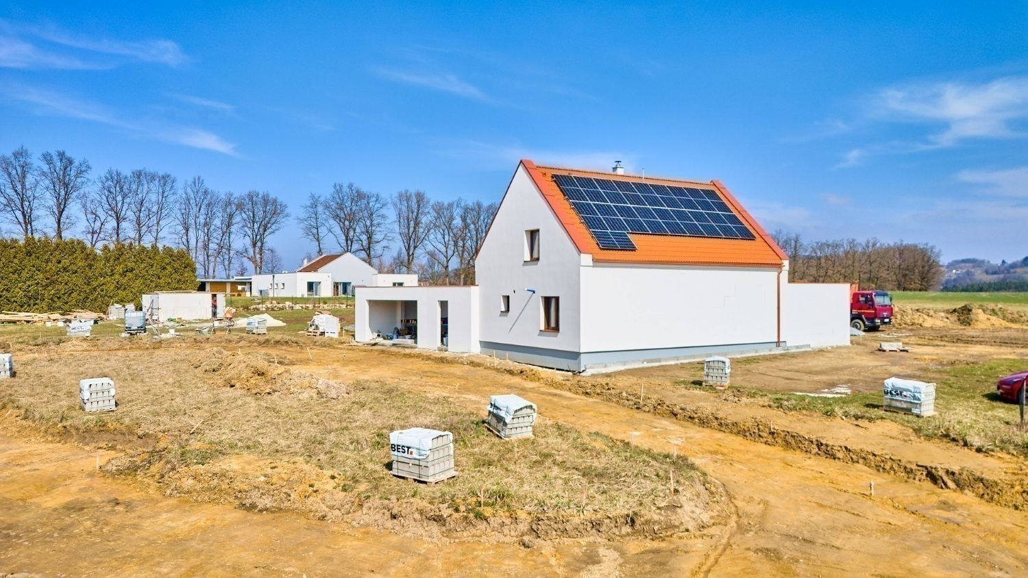 Velkou výhodou je, že se stavbou se začne až po prodeji. Díky tomu si můžete sami zvolit dveře, podlahy, obklady či osvětlení přesně podle svého vkusu. A pokud preferujete naprostou svobodu, stavební firma vám dům ráda předá ve stavu hrubé stavby, abyste si ho mohli dokončit zcela po svém.