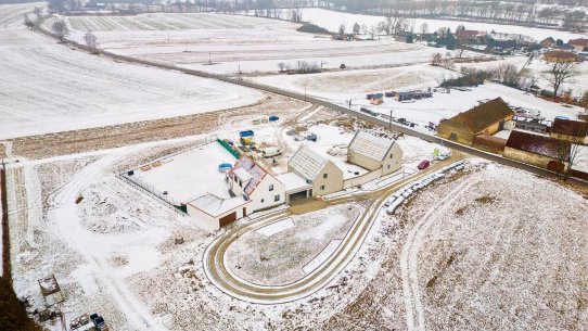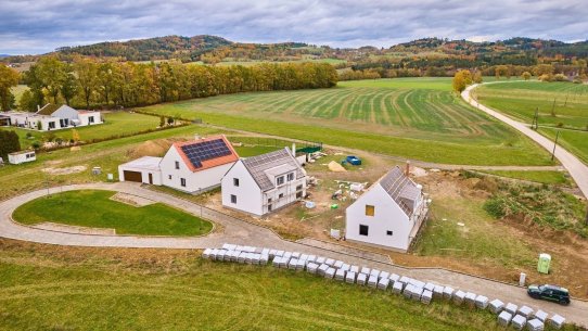 Architektonický koncept dokonale zapadá do jihočeské krajiny – propojuje tradiční lidovou architekturu s moderními úspornými technologiemi, jako je rekuperace nebo zelená střecha. Tyto technologie nejen šetří náklady na energie, ale také umožňují čerpat na dům dotace, což je příjemný bonus.