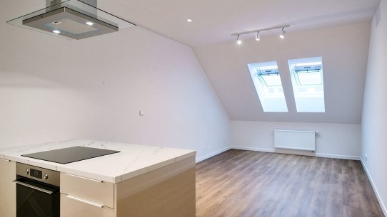 Všechny byty mají nové rozvody elektřiny, vody a vytápění. Kuchyně jsou vybavené novou troubou a varnou deskou. Kvalitní střešní okna vám zajistí klidný spánek i příjemné účty za energie. K bytům si můžete pronajmout také parkovací stání.