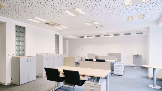 Prostory jsou světlé, moderní a připravené k okamžitému nastěhování. Nacházejí se ve velkém domě a vy si můžete vybrat přesně to, co vaše firma potřebuje – jednu kancelář pro sebe, dvě místnosti pro malý tým nebo celou část pro větší firmu. Pronájem je možný jak po jednotlivých místnostech, tak i po částech podle metrů čtverečních.