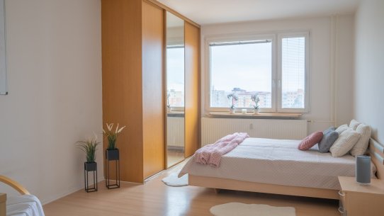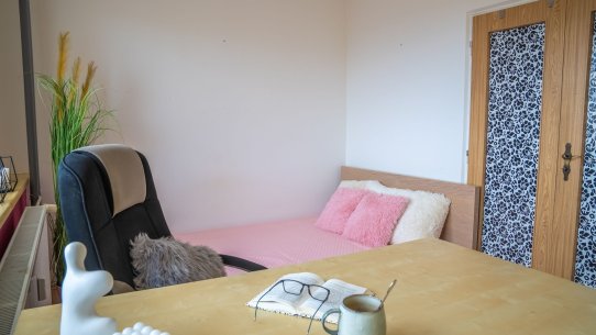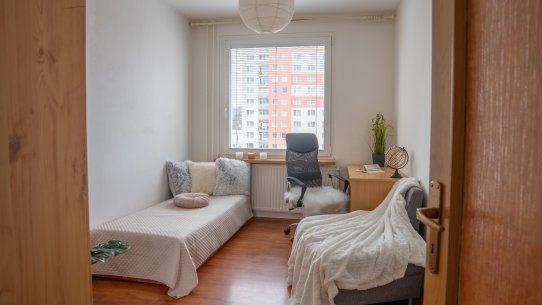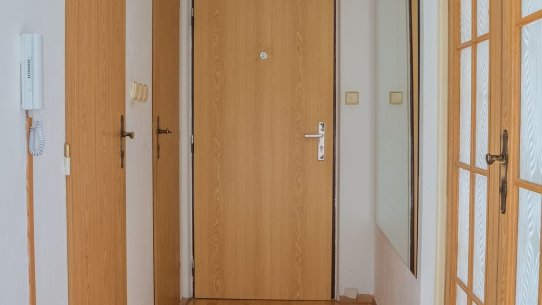 Leží v 5. patře revitalizovaného panelového domu s novou fasádou. Dveře budete otevírat čipem, na chodbě za vás rozsvítí pohybové čidlo a k bytu vás vyveze výtah.