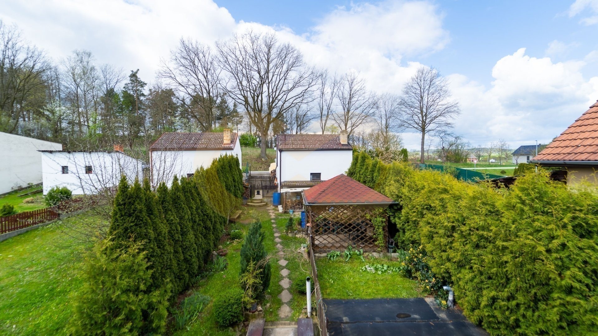 Na zahradě na vás čeká zahrada s dřevěnou pergolou a dílnou, do které je zavedená elektřina, voda i kanalizace. V dílně můžete kutit nebo ji předělat na zahradní domek ideální pro akce s přáteli. Nad dílnou je také půda, kam můžete uložit zahradní náčiní nebo třeba stavební materiál.