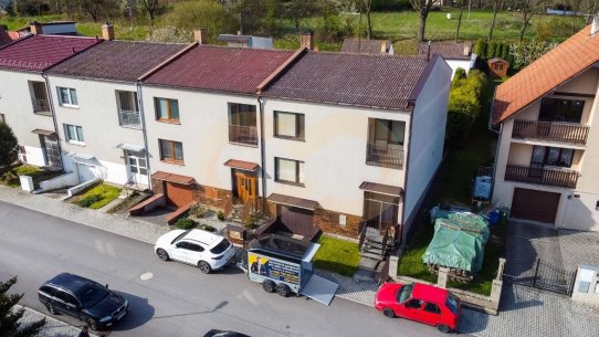 Řadový rodinný dům o velikosti 240 m2 má dvě patra a skládá se ze tří ložnic, dvou obývacích pokojů, kuchyně s komorou, koupelny a dvou toalet. V suterénu se nachází sklad a sušárna s koupelnou. K domu patří garáž a zahrada s výměrou 410 m2, na které stojí pergola a dílna. Do garáže a na zahradu se dostanete jak vraty z ulice, tak vstupem ze suterénu.
