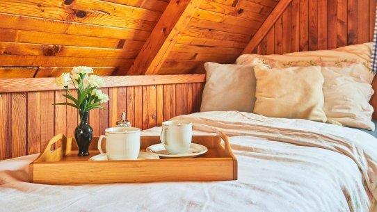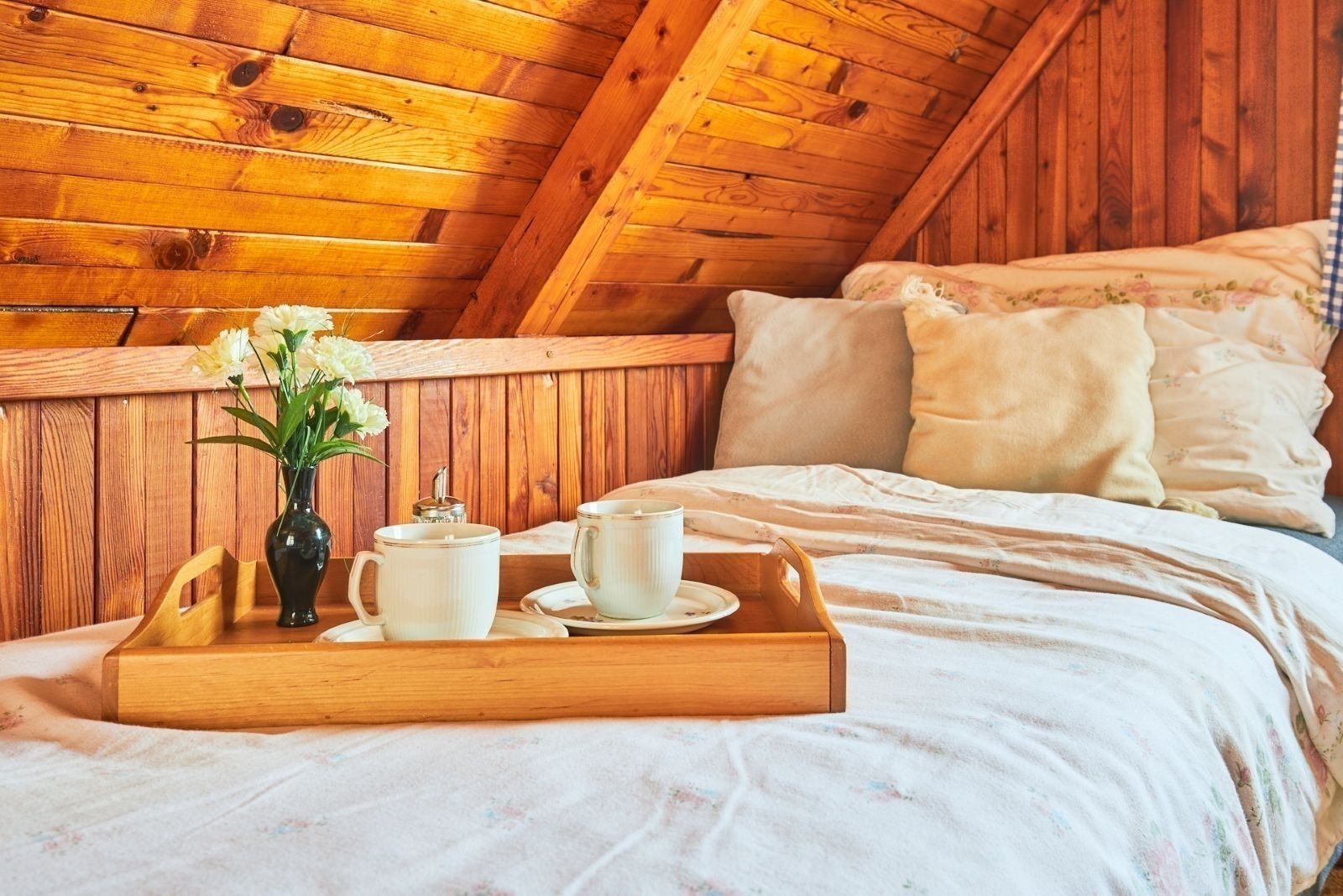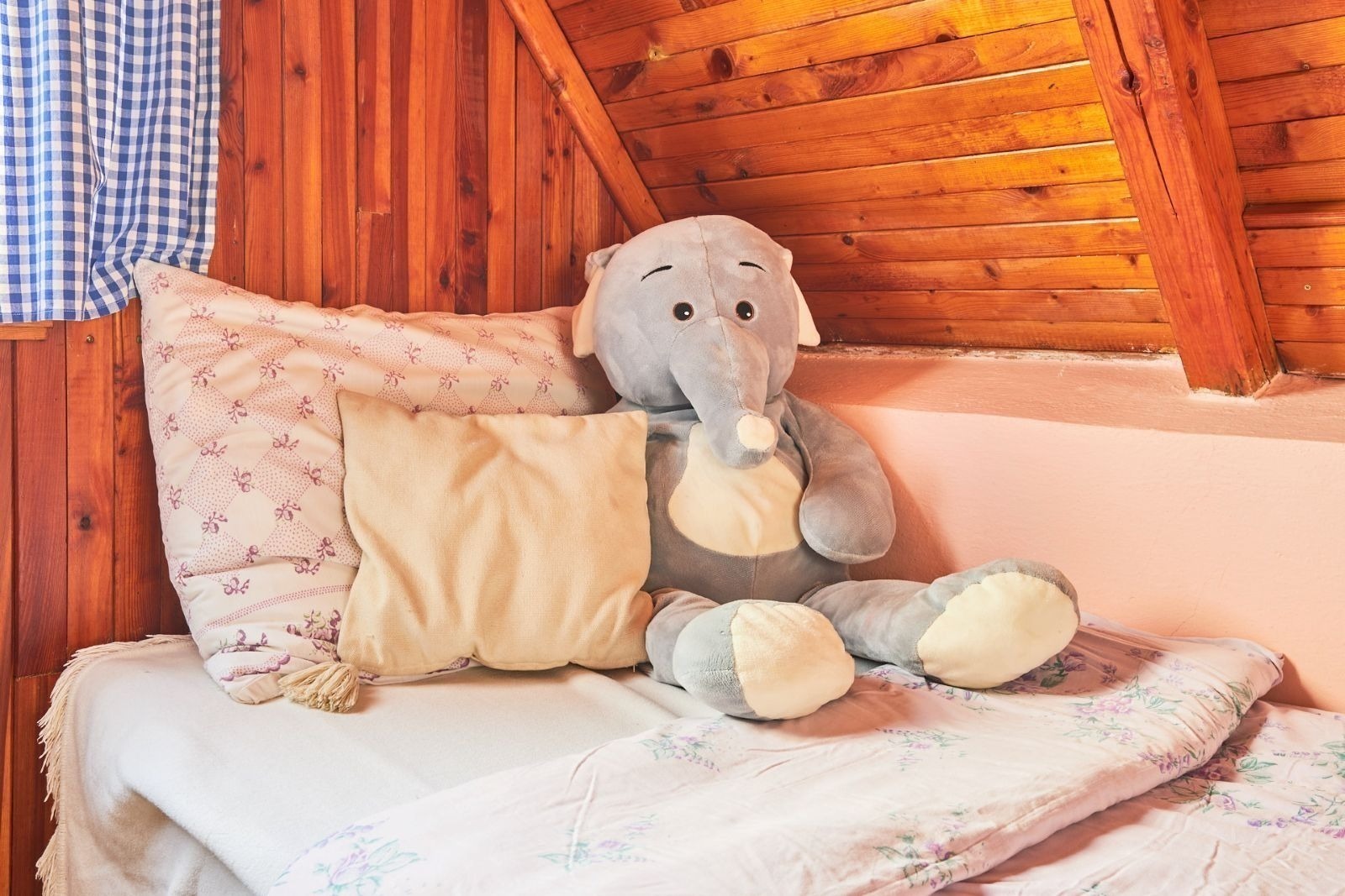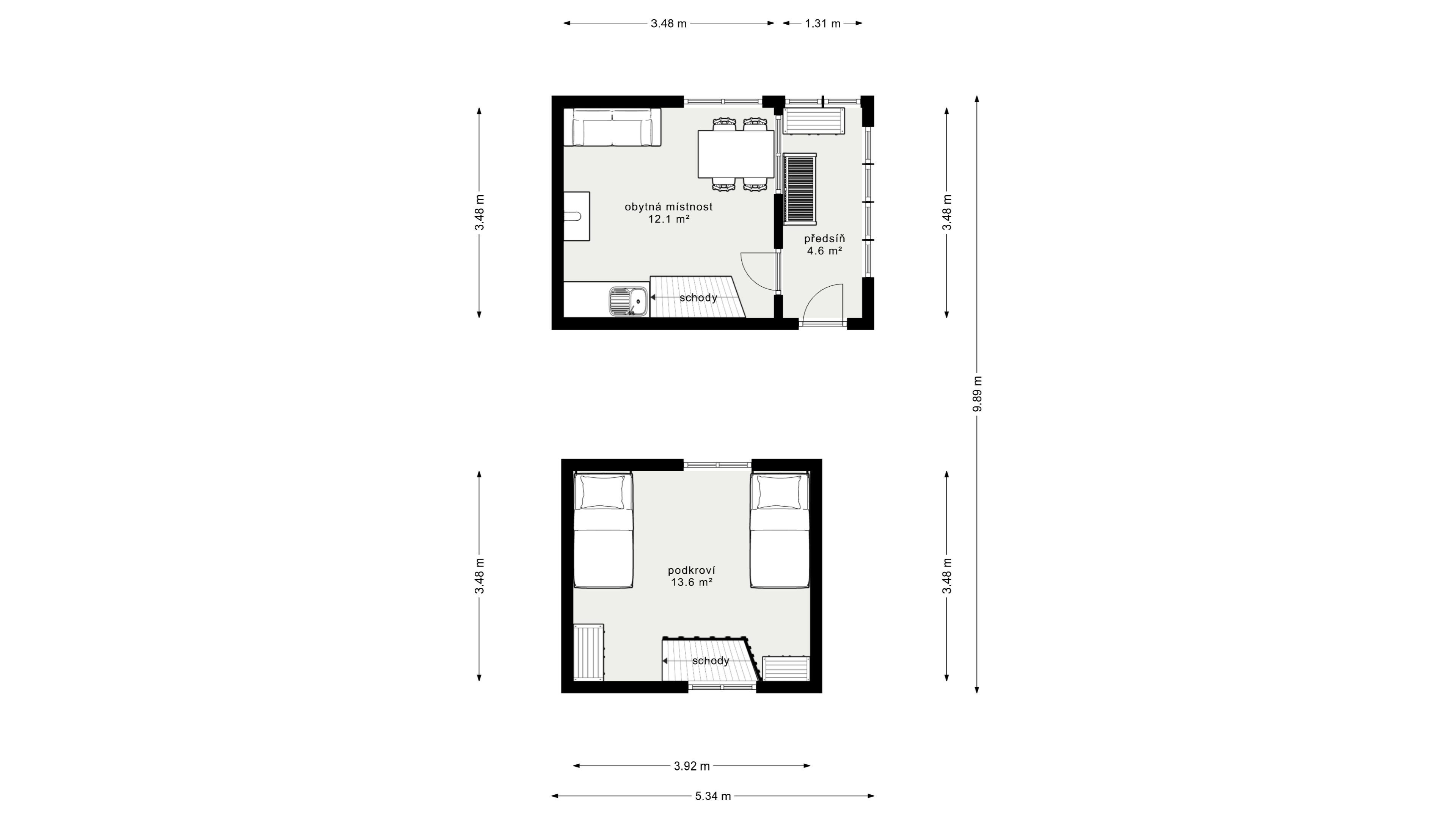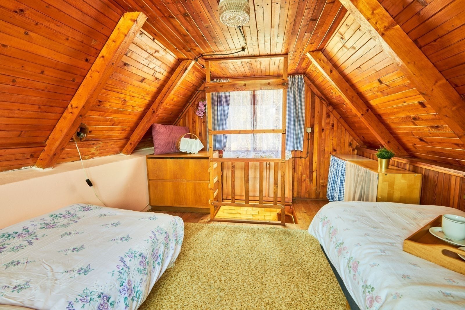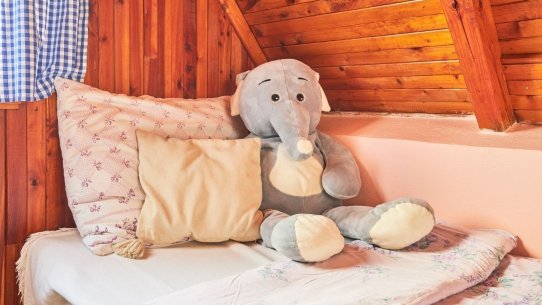 Do patra vedou dřevěné schody, které vás zavedou do ložnicového prostoru s postelemi. Tento prostor poskytuje dostatek místa pro přespání několika osob a nabízí příjemnou atmosféru pro odpočinek.