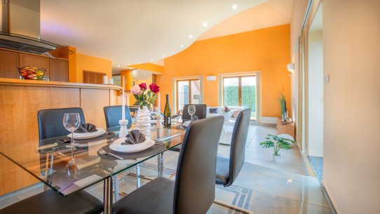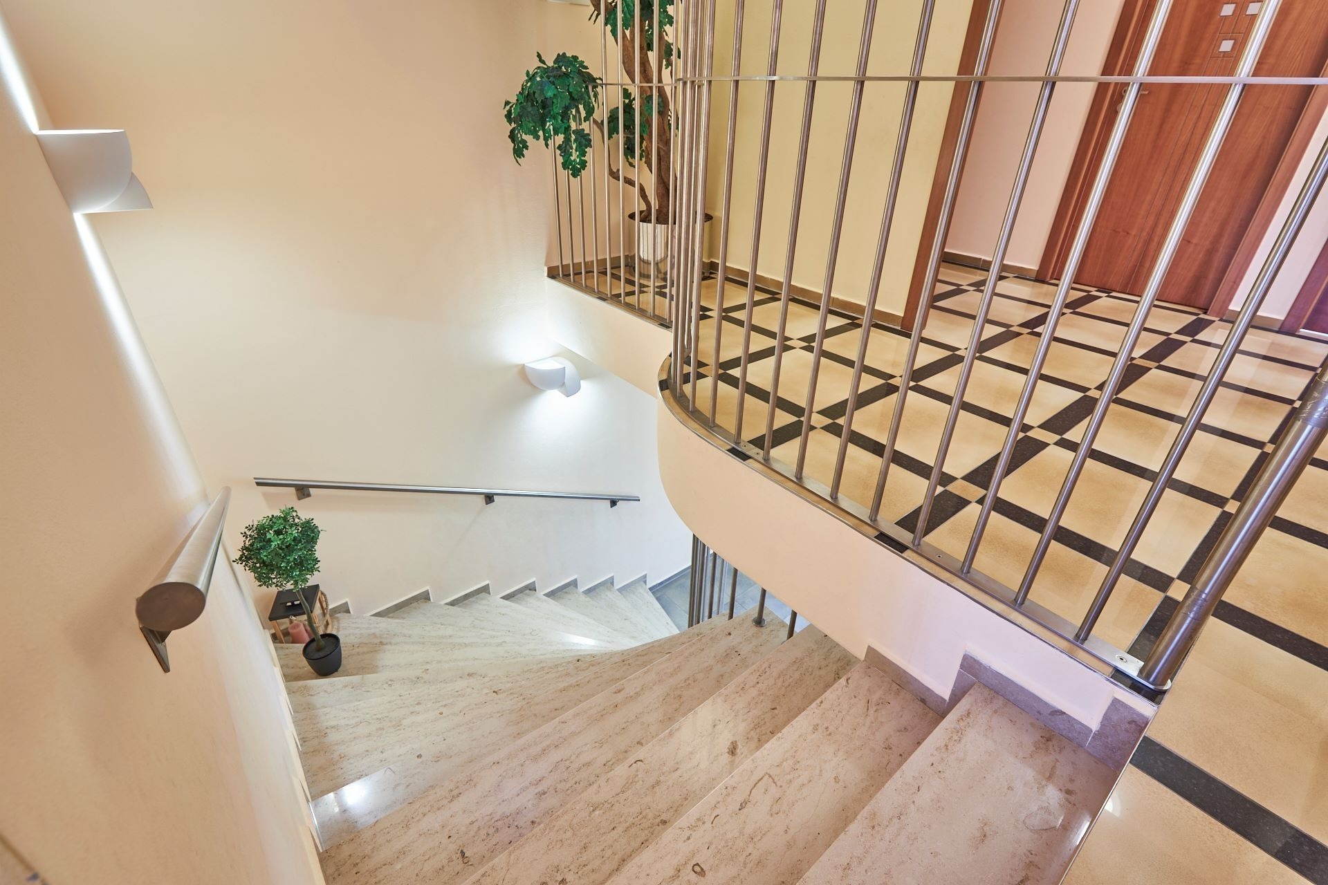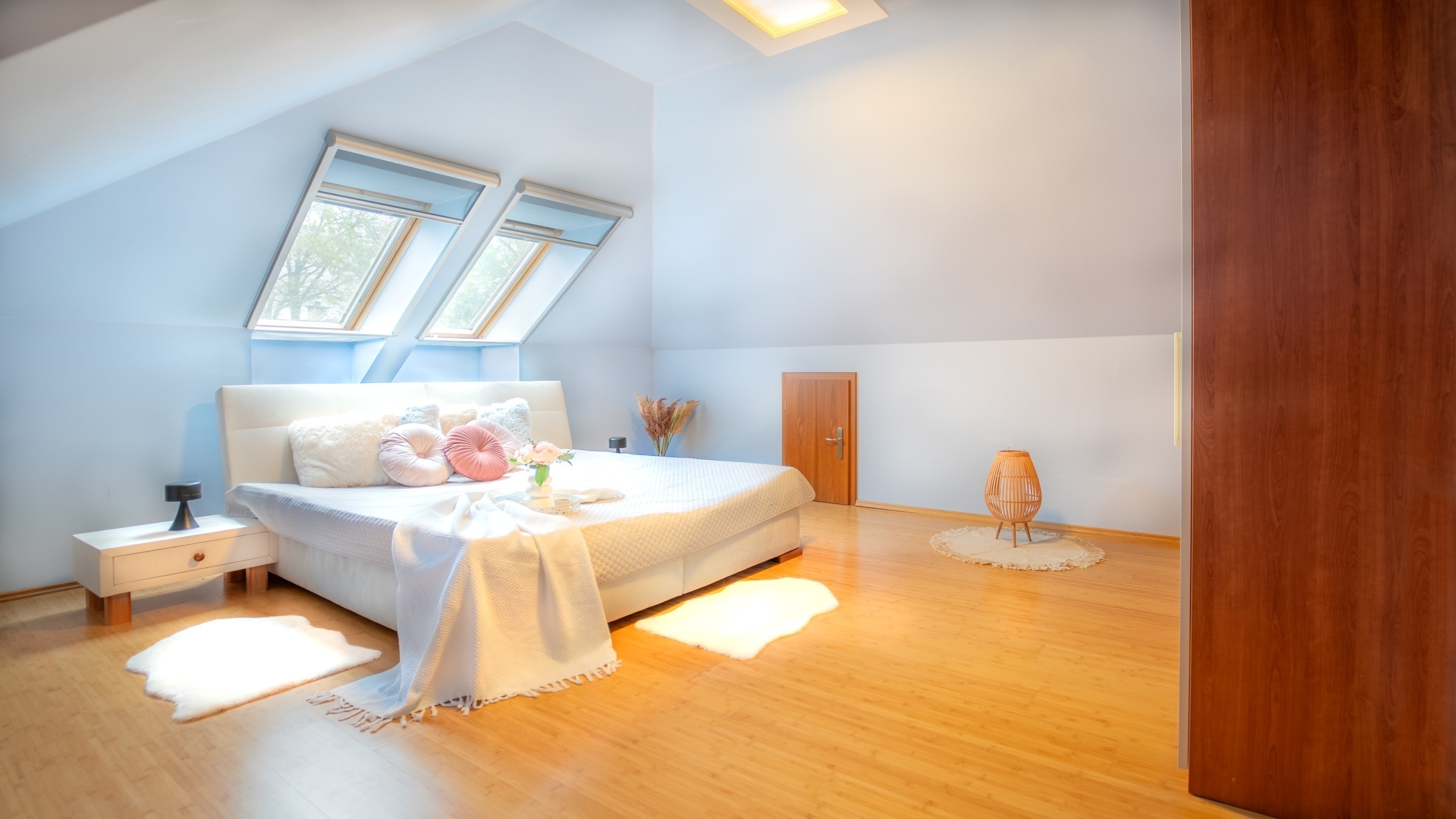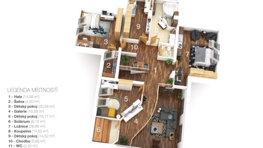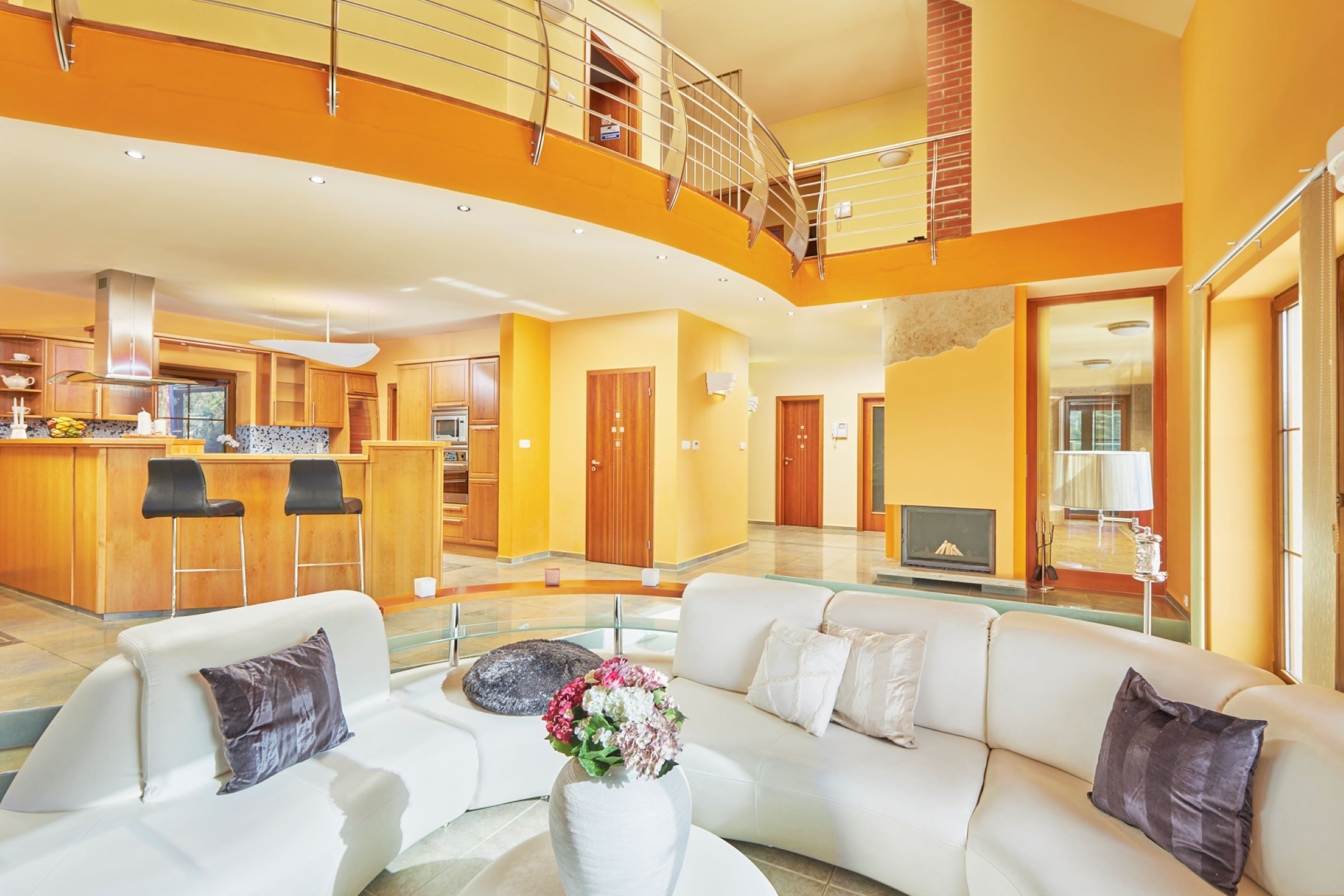 Po mramorovém schodišti vystoupáte do patra a pokocháte se pohledem na svůj nový obývák. Z galerie zamíříte nachytat bronz do solária nebo si odpočinete v jedné ze čtyř ložnic.