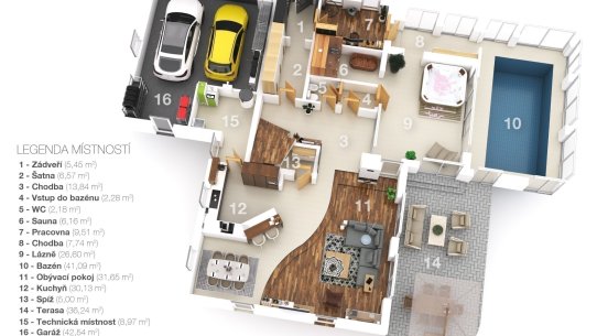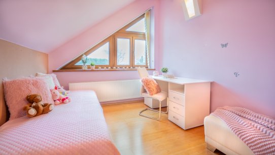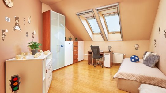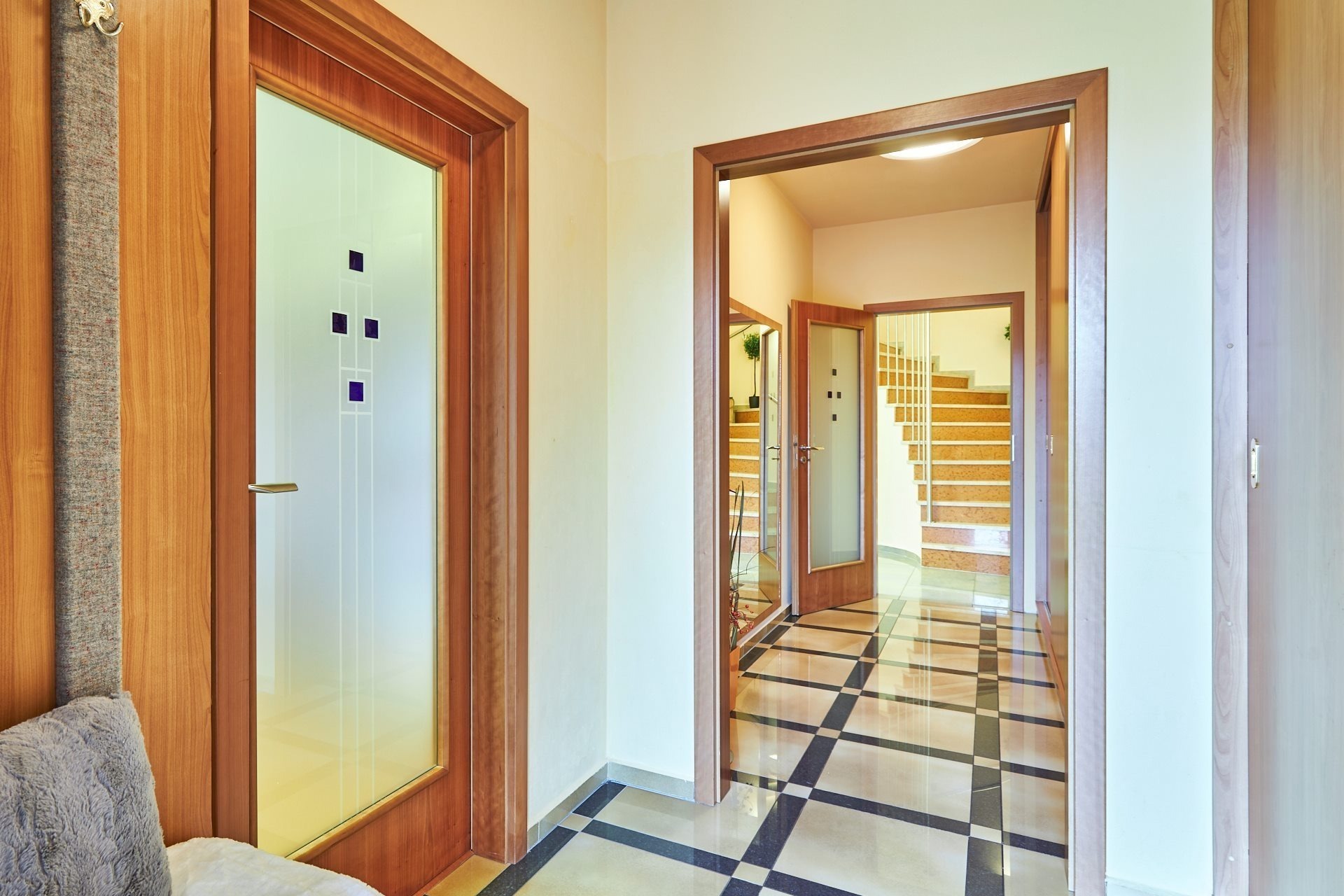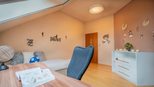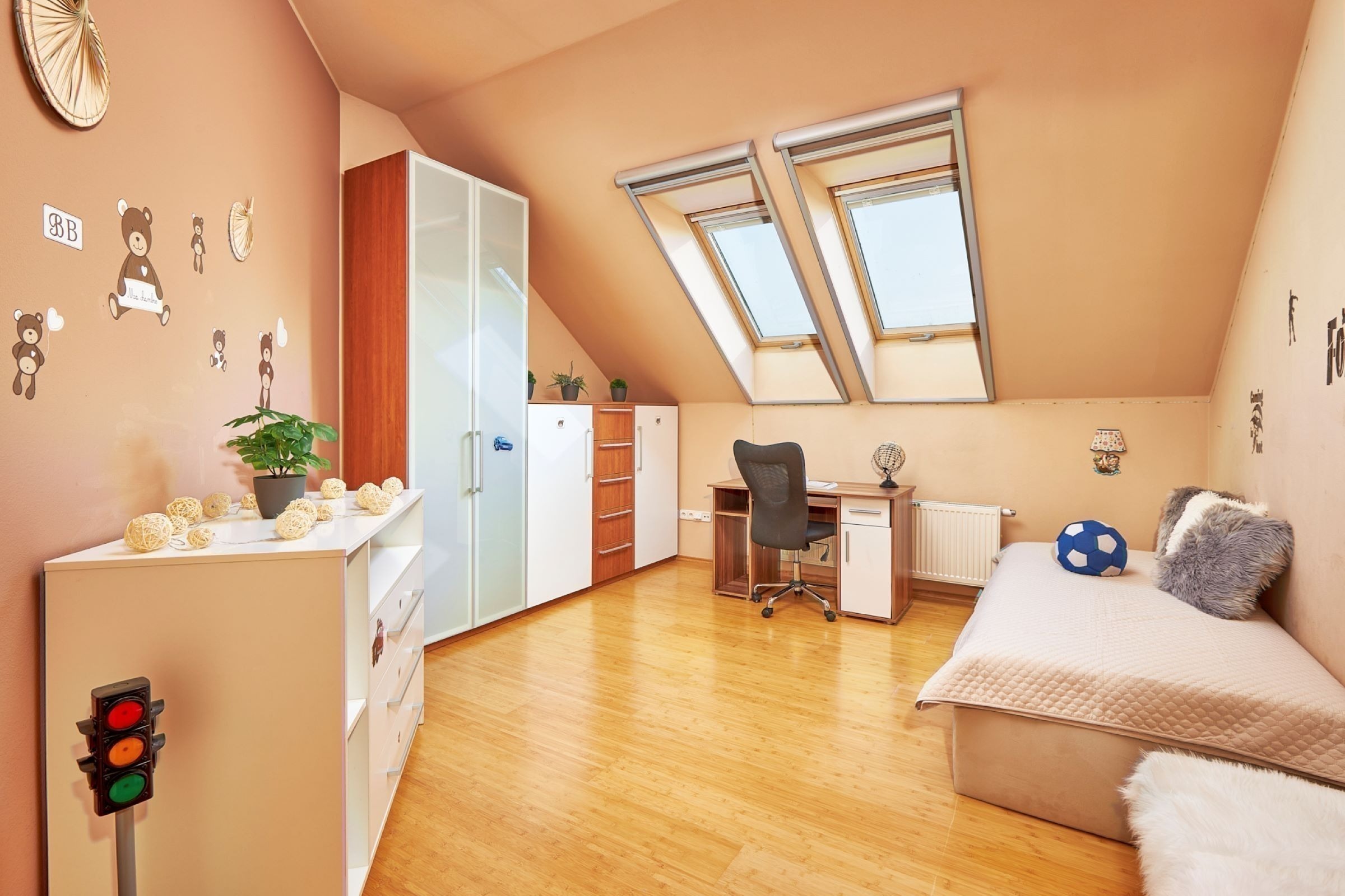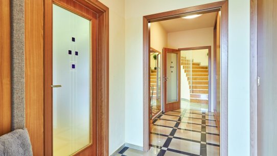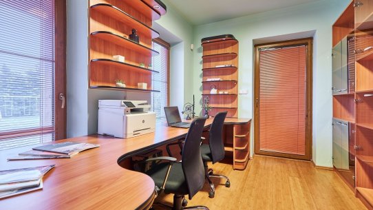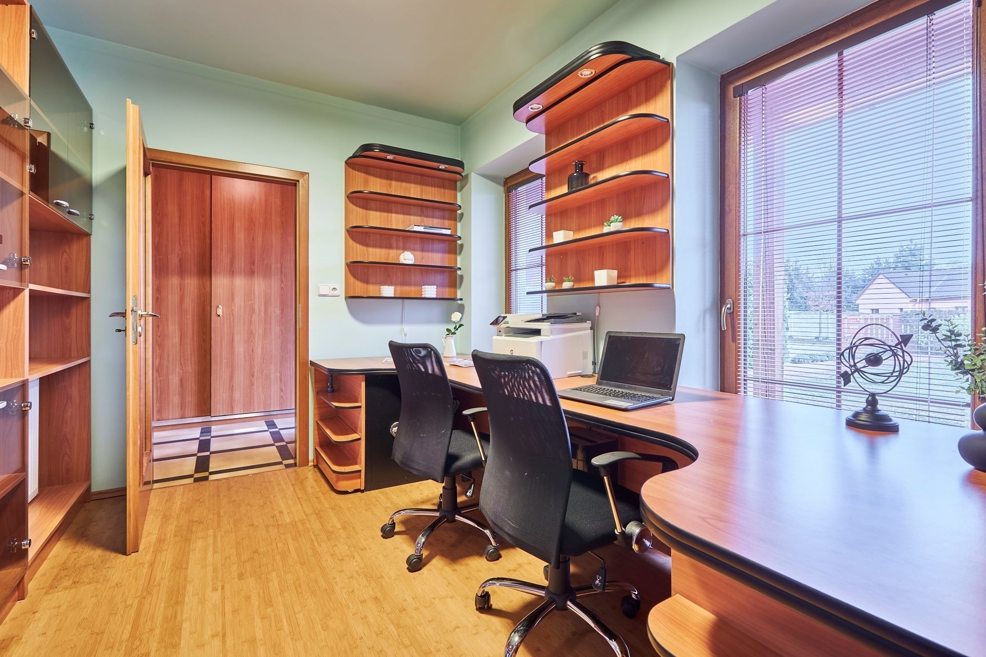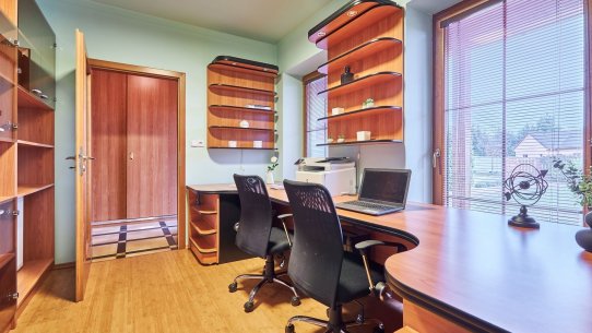 Nosíte si práci domů? Žádný problém. Hned za vstupem do domu je pracovna. Od obytné části domu ji dělí zádveří, šatna a chodba – při jednání vás nebude nic rušit.