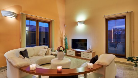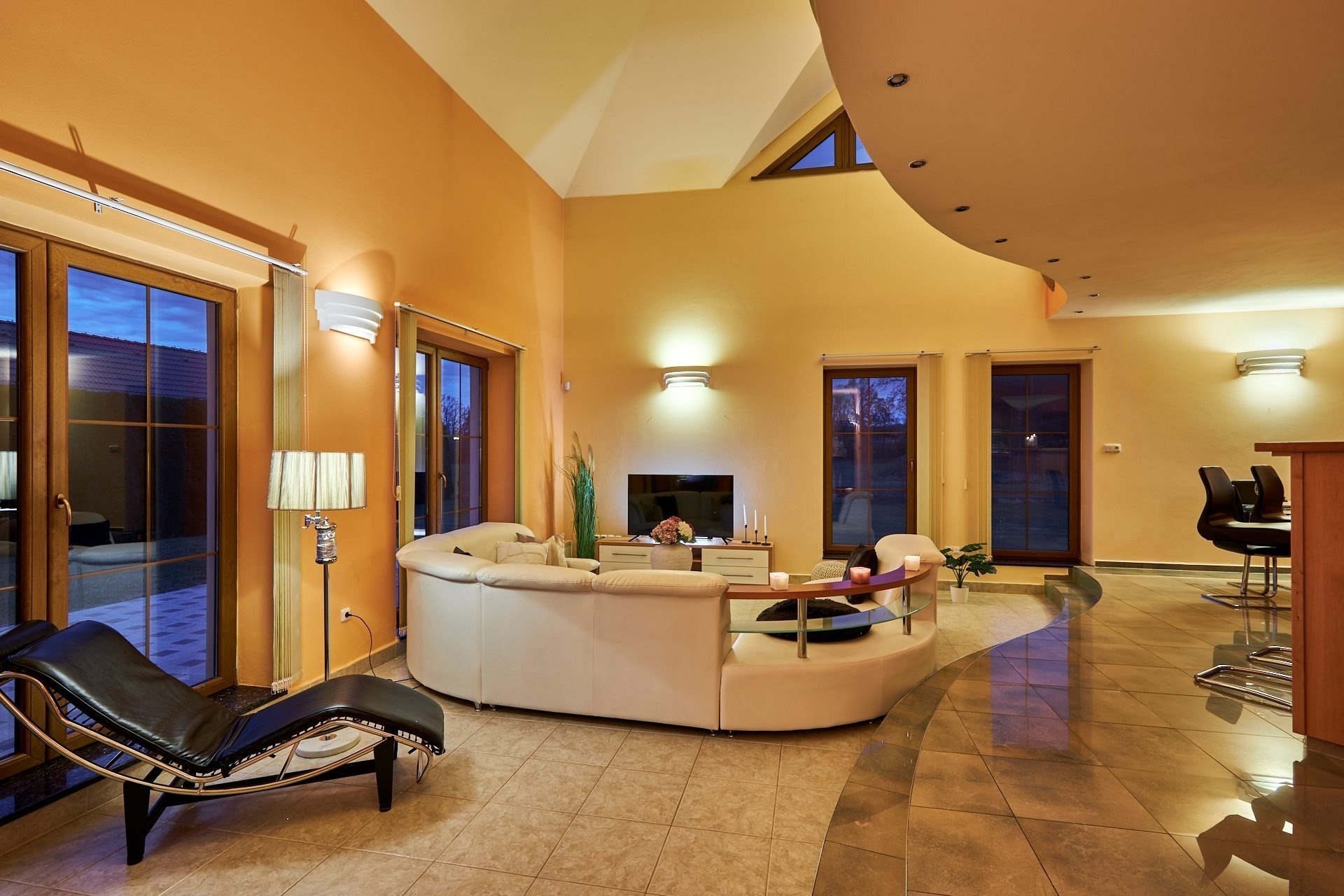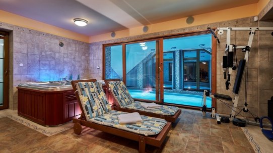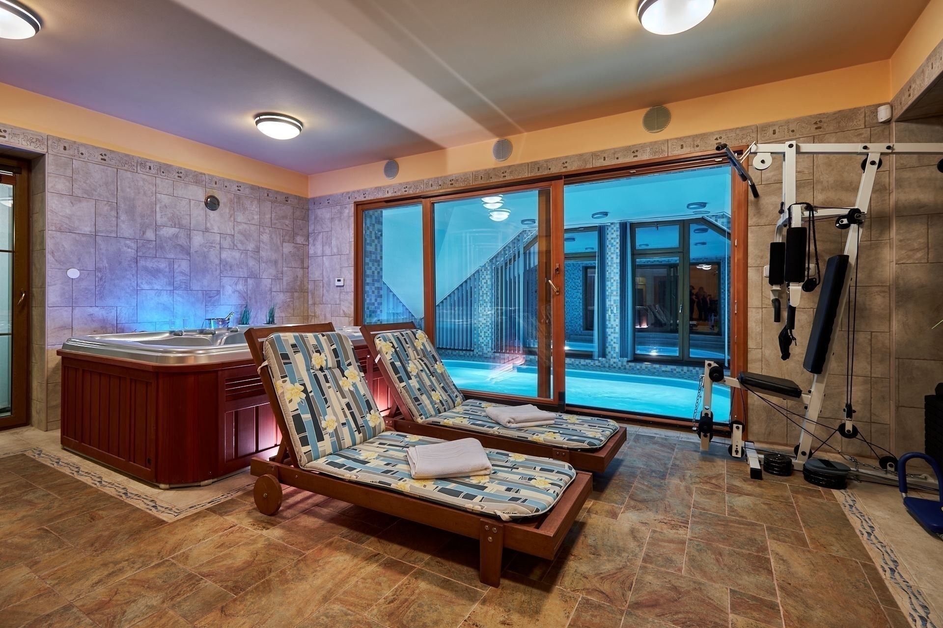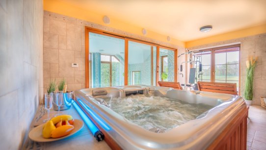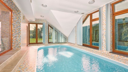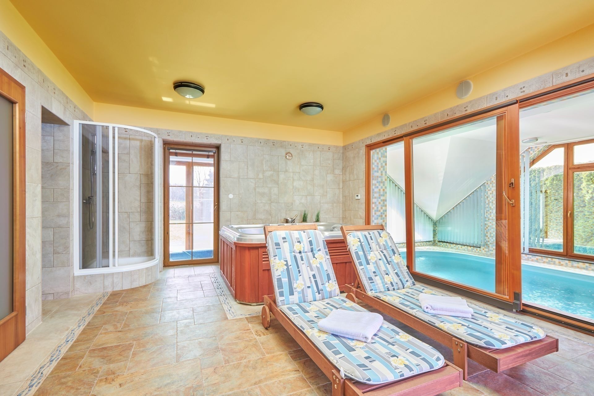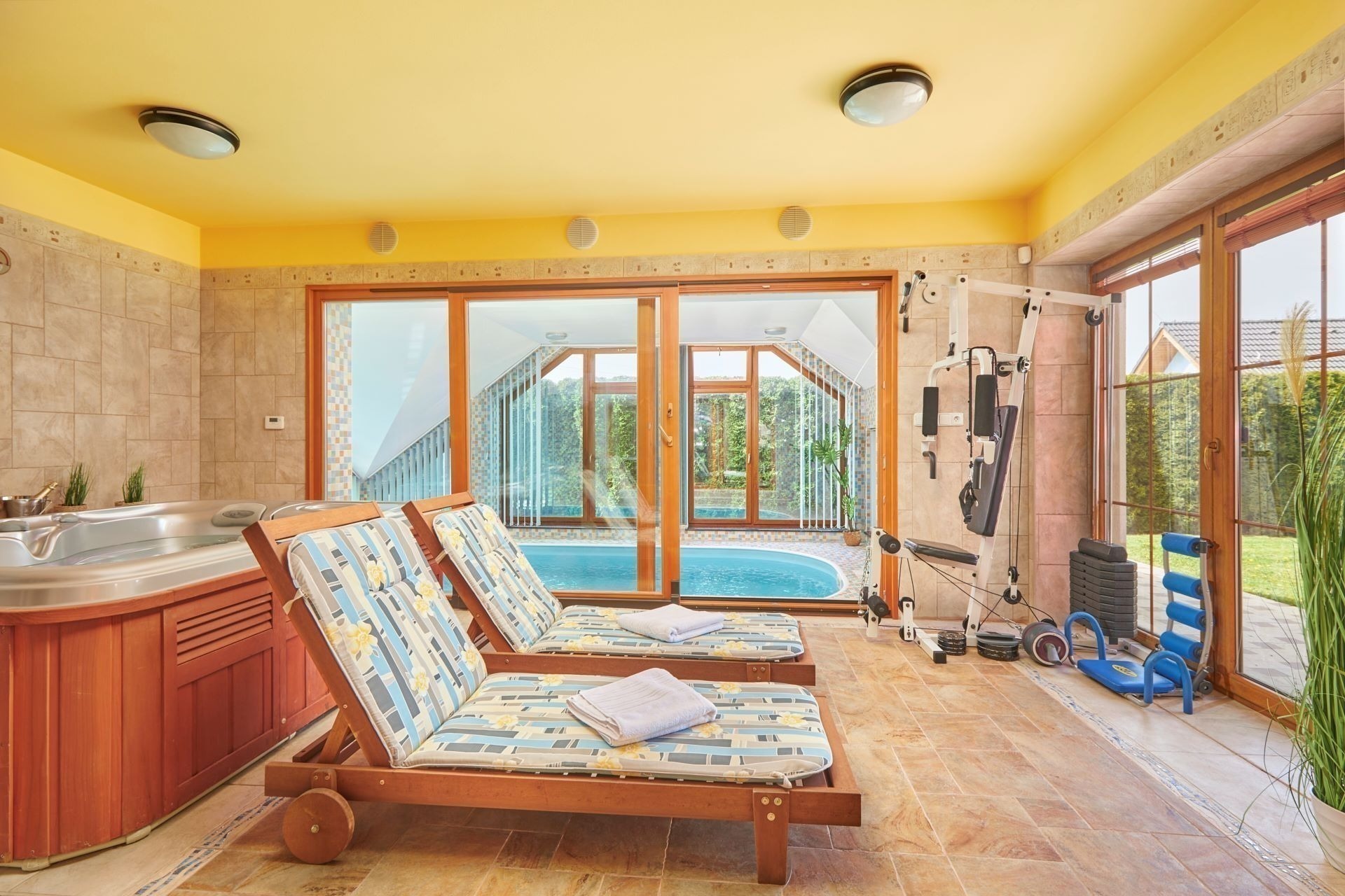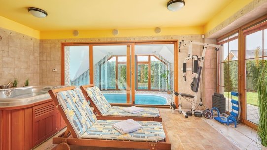 A to nejlepší? Do vnitřního bazénu s protiproudem a krásným výhledem do zahrady to budete mít ze všech prostorů domu jen pár kroků. Po kondičním plavání se můžete zrelaxovat v infrasauně s hudbou a světelnou terapií nebo ve vířivce.