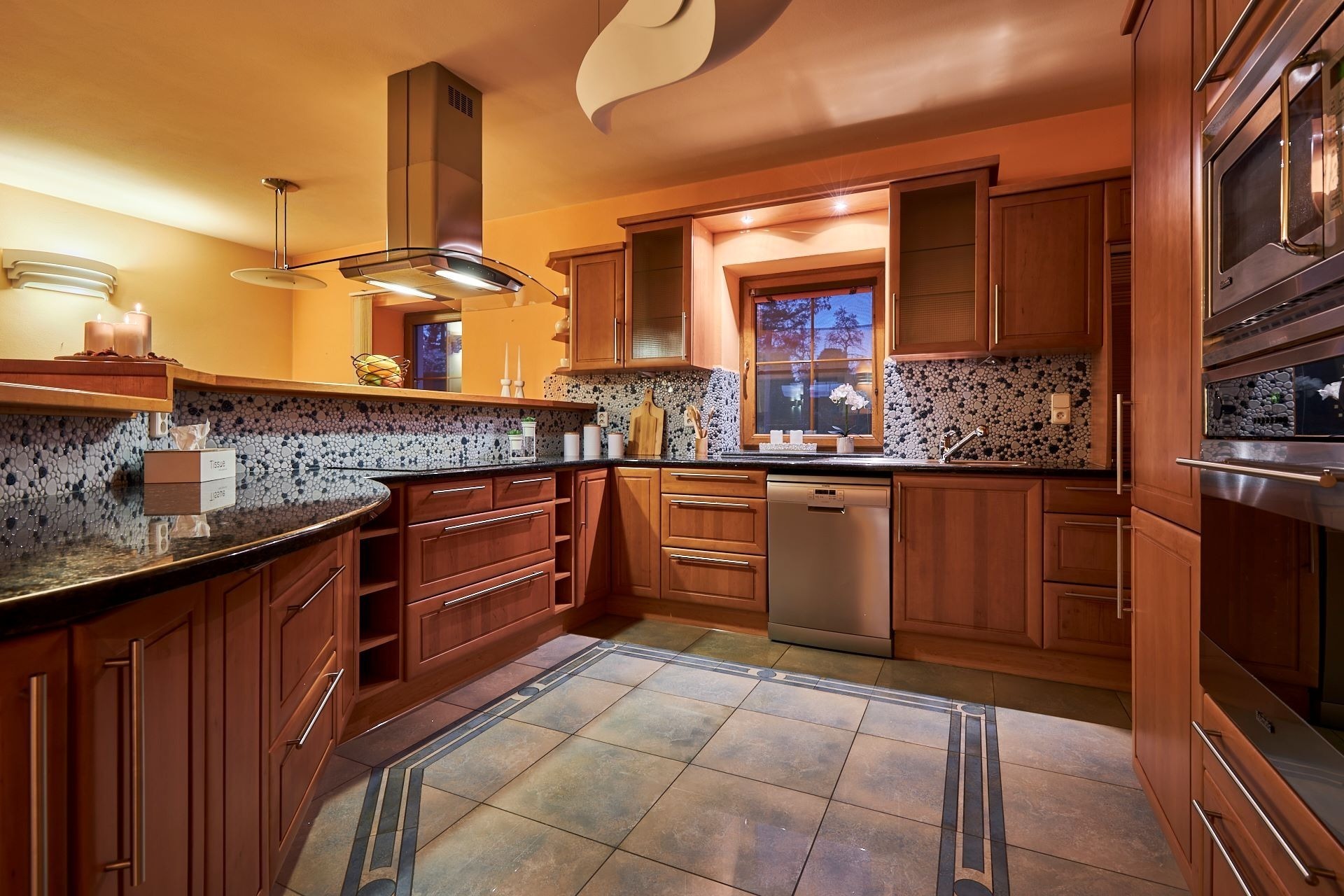 Dům byl postavený před 20 lety v tom nejvyšším standardu. Vytápění domu a ohřev bazénu zajišťuje plynový kotel Buderus, který řídí regulační systém. V zimě si přitopíte krbovými kamny v obývacím pokoji, která zajišťují i přívod tepla do 2.NP. Whirlpool má ohřev vlastní a ve wellness zóně je rekuperace. Na pozemku je vrt na vodu, kterou můžete zásobovat celý dům. Nechybí ani zabezpečovací systém a na zahradě je příprava pro automatickou sekačku. Ložnice v patře má shoz prádla do technické místnosti s prádelnou.