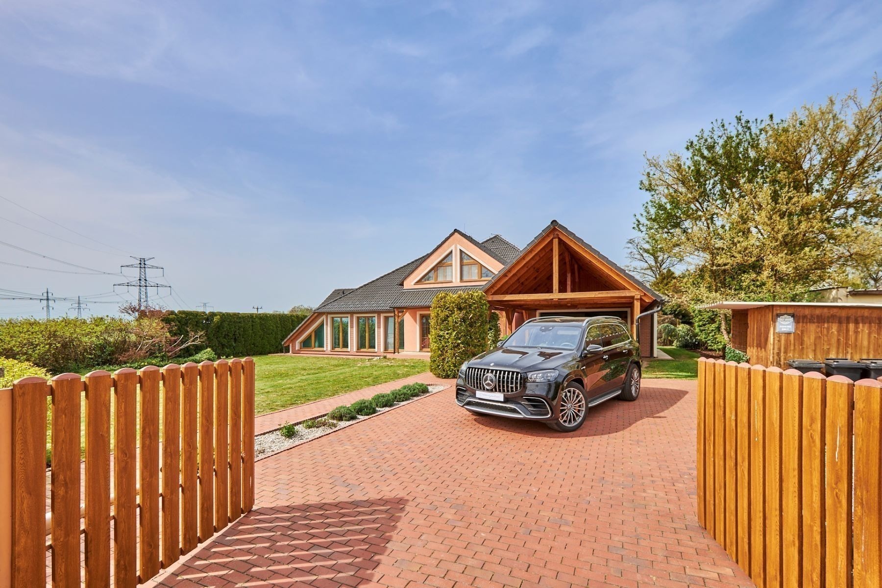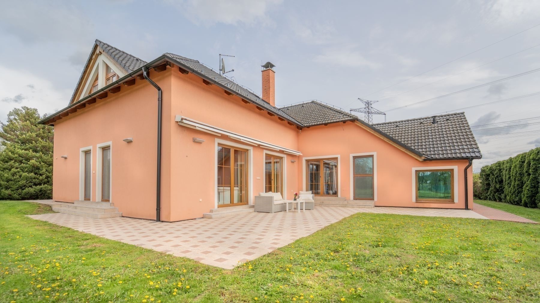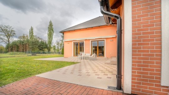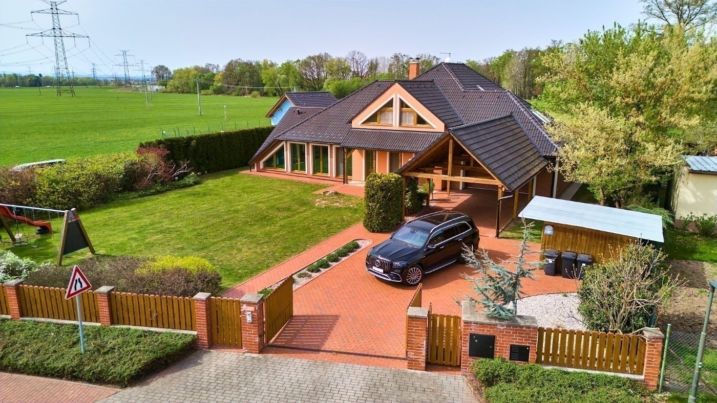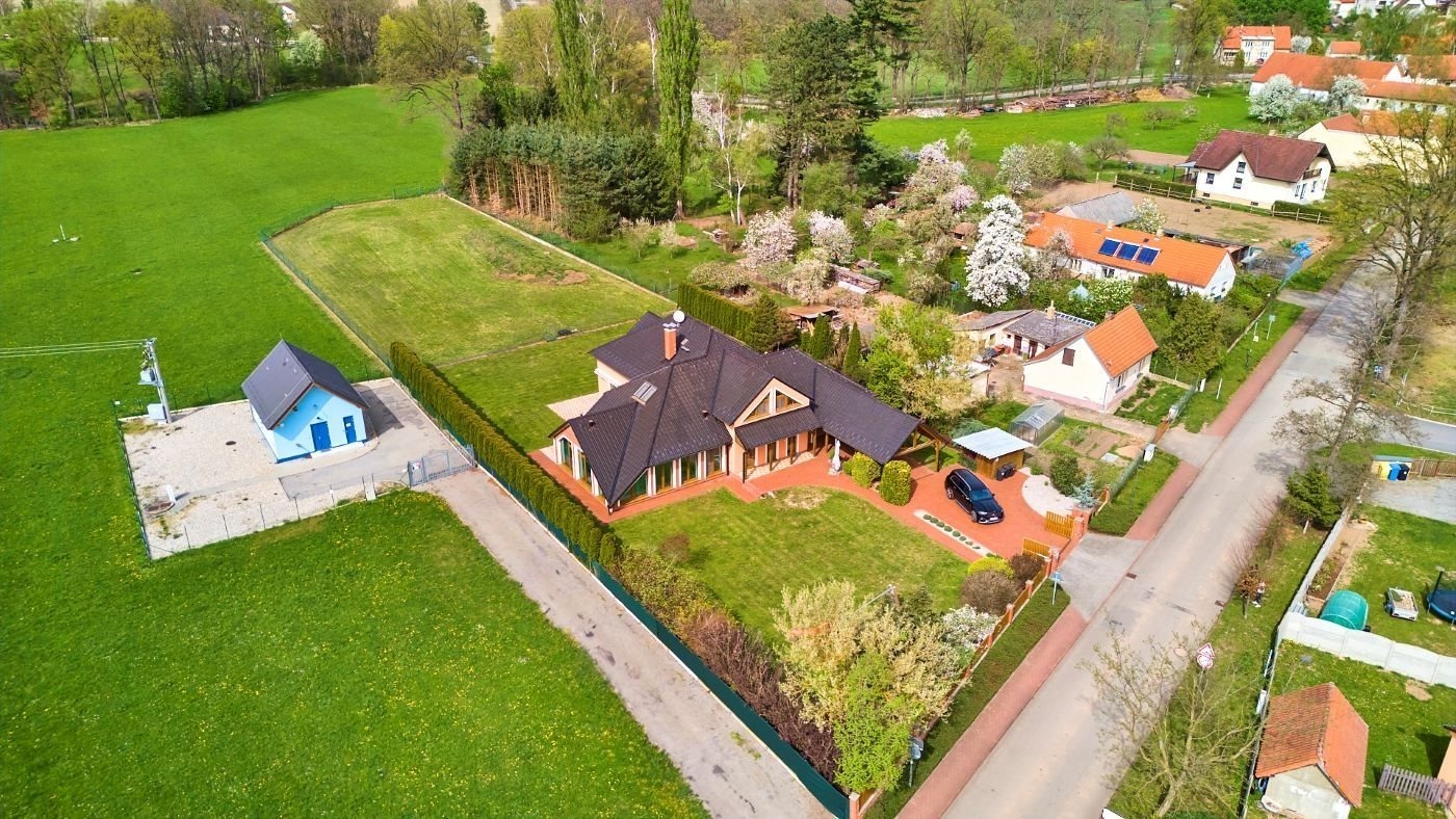 Dům má dispozici 5+kk a jeho výměra je 419 m2. Má dvě patra a hlavně rozsáhlý pozemek o velikosti 3 764 m2, na kterém můžete odpočívat, sportovat, zahradničit… nebo postavit další dům.