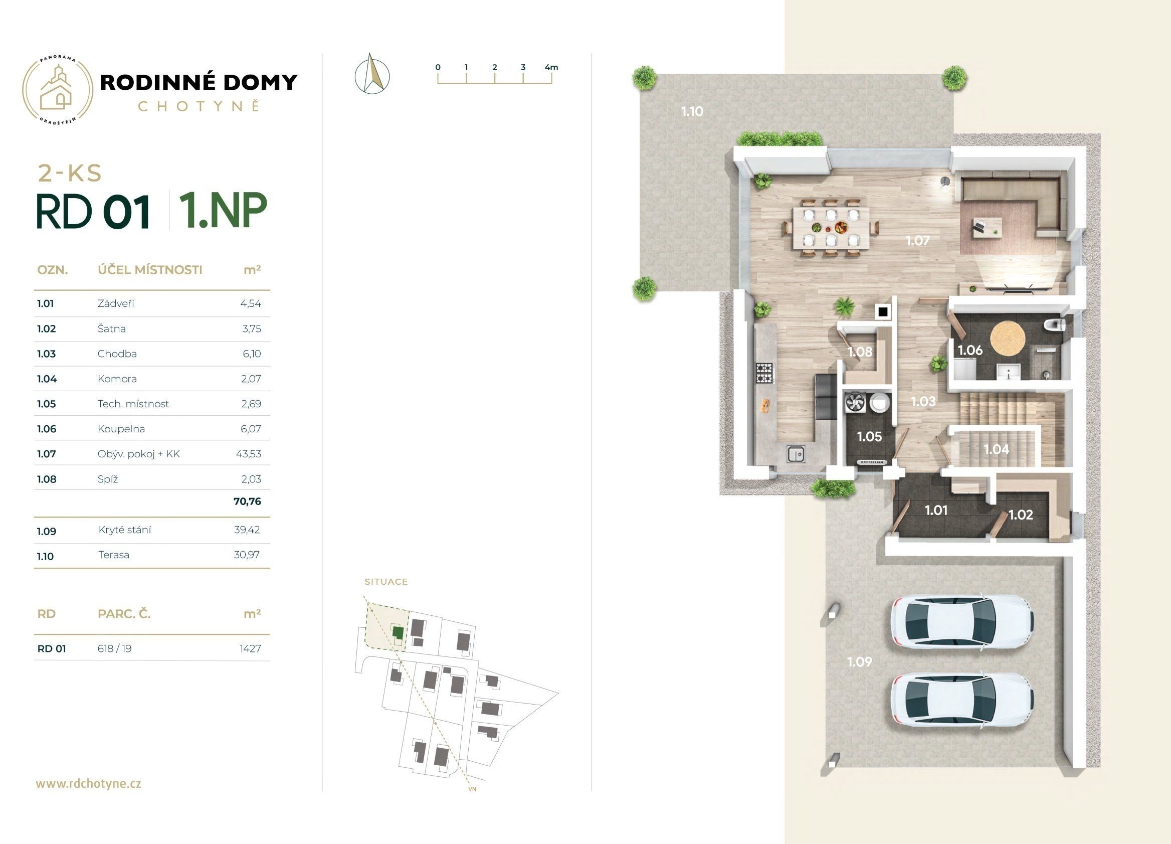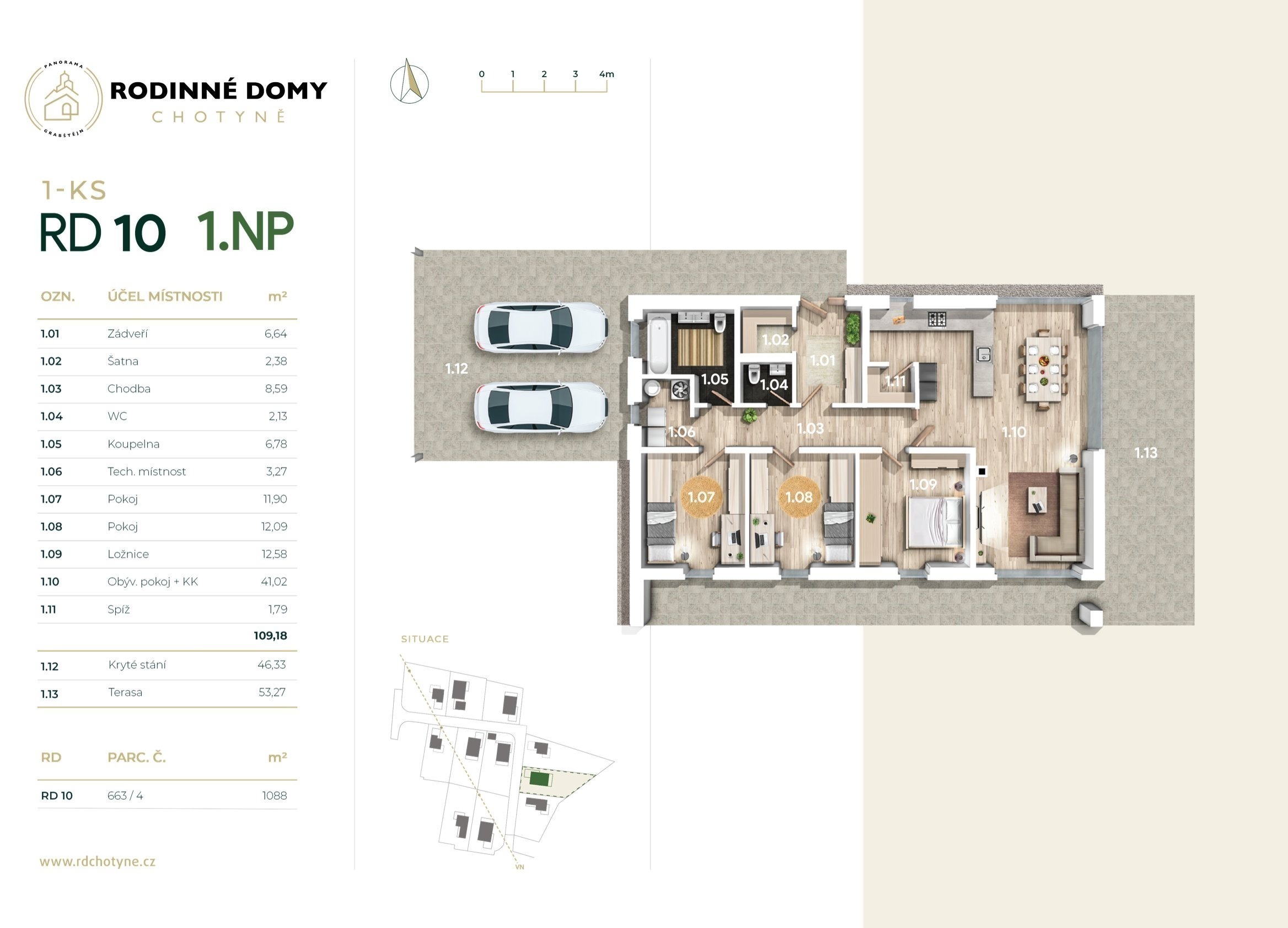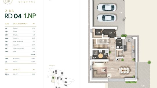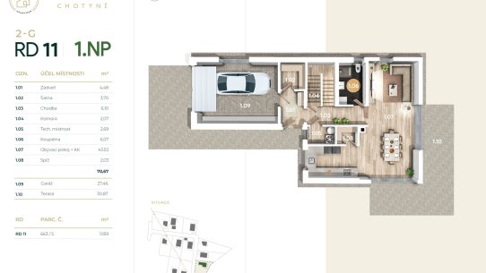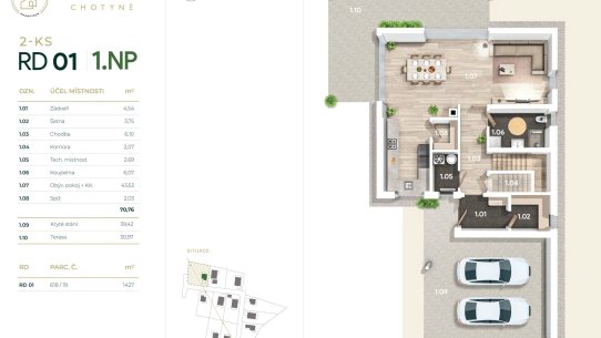 Výstavba bude dokončená na konci roku 2025, ale svůj budoucí domov si můžete prohlédnout už teď. Stačí si domluvit prohlídku vzorového domu – ten je kompletně zařízený a vy tak získáte jasnou představu, jak se vám bude v Chotyni bydlet.