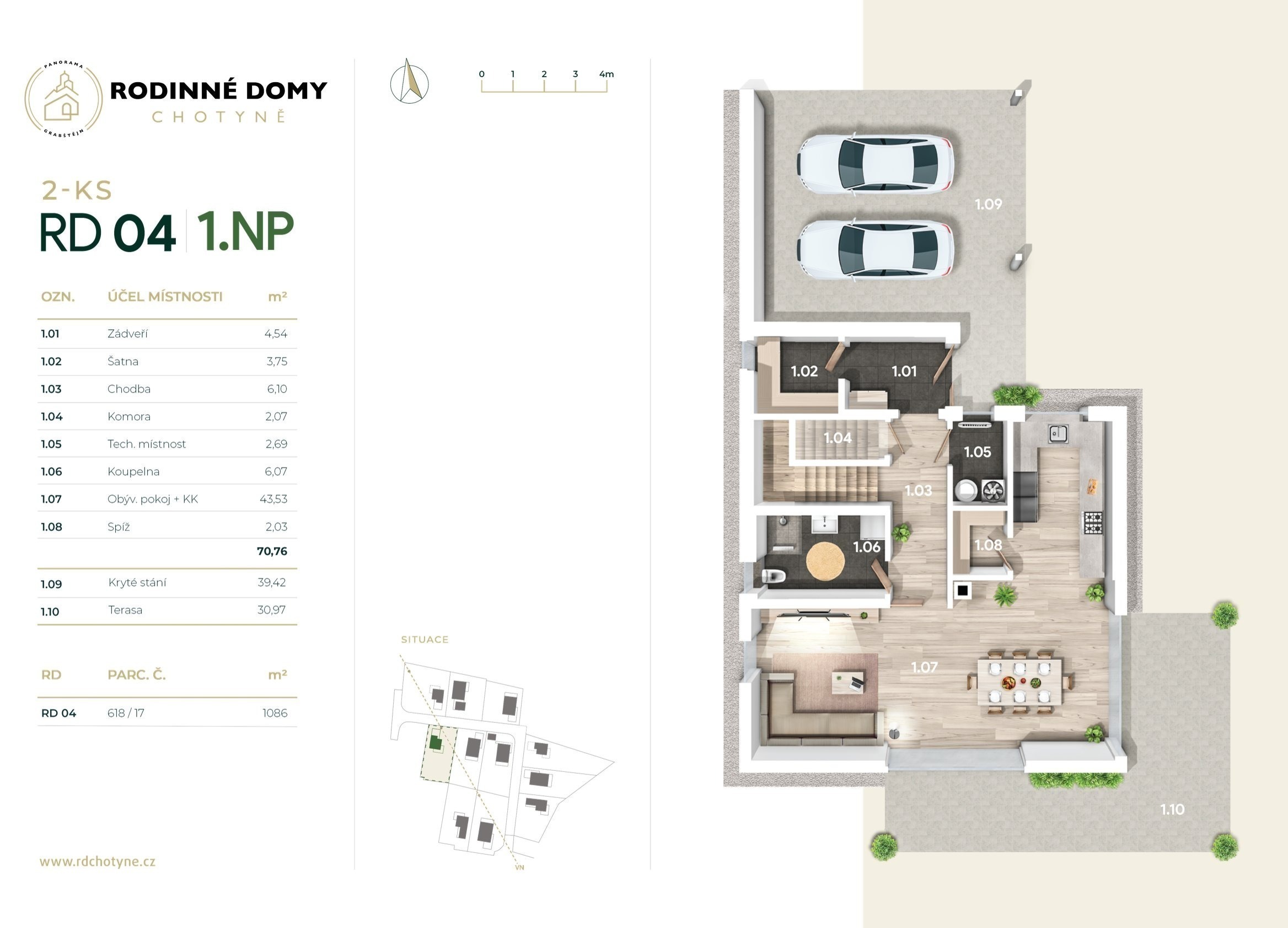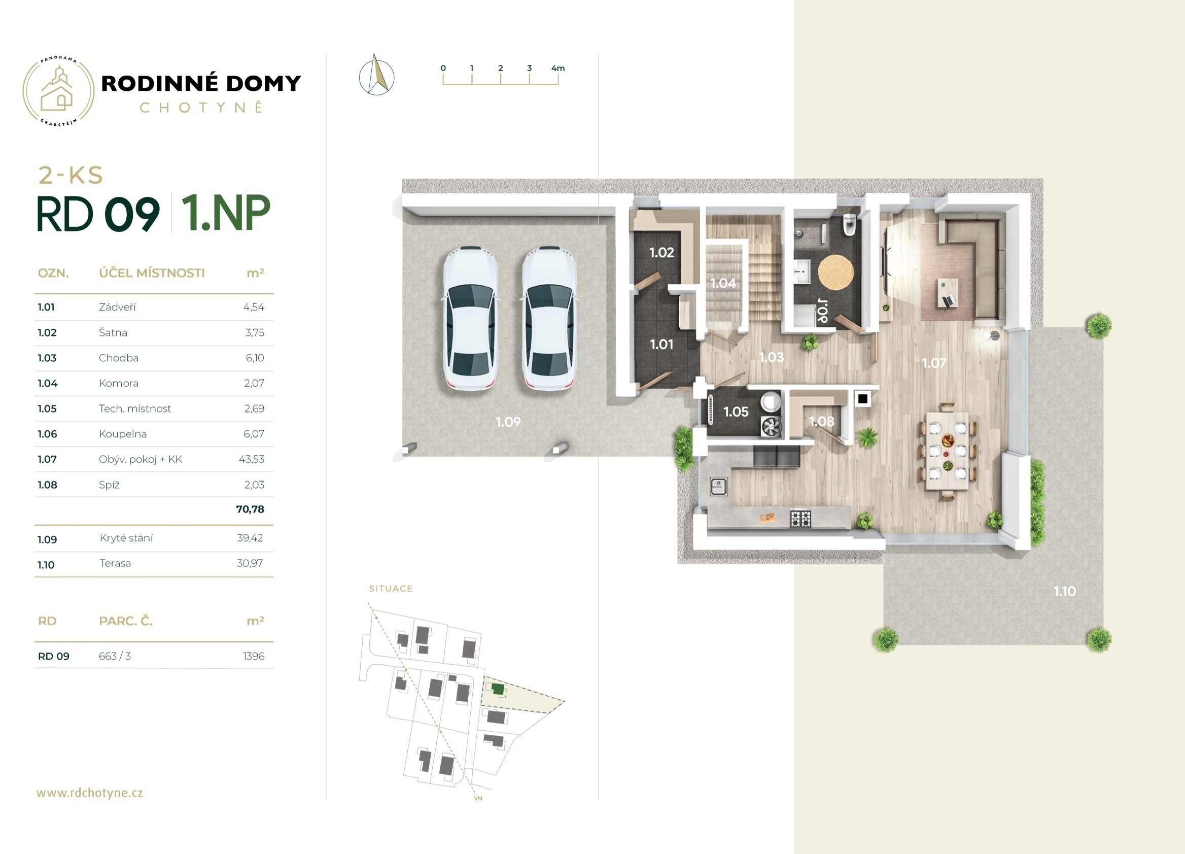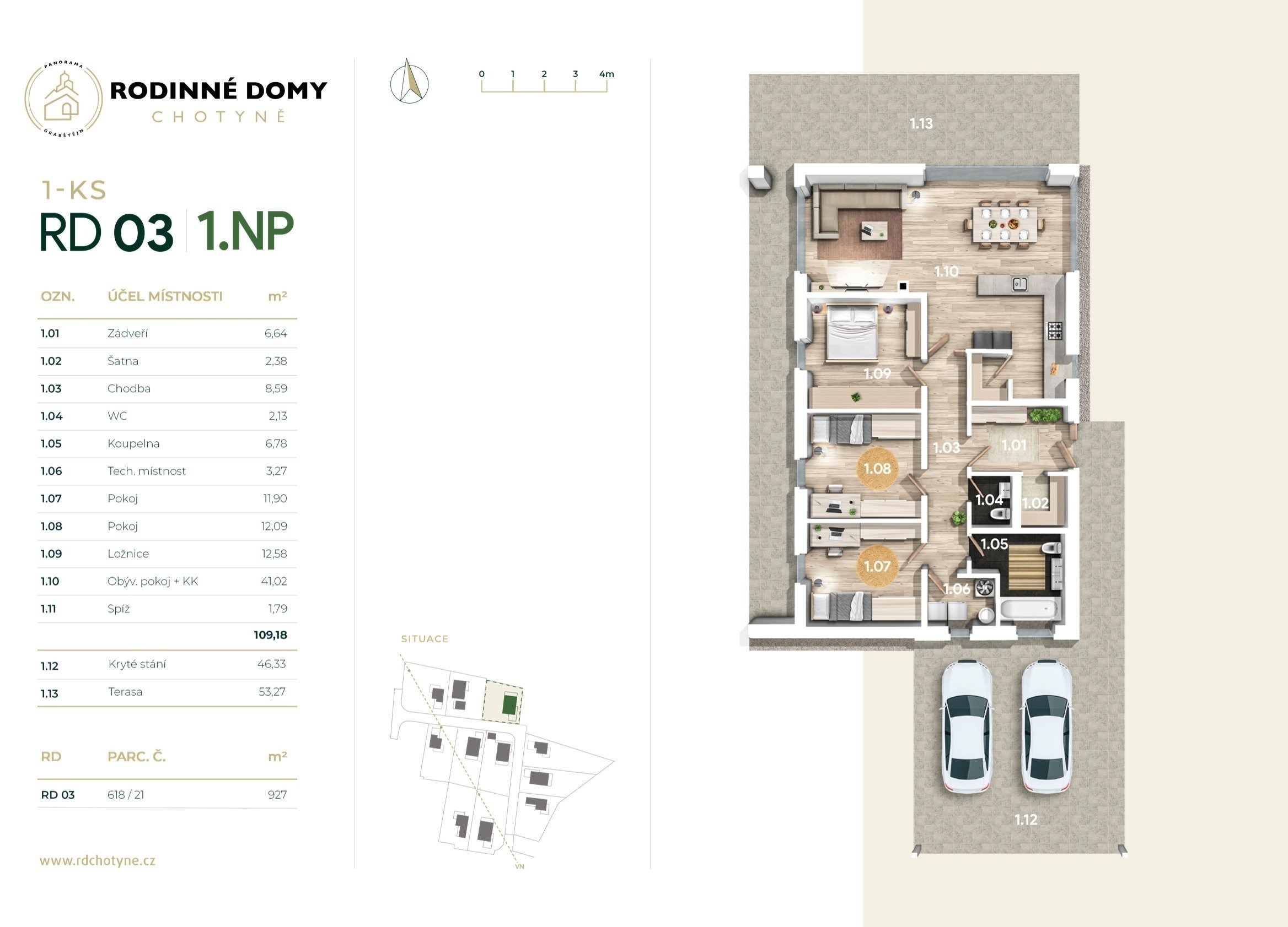 - RD 03 - 1NP, 209 m², pozemek 972 m², kryté stání - 14.500.000 Kč - REZERVOVÁNO