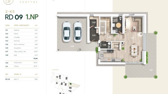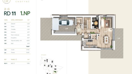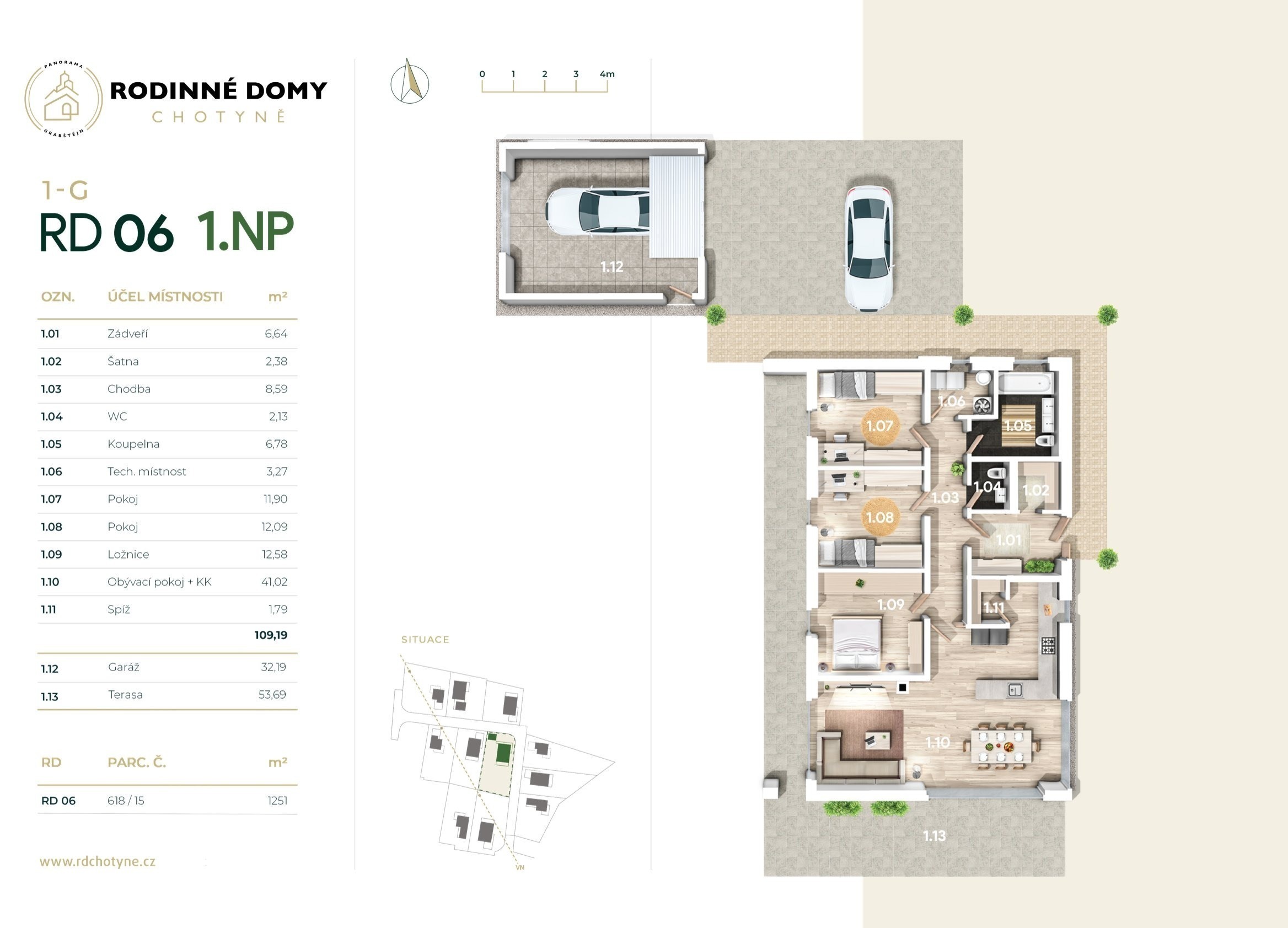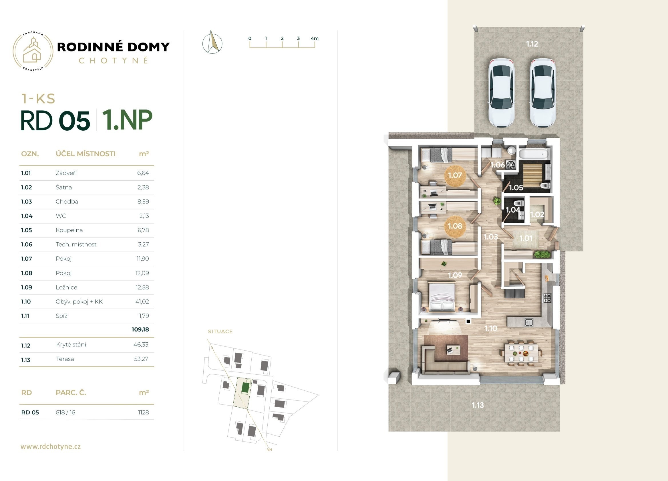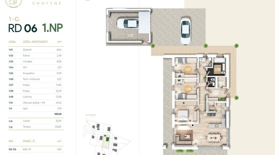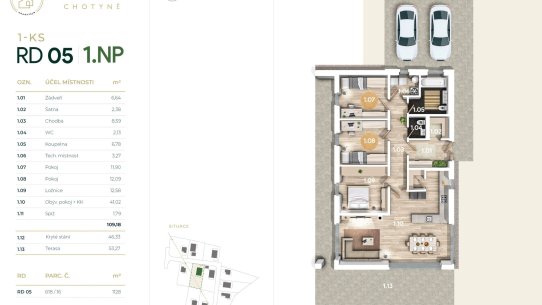 - RD 05 - 1NP, 209 m², pozemek 1128 m², kryté stání - 14.200.000 Kč - volný