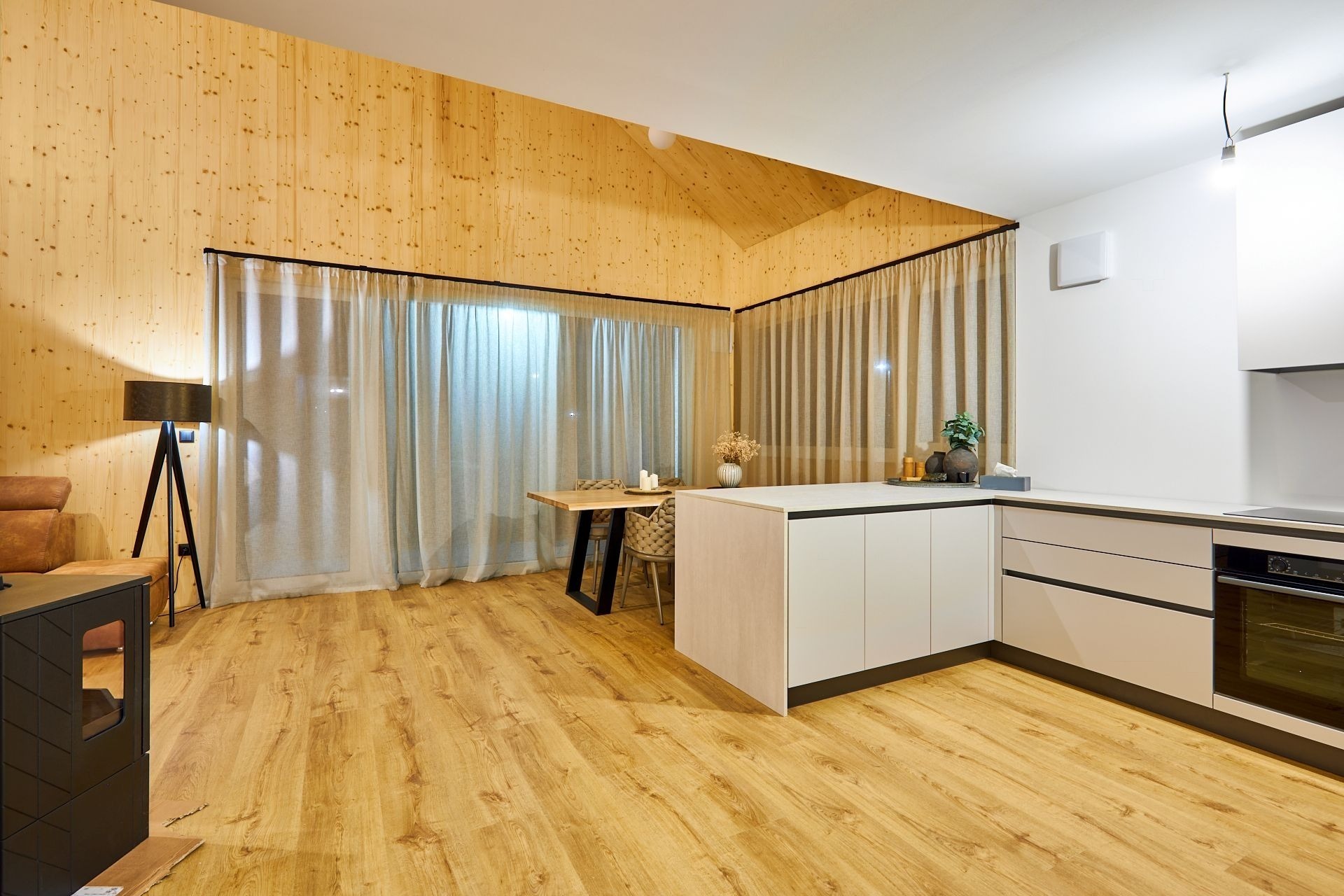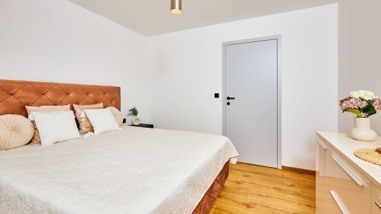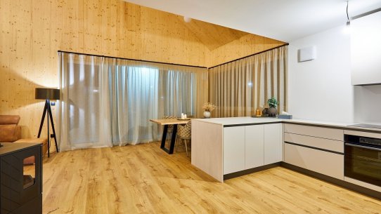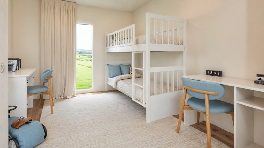 Jednopodlažní domy se skládají z prostorného obývacího pokoje s moderní kuchyní a jídelnou, hlavní ložnice a dvou pokojů, koupelny s vanou a WC i druhé samostatné toalety. Nechybí ani praktická šatna a technická místnost.