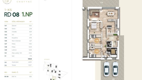 - RD 08 - 1NP, 209 m², pozemek 1255 m², kryté stání - 14.200.000 Kč - volný