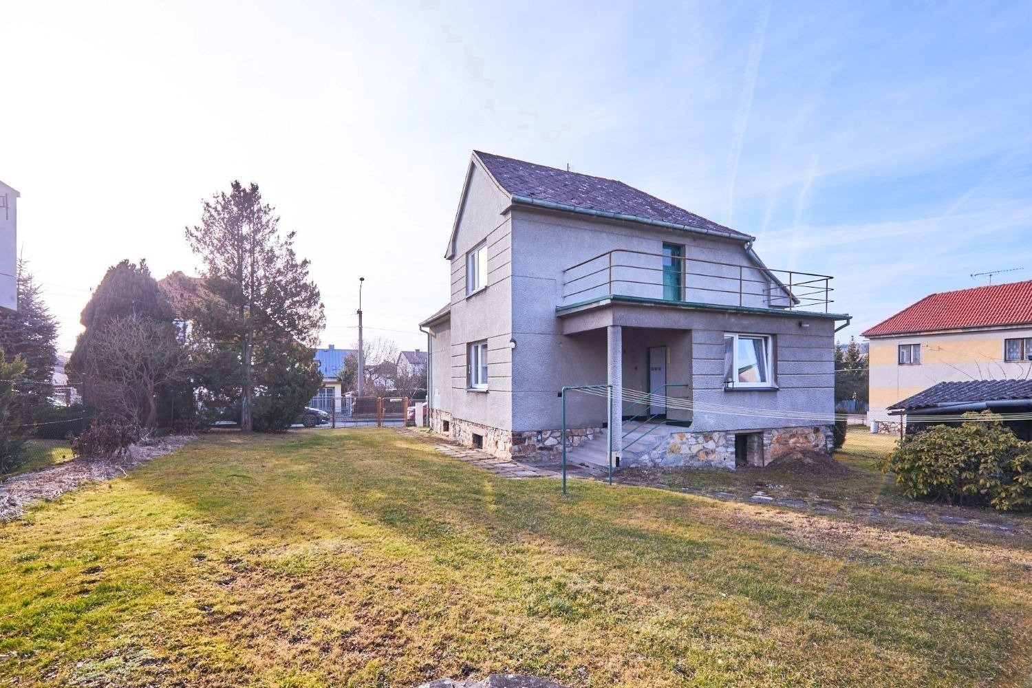 U domu je zahrada, kde můžete pěstovat ovoce, zeleninu i všechny své koníčky – na pozemku o velikosti 881 m² vám místo chybět nebude. Auto zaparkujete na ulici nebo na pozemku za branou a zahradní náčiní uklidíte do garáže.
