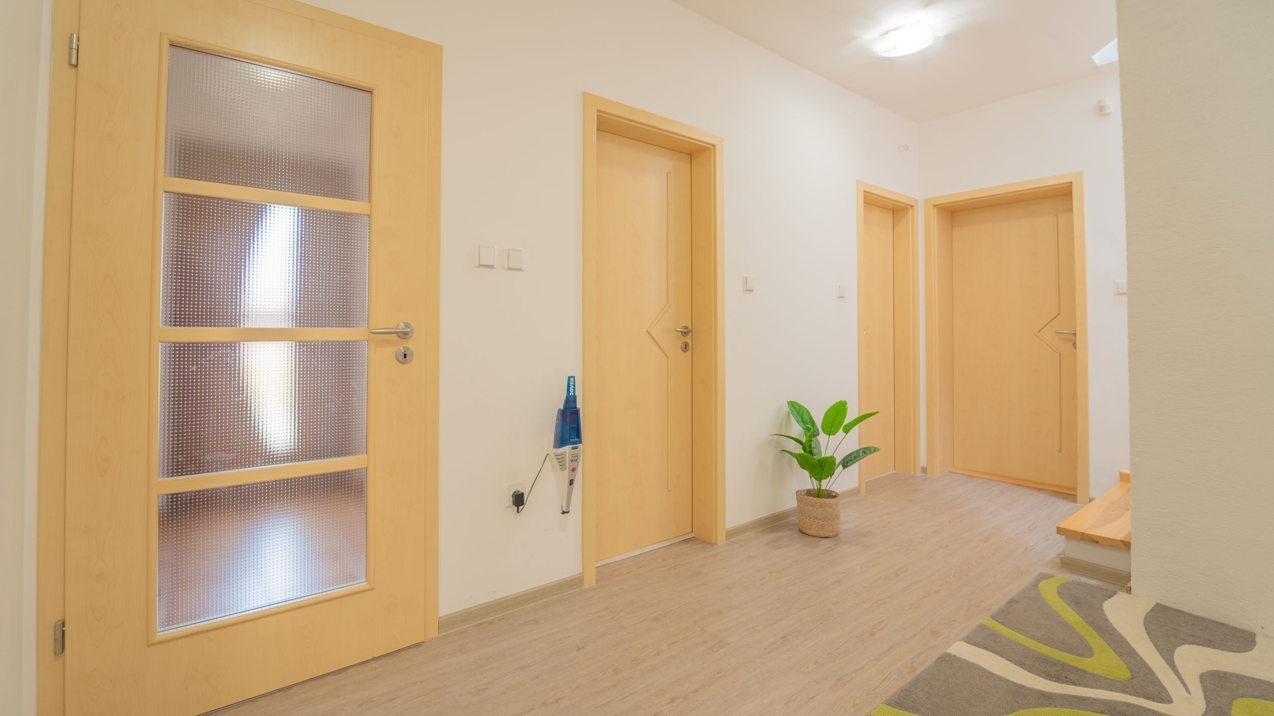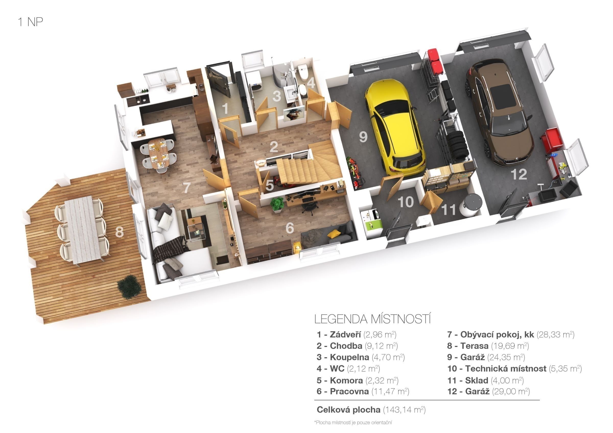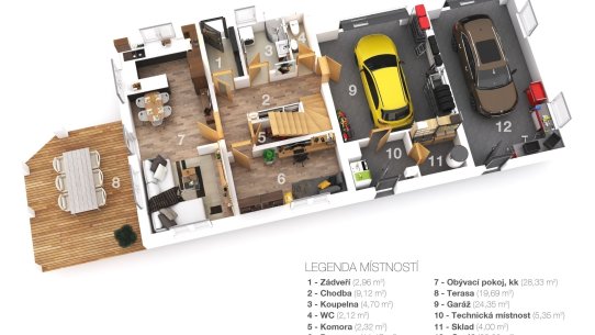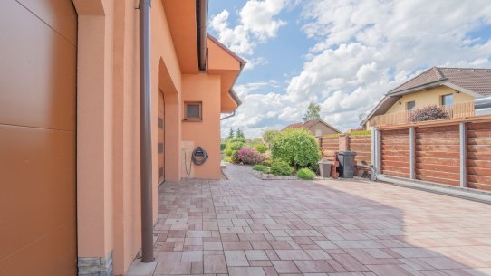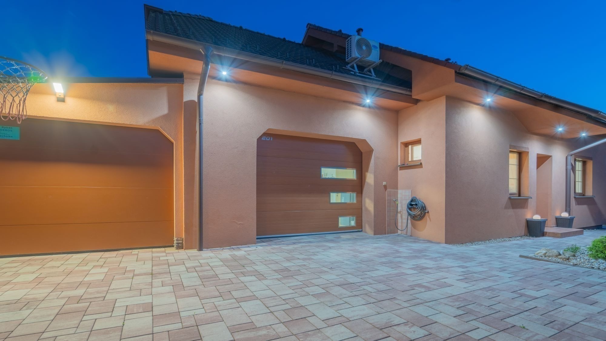 Máte doma slušný vozový park? S parkováním mít starosti nebudete. Na příjezdovku se vejdou dvě auta a další zaparkujete do garáže. Z té projdete suchou nohou přímo do domu. Pořád málo? Pokud nejste na domácí kutění, můžete jako druhou garáž využít vytápěnou dílnu hned vedle.