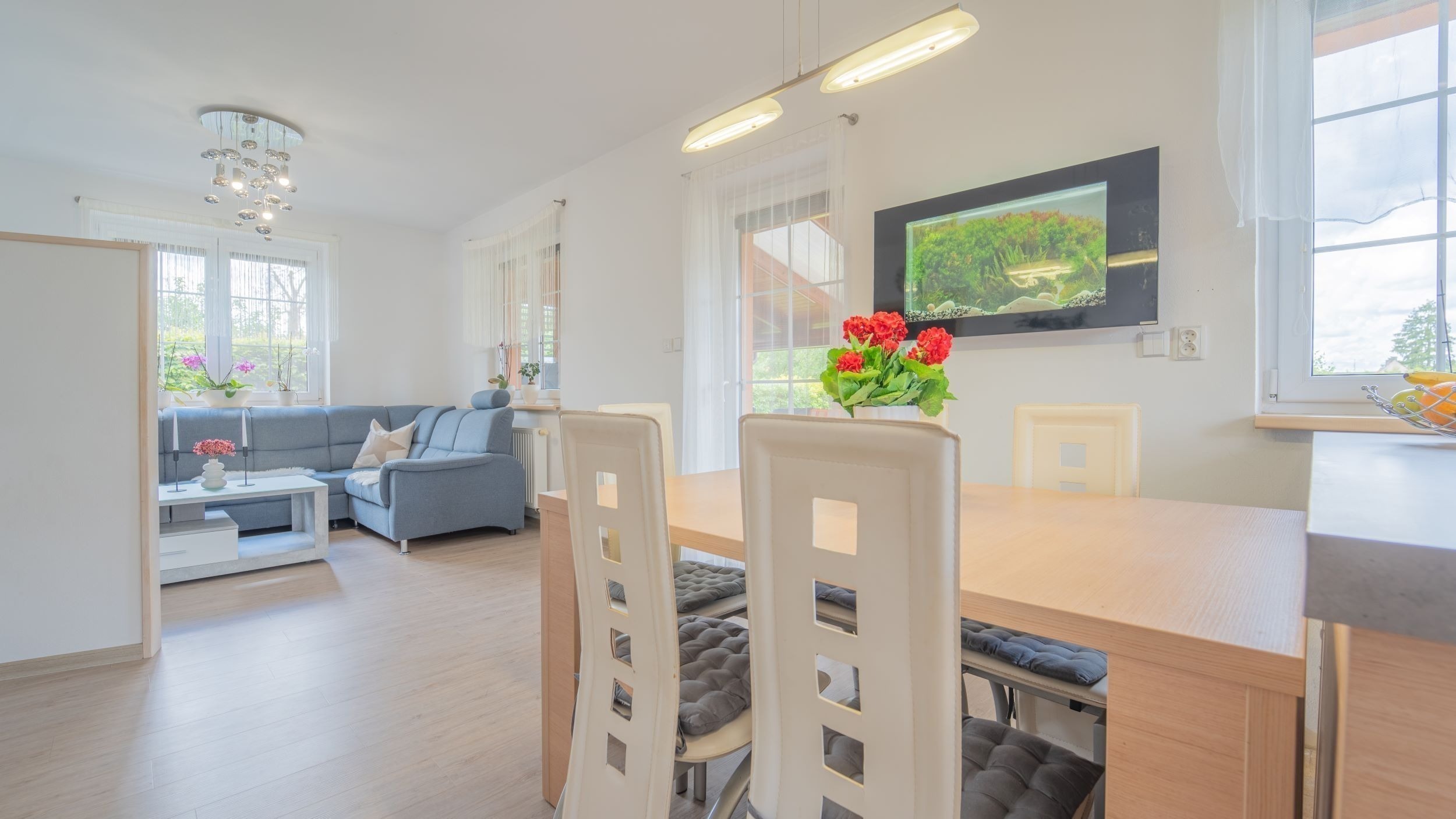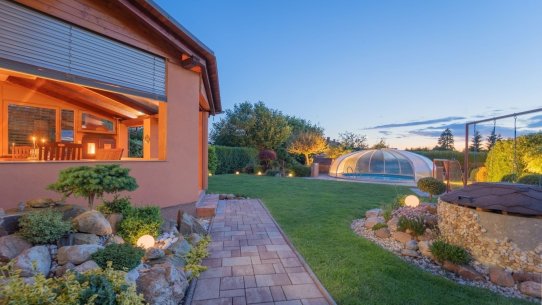 Vypustit děti do bazénu, usadit se ve stínu terasy… anebo popadnout náčiní a pustit se do záhonků. Přesně takhle může vypadat vaše pohodové odpoledne v rodinném domě v Klenovicích u Soběslavi.