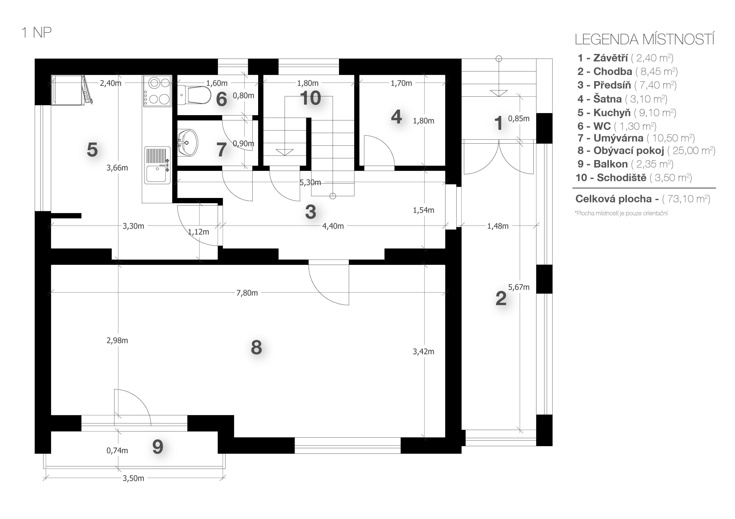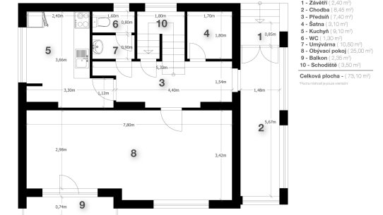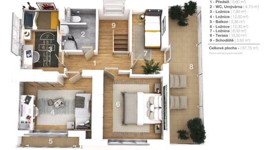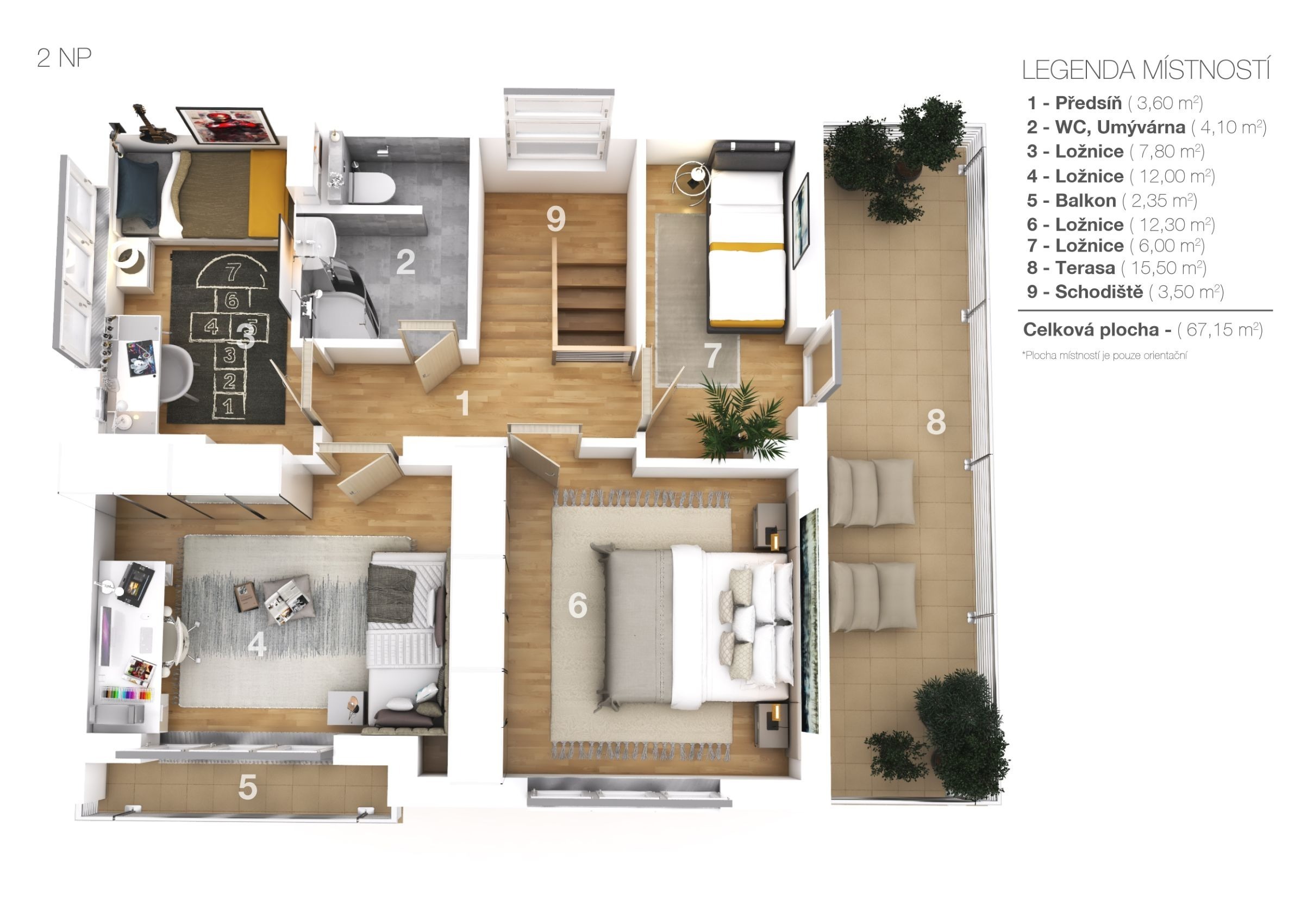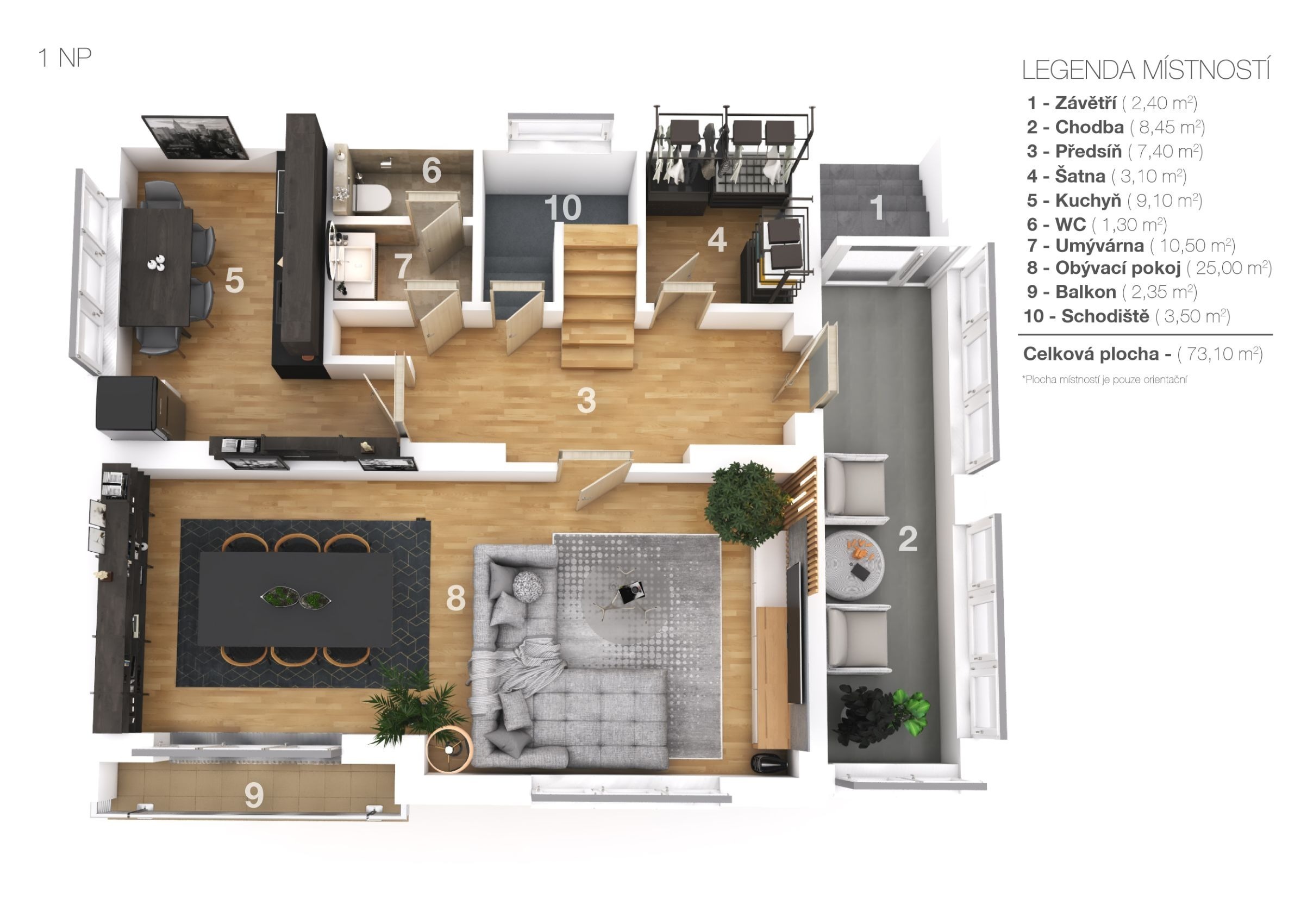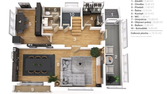 Obývací pokoj vám dá prostor pro rodinná setkání i chvíle soukromí. Má přímý vstup na balkon a když budete chtít, může tu vzniknout i terasa s výhledem, který vám zlepší každý den.